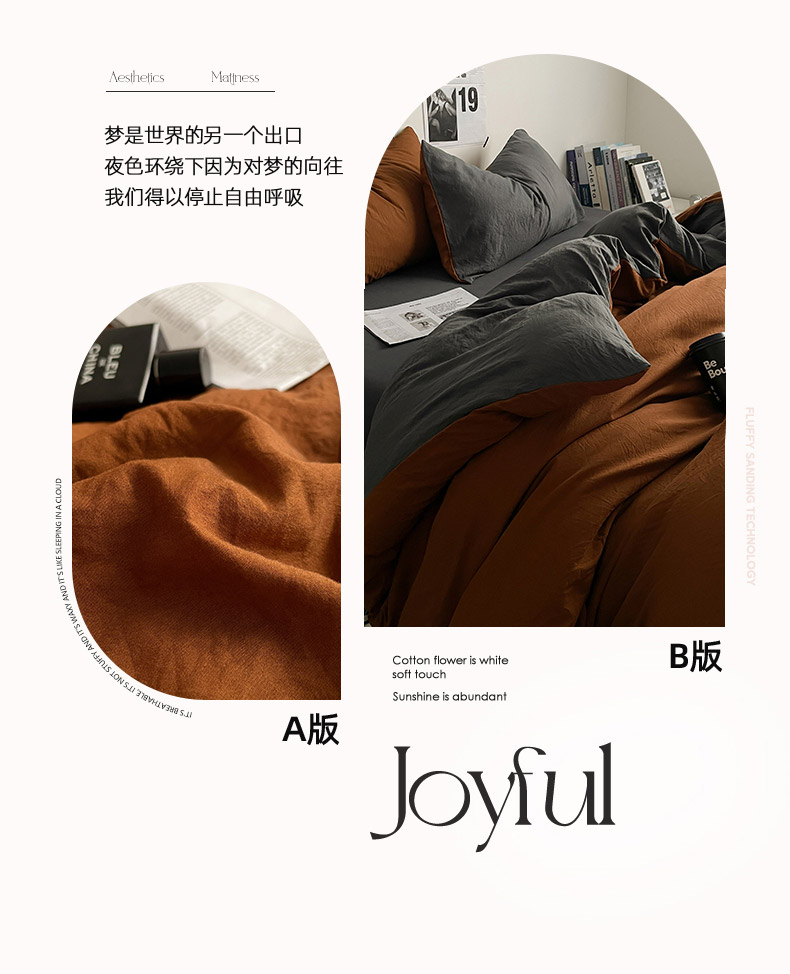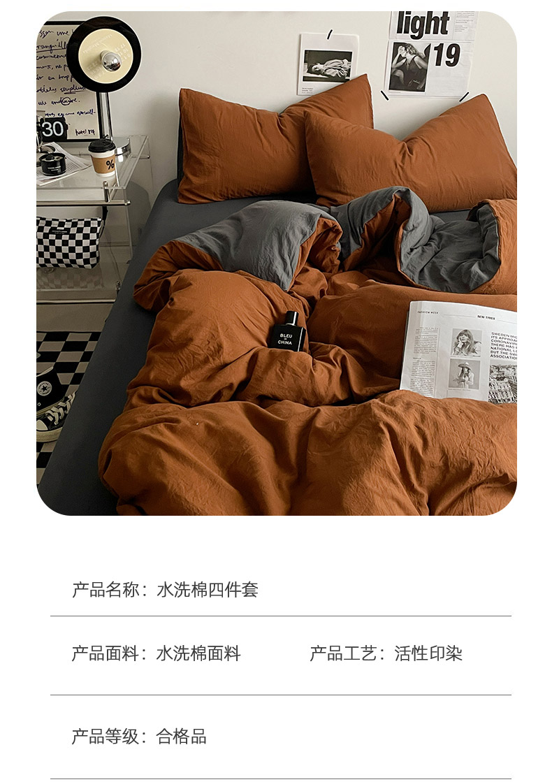当前位置: 91家纺网 > 商品网购 > 床品套件 > 四件套 > 水洗棉四件套 > 优承佳 2023新款ins风超柔亲肤磨毛水洗m双拼四件套 糖灰