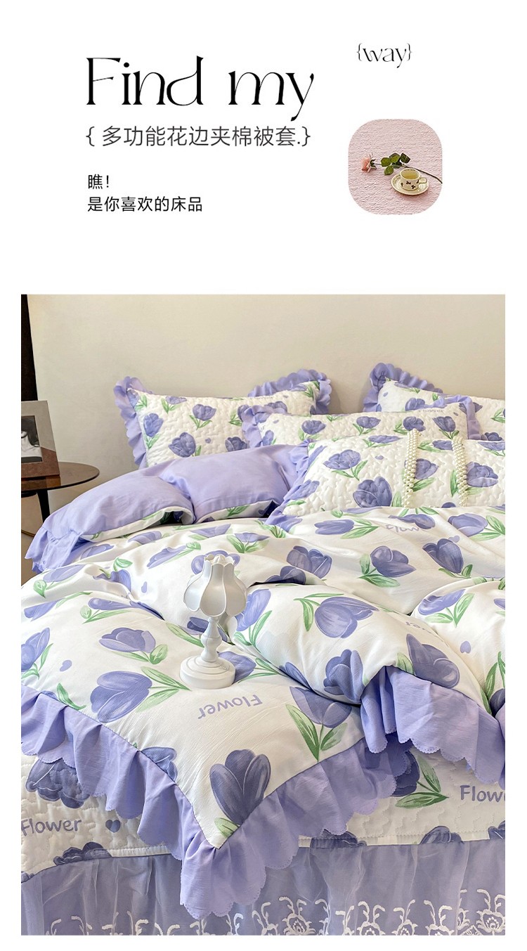商品名称:秋冬款A类母婴级双层纱棉麻夹棉床盖蕾丝花边床裙款全棉纯棉夹棉床盖三件套