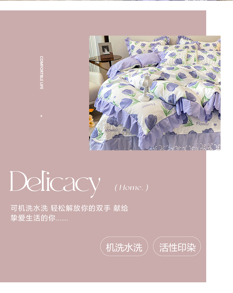 夏被款床盖四件套(夏被+床盖+枕套一对)