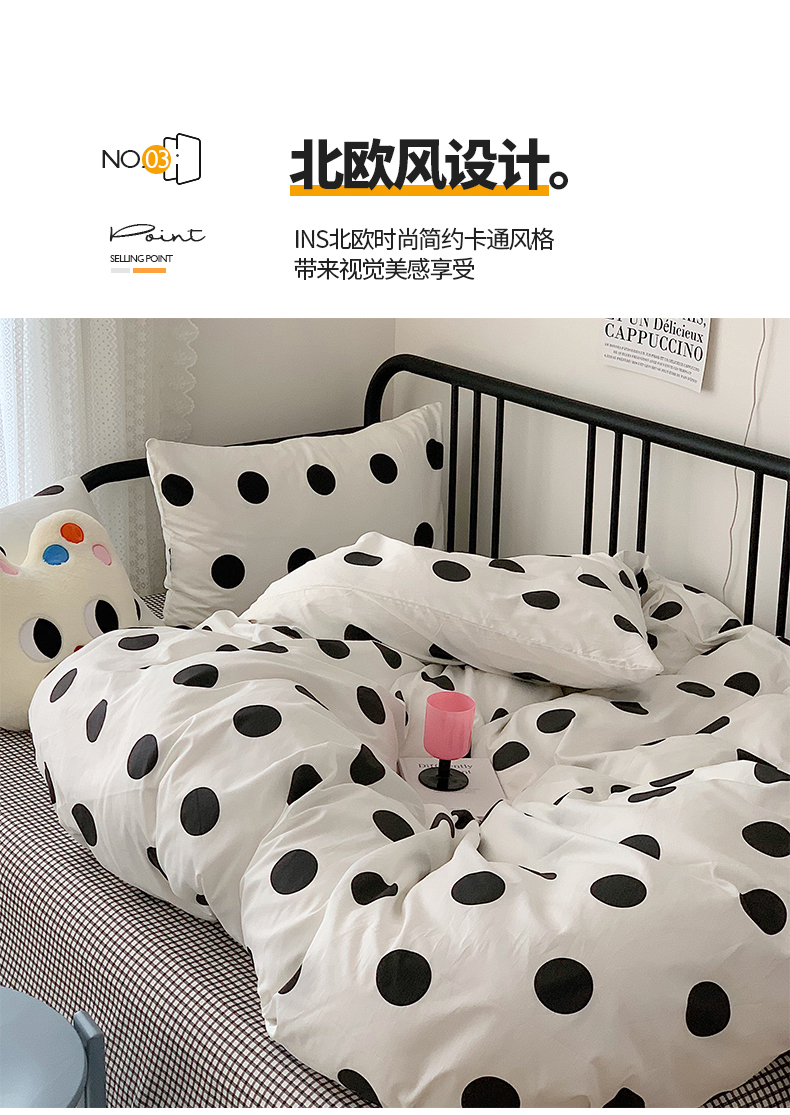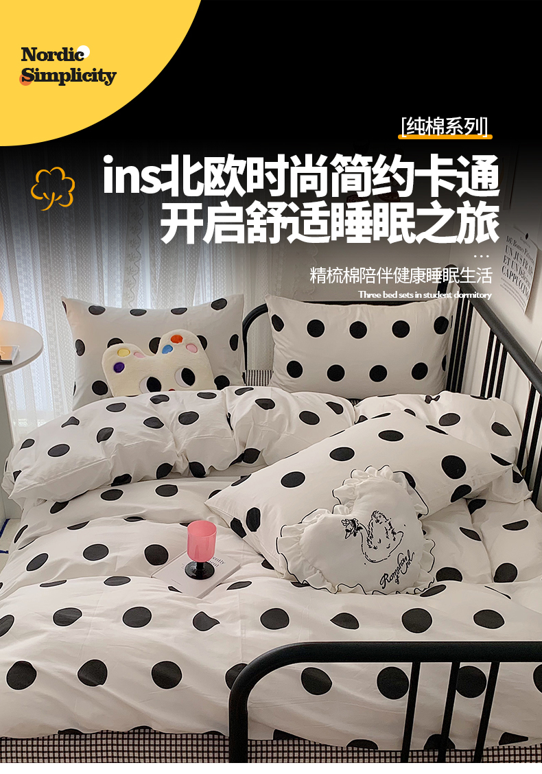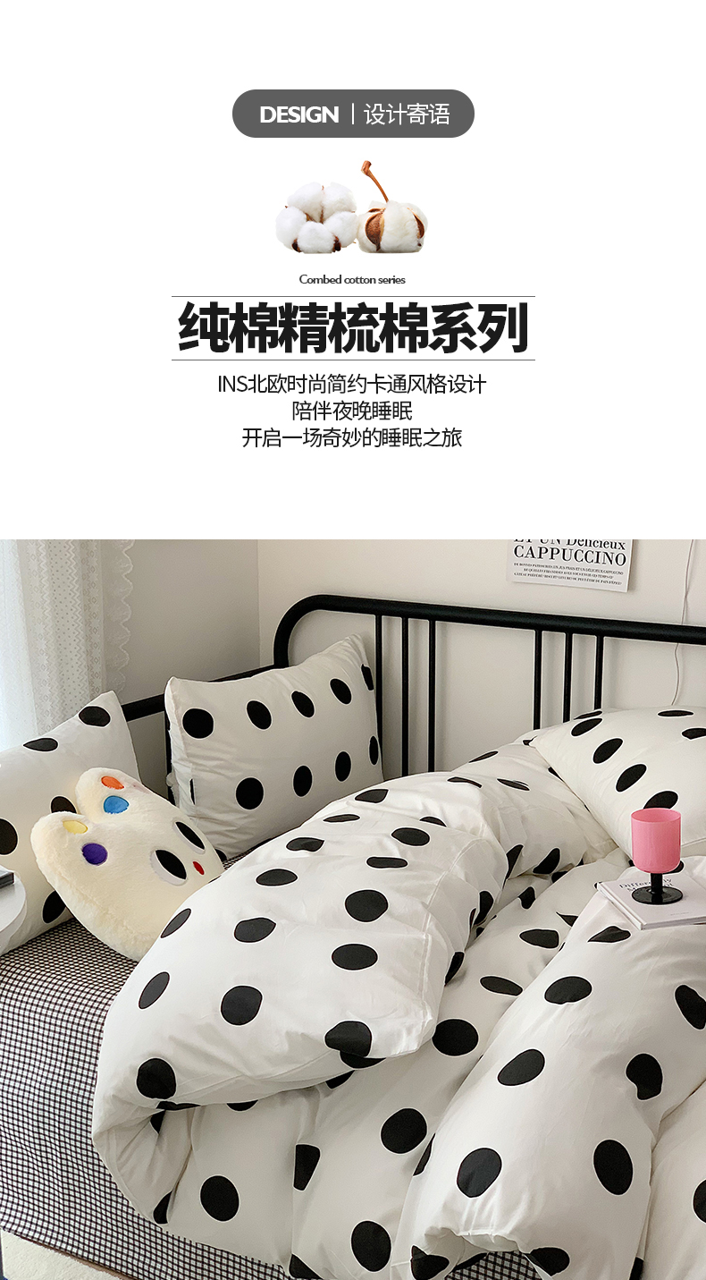 商品名称:桃子家居 2023新款ins北欧时尚简约卡通纯棉四件套系列 棉-可爱波点