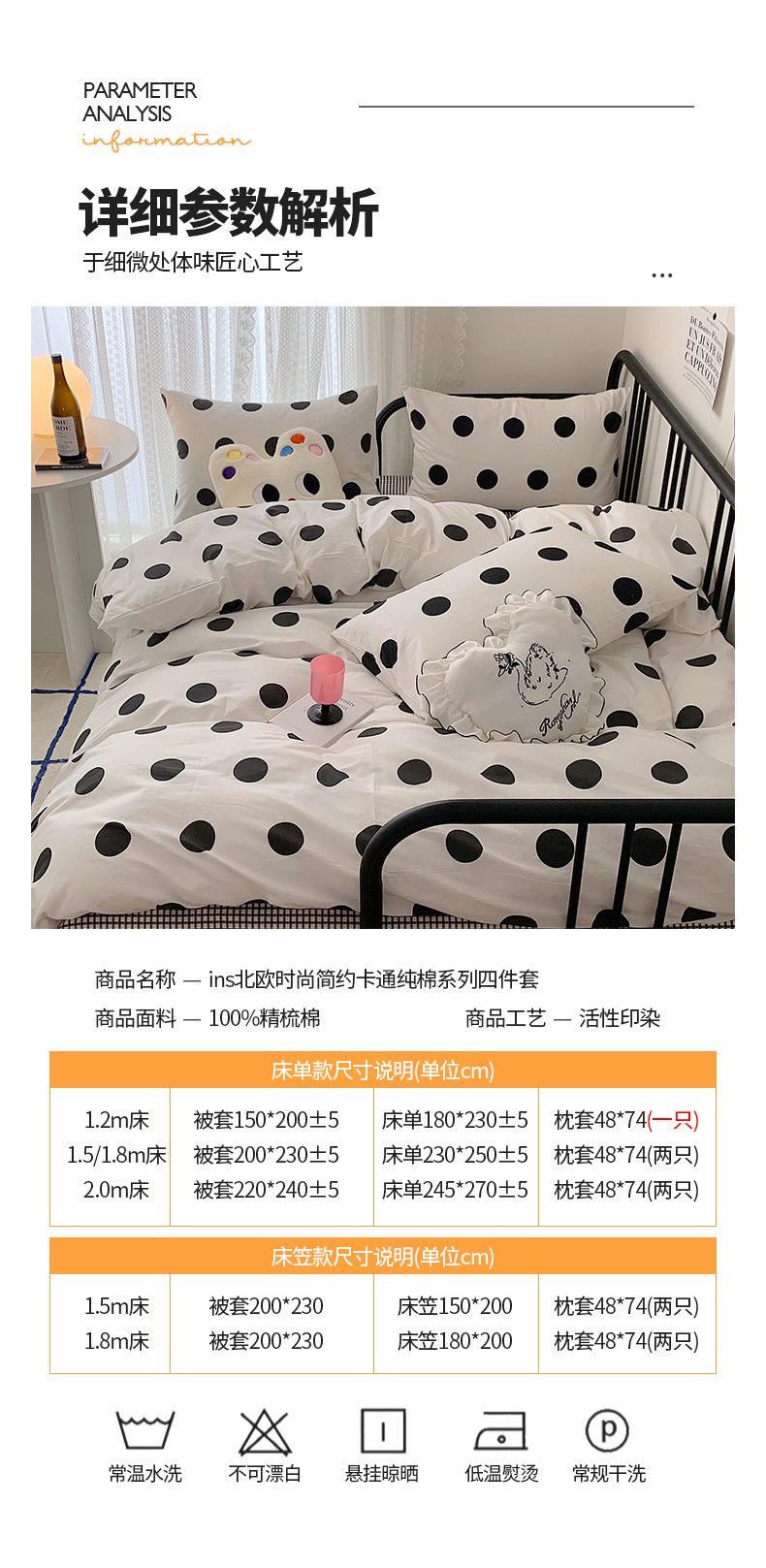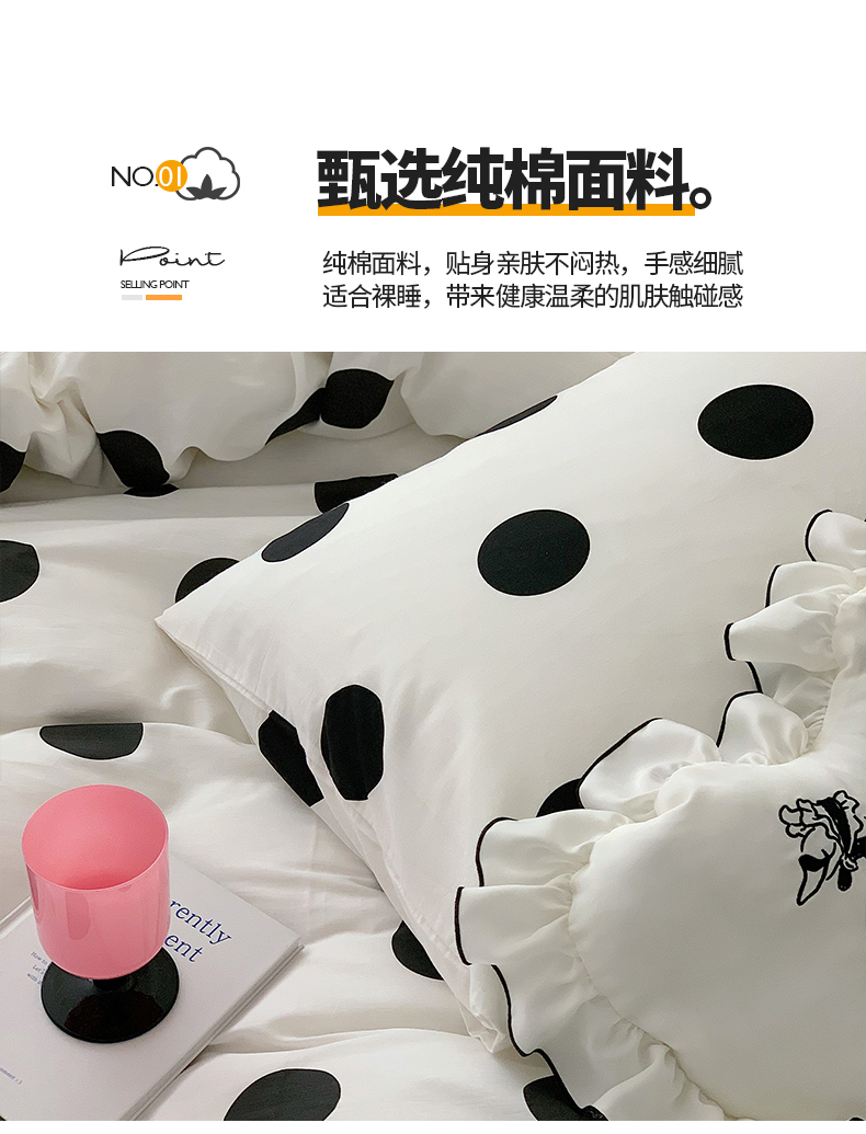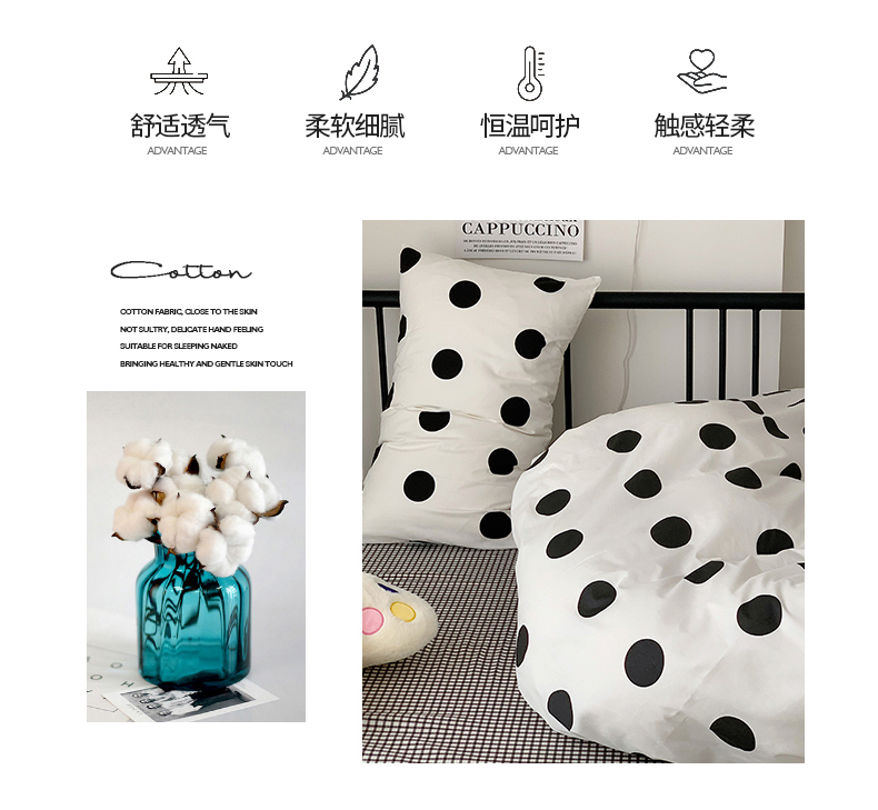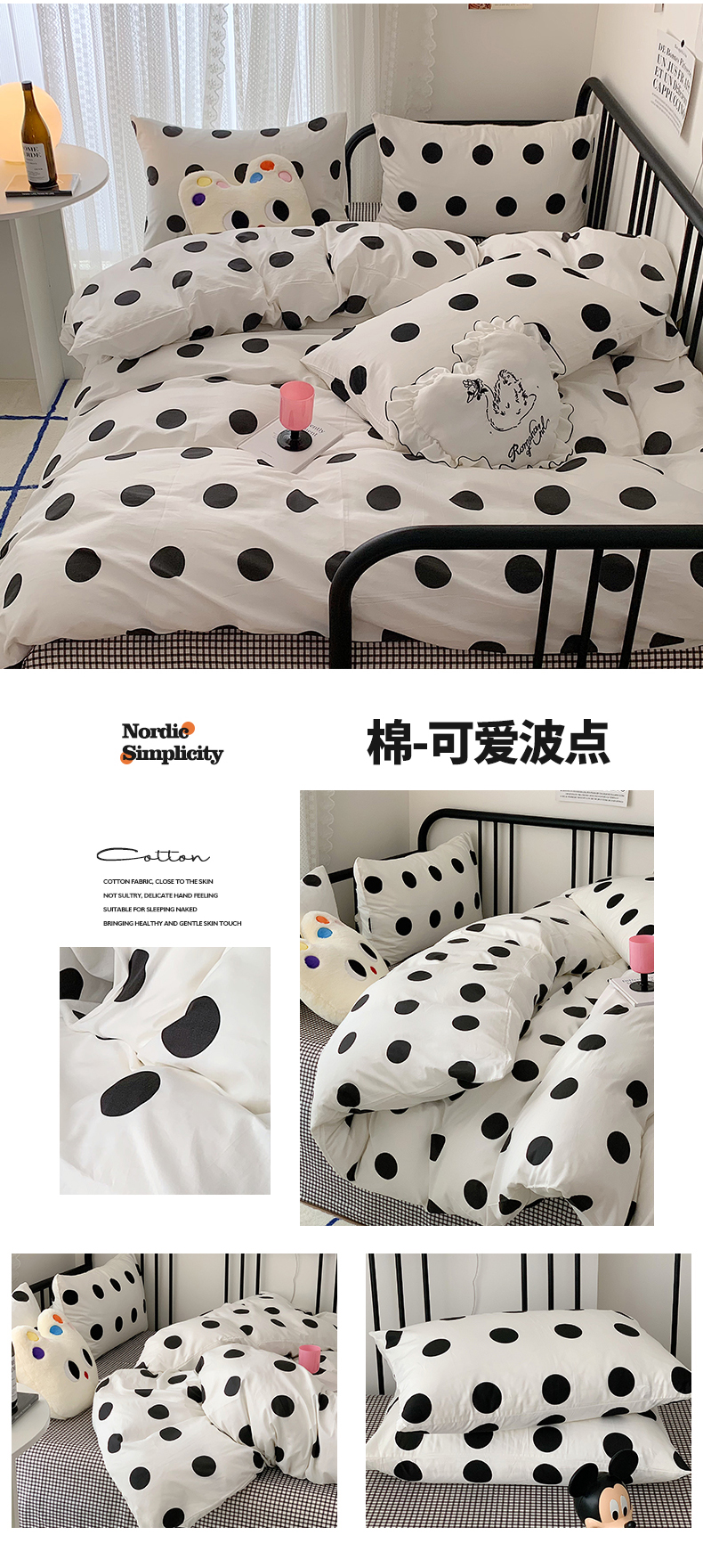 商品名称:桃子家居 2023新款ins北欧时尚简约卡通纯棉四件套系列 棉-可爱波点