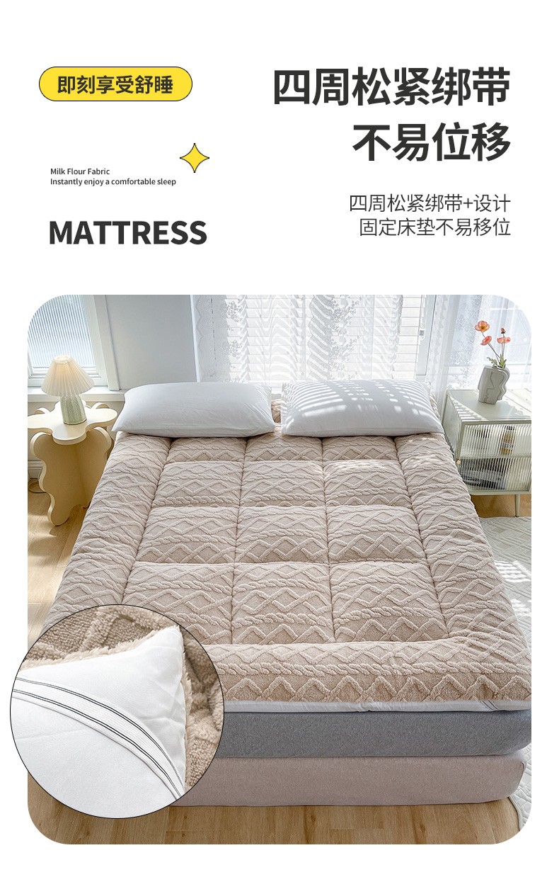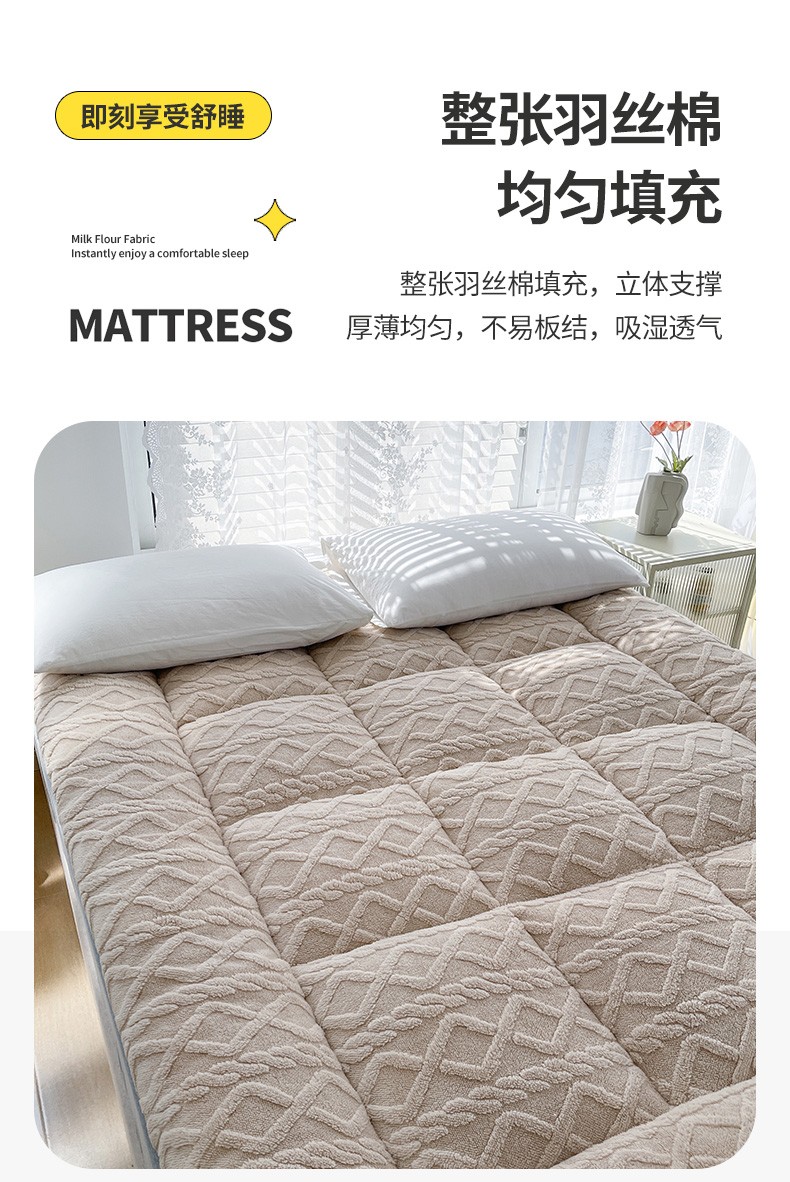 (总)蓝冰家纺 2025新款雕花牛奶绒羊羔绒床垫,宾利兰,粉桃桃,落日橙,绅士灰