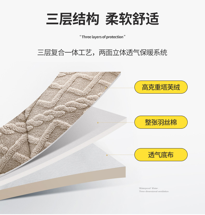 (总)蓝冰家纺 2026新款塔关绒立体床垫,卡其色,蓝灰色,深灰色