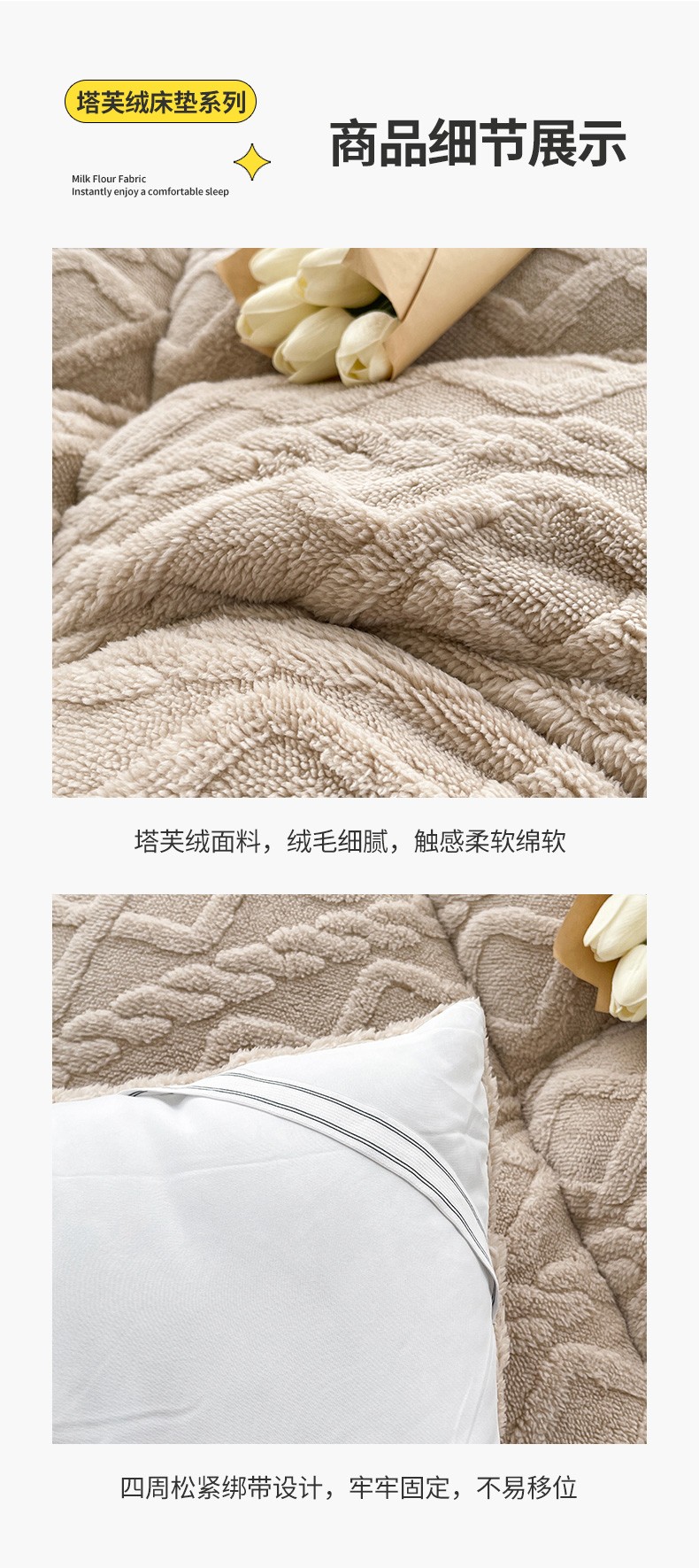 商品名称:蓝冰 2023新款塔芙绒亲肤舒适床垫 米咖