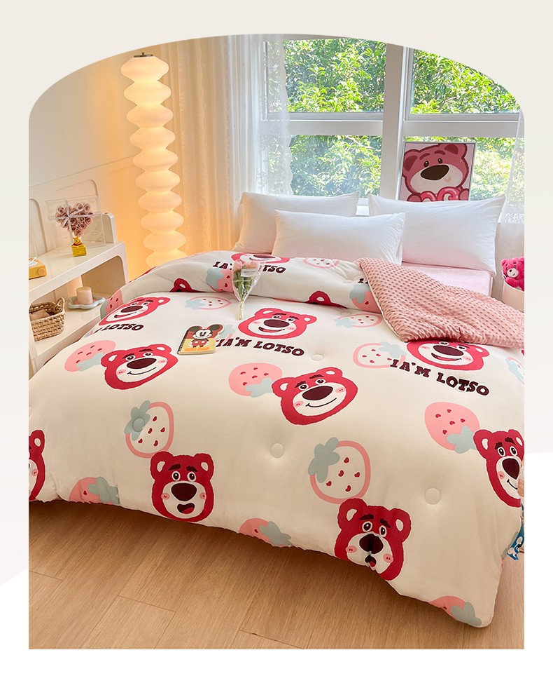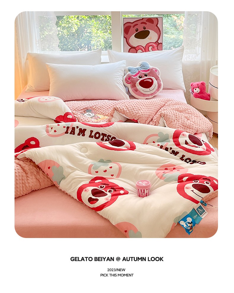 伊人居 2023新款A类迪士尼针织棉豆豆被 莓烦恼