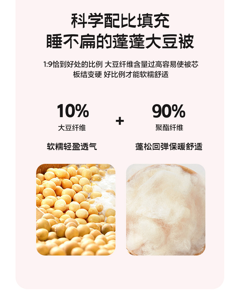 • 填充纤维种类: 大豆蛋白改性聚酯纤维