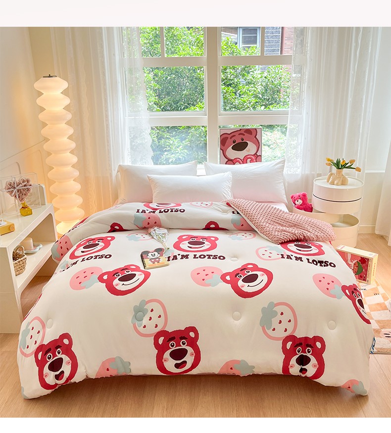 • 91家纺网 家纺一手货源 找家纺 伊人居 2023新款A类迪士尼针织棉豆豆被 莓烦恼