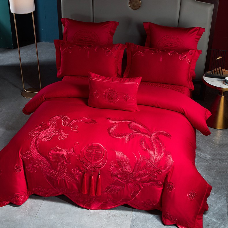 当前位置: 91家纺网 > 商品网购 > 床品套件 > 四件套 > 婚庆四件套 > 用心 2023新款全棉高端绣花龙凤婚庆四件套 龙凤百喜(红)