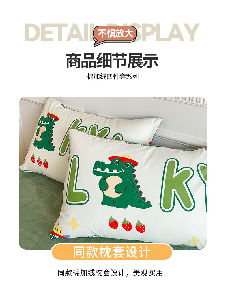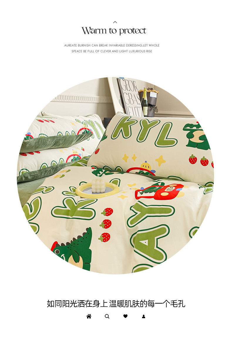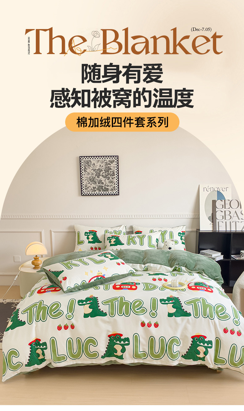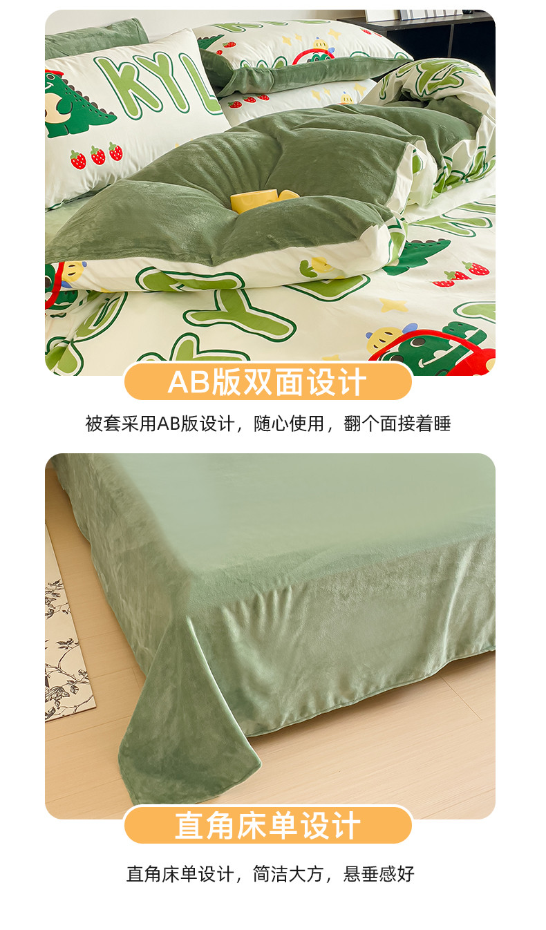 当前位置: 91家纺网 > 商品网购 > 床品套件 > 四件套 > 牛奶绒四件套 > 金鑫汇新款A版面料+B版高克重牛奶绒四件套棉加绒-小鳄鱼日记