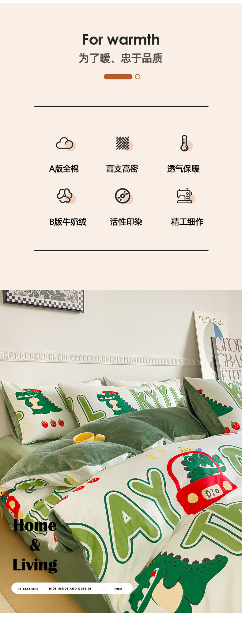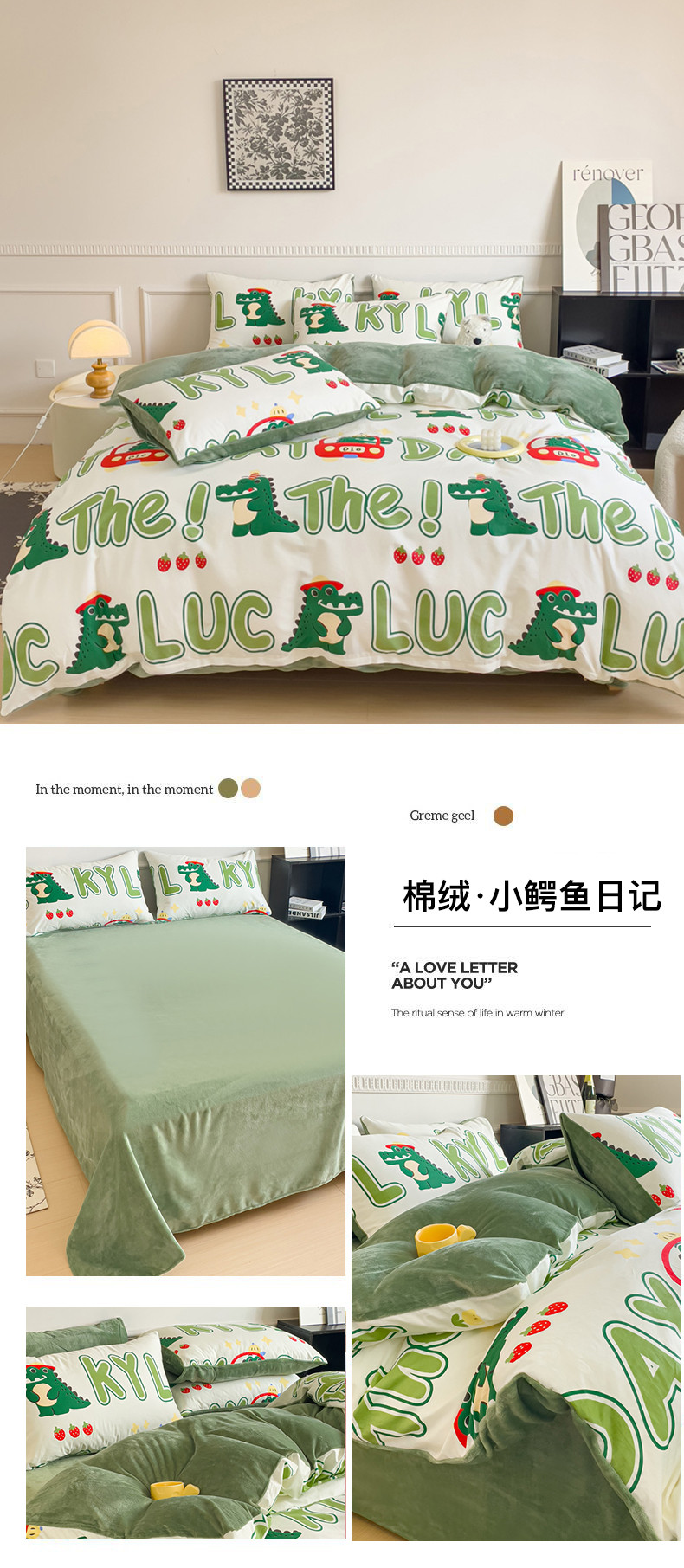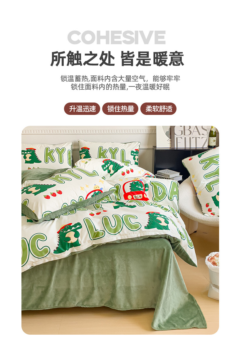 当前位置: 91家纺网 > 商品网购 > 床品套件 > 四件套 > 牛奶绒四件套 > 金鑫汇新款A版面料+B版高克重牛奶绒四件套棉加绒-小鳄鱼日记