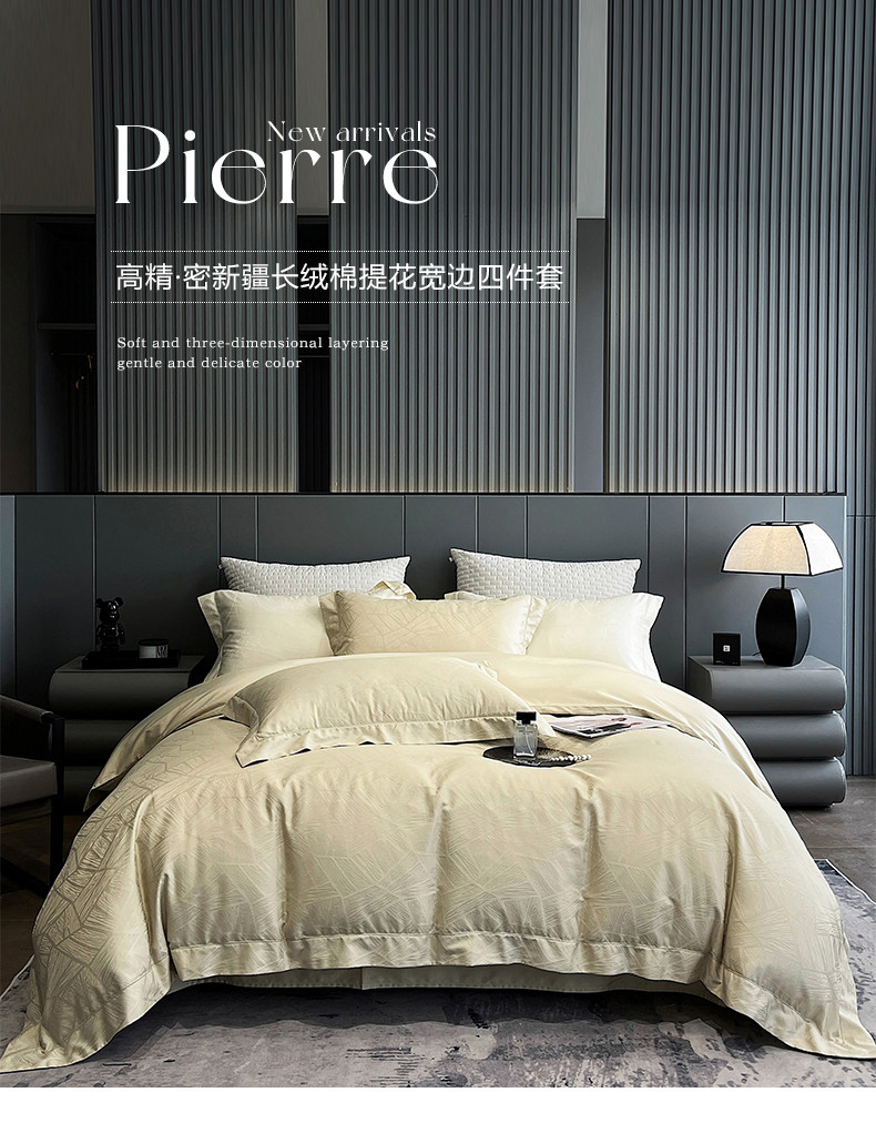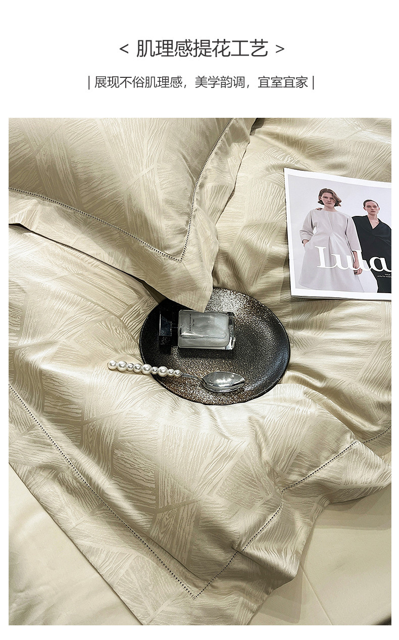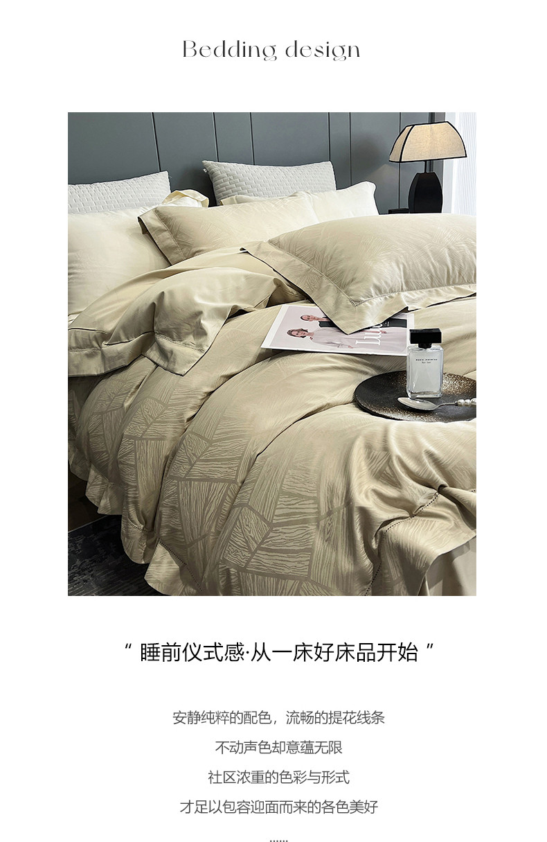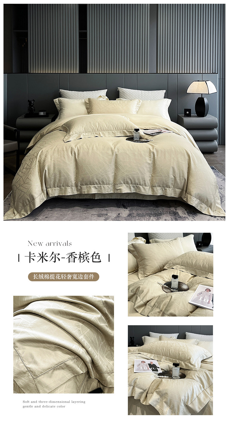 商品名称:宜代光年 2023新款100支长绒棉宽边提花四件套 卡米尔-香槟色