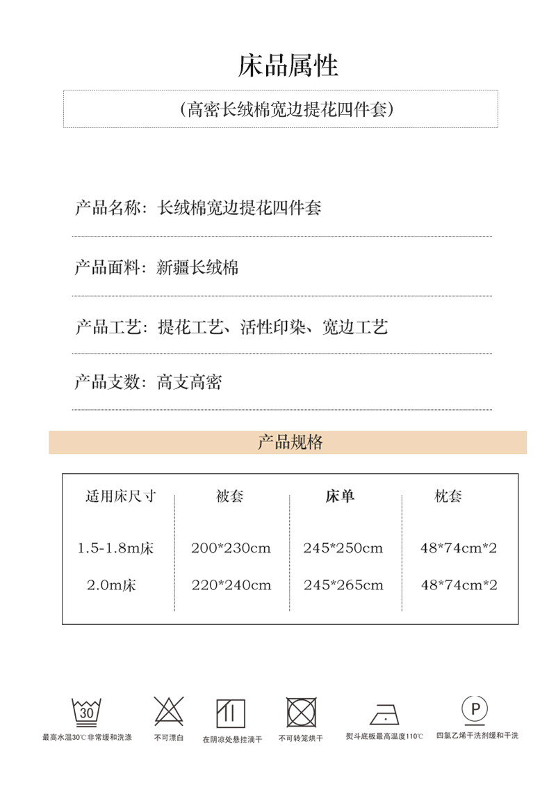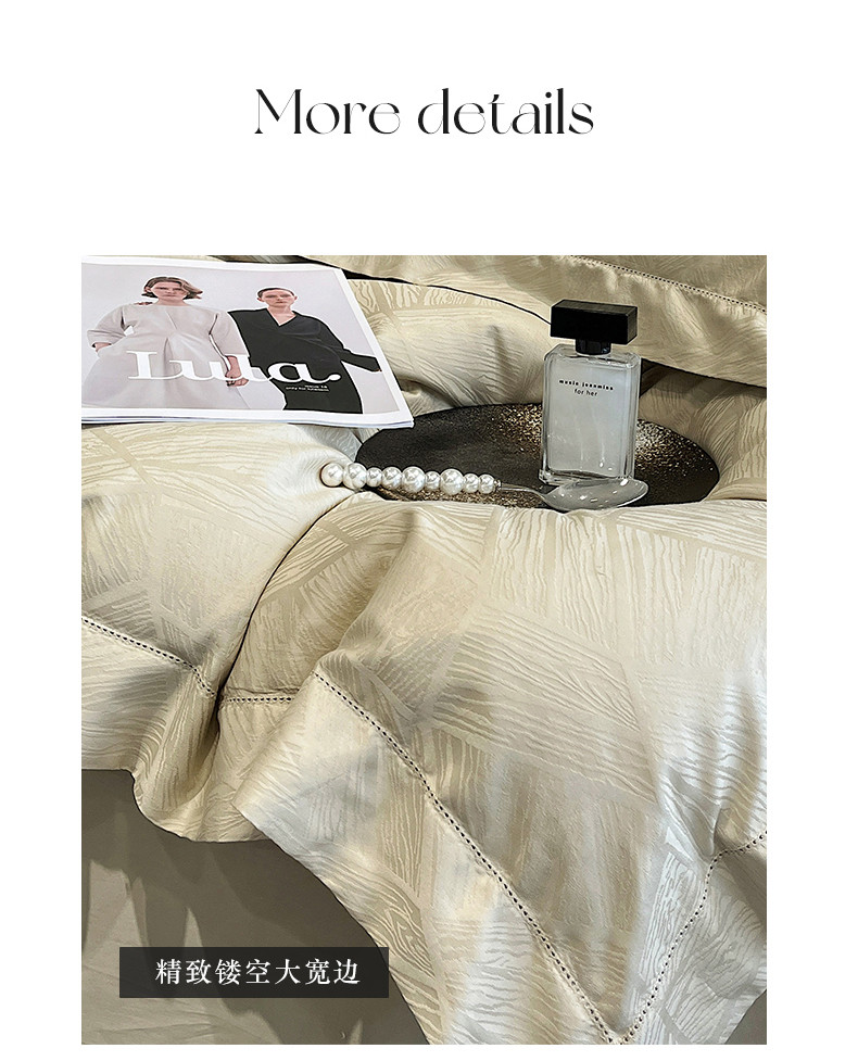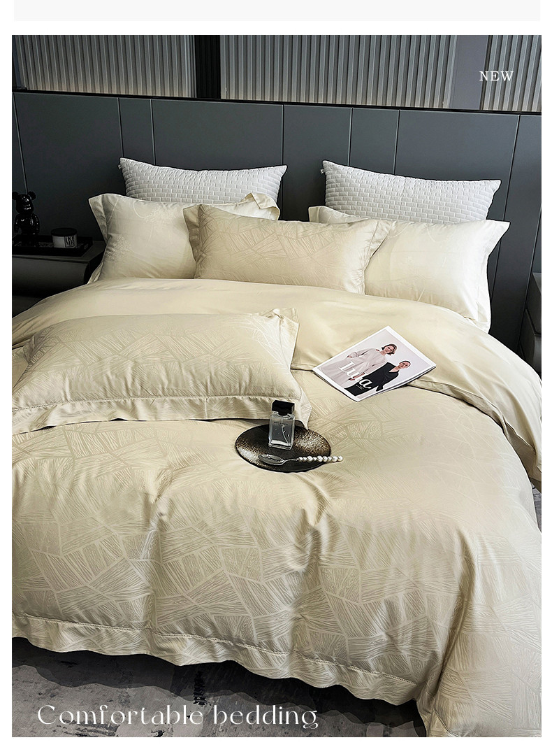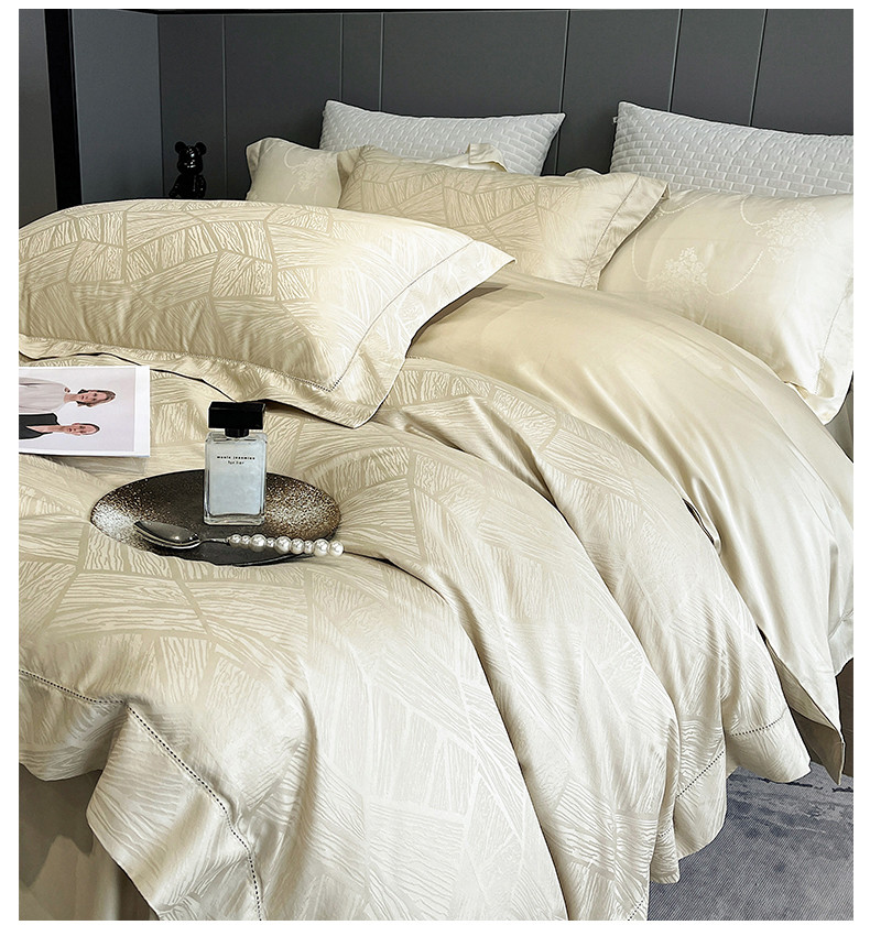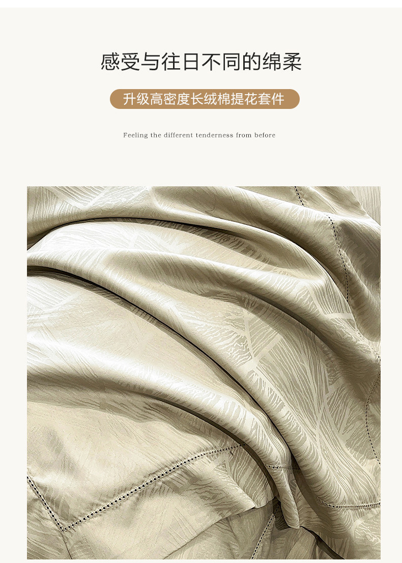 商品名称:宜代光年 2023新款100支长绒棉宽边提花四件套 卡米尔-香槟色
