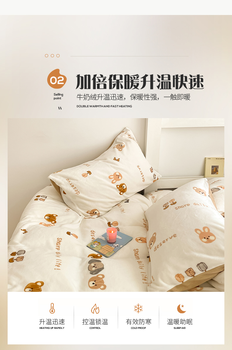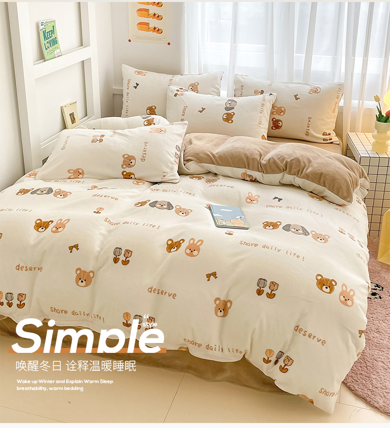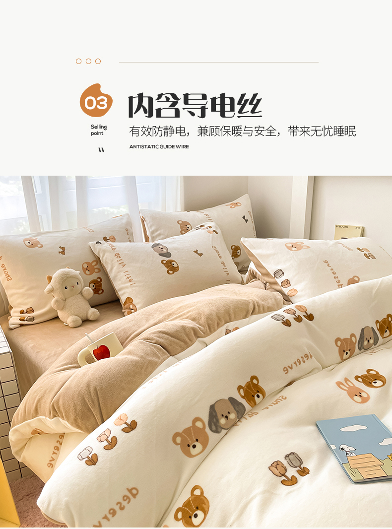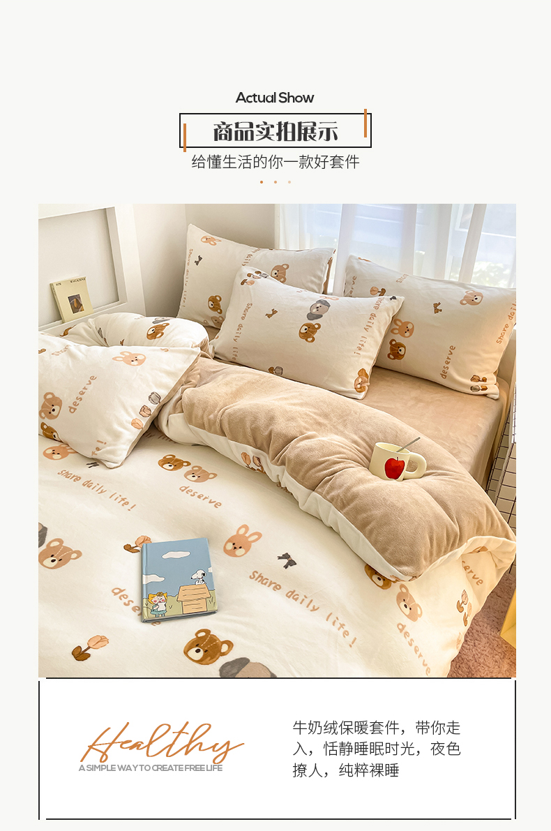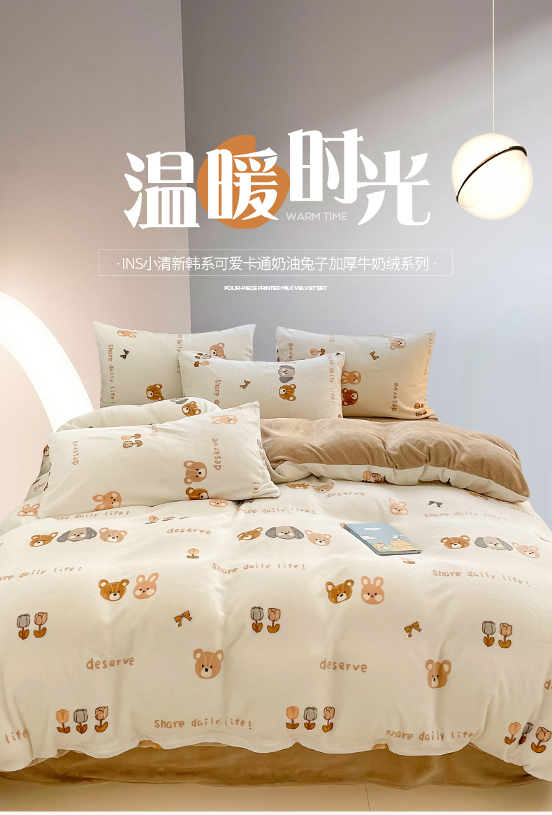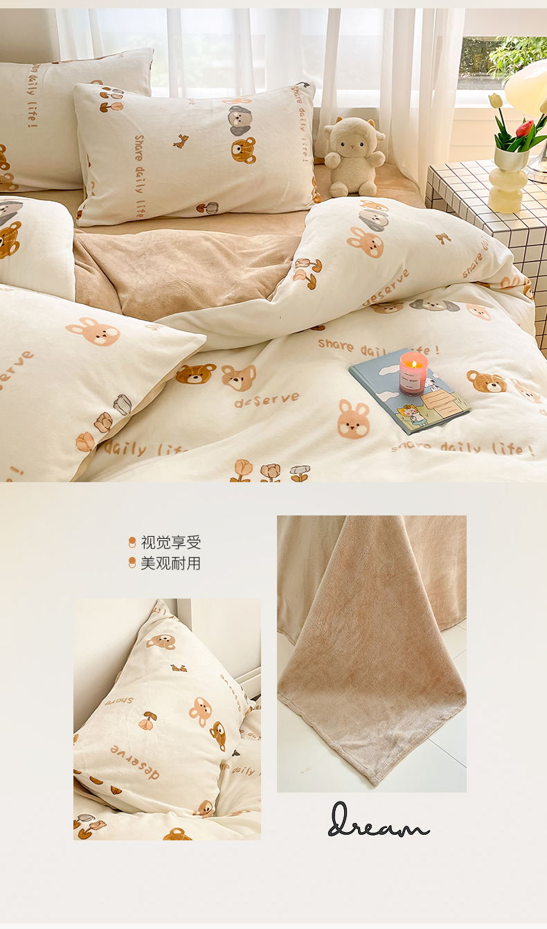 桃子 2023新款ins小清新韩系可爱卡通奶油兔子加厚牛奶绒系列四件套详情第三批 绒-可妮乐园