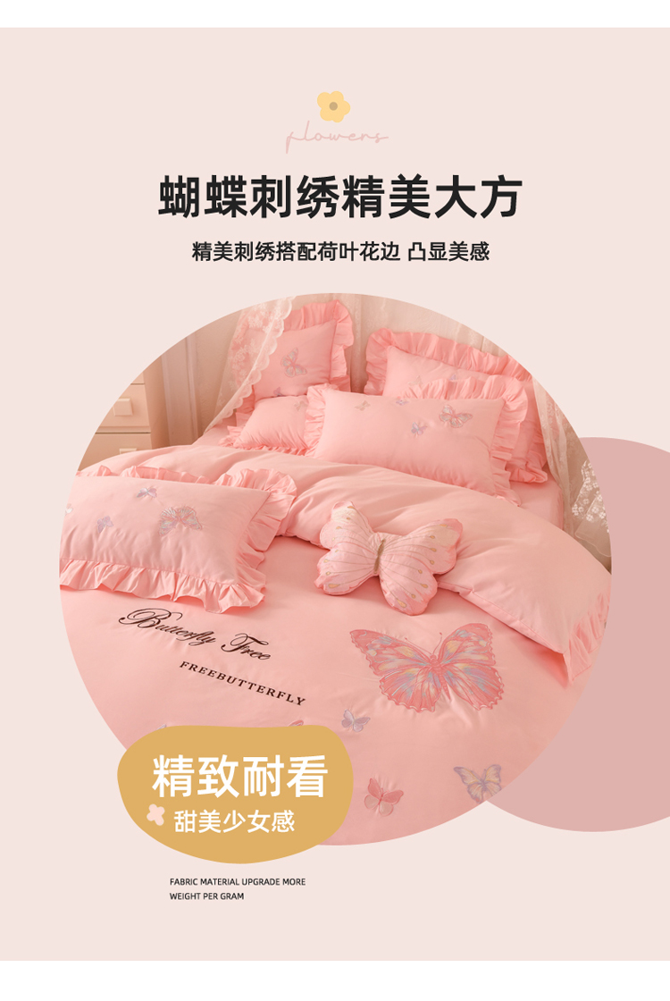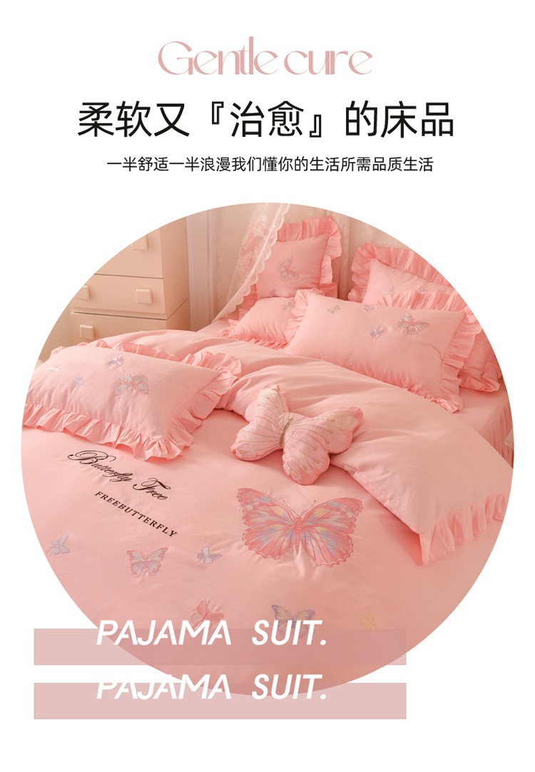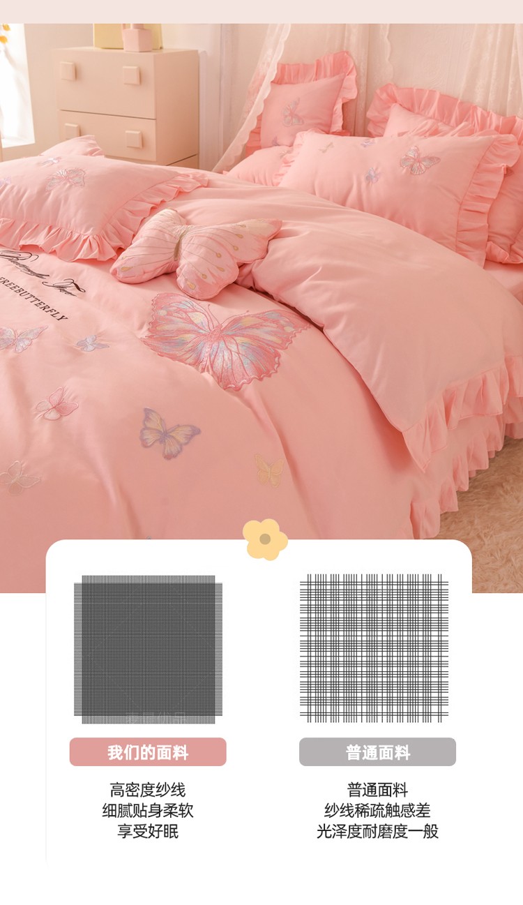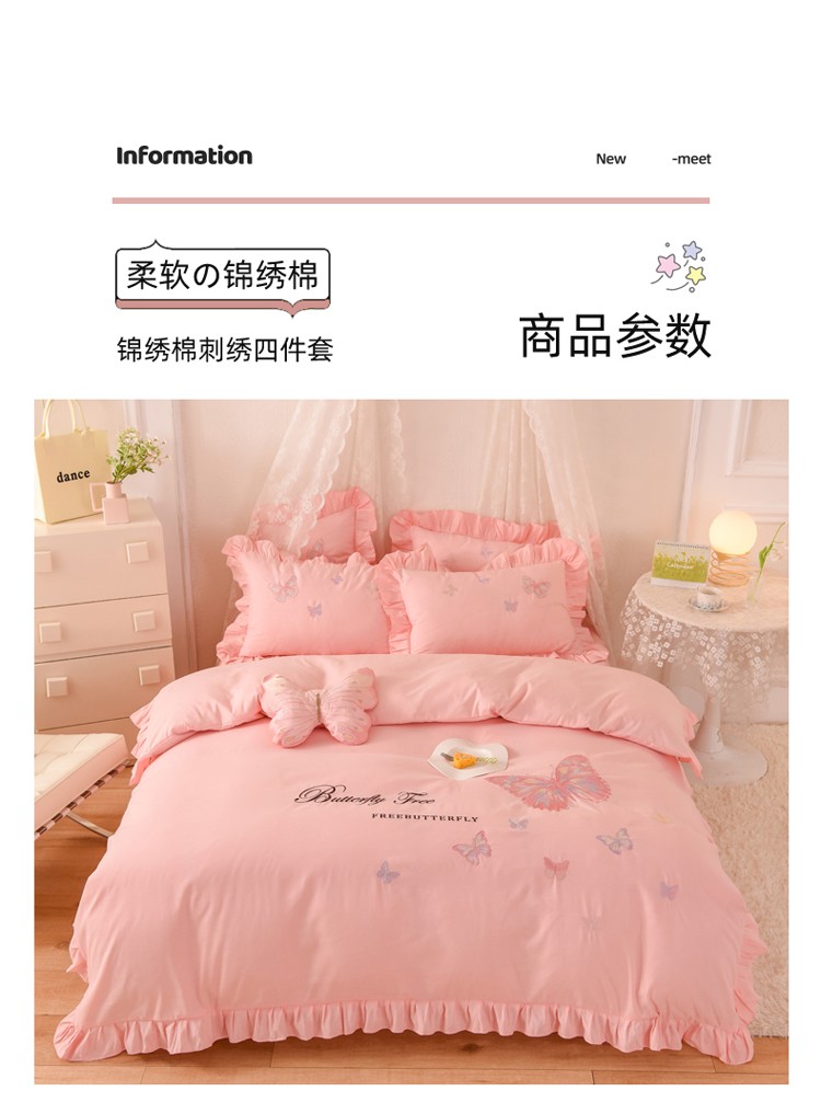 当前位置: 91家纺网 > 商品网购 > 床品套件 > 四件套 > 化纤普通四件套 > 欧冠 2023新款秋冬保暖云锦棉刺绣花边羽蝶系列四件套 羽蝶-玉色