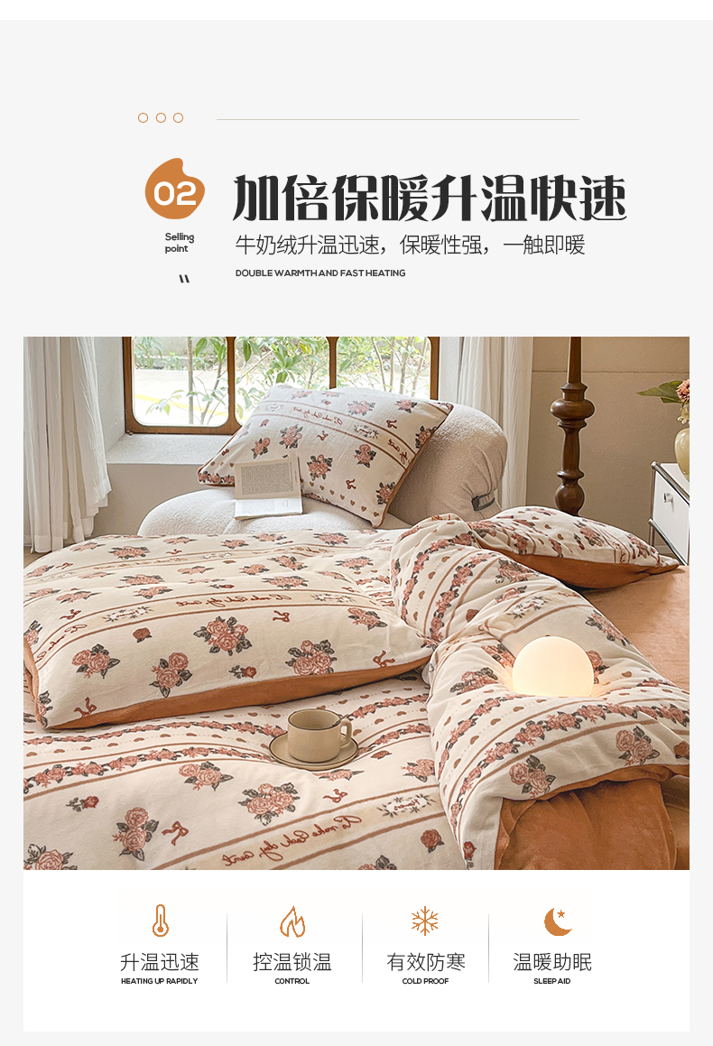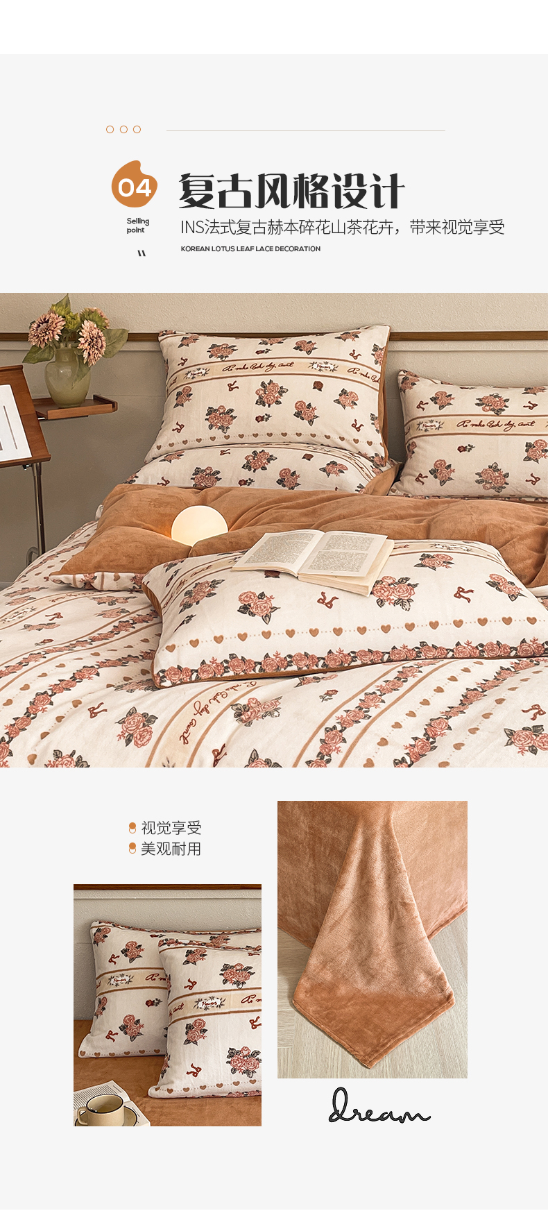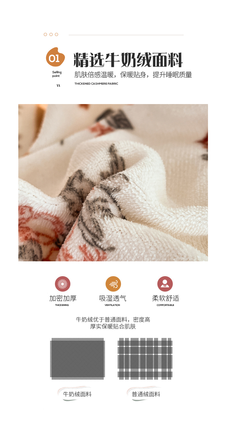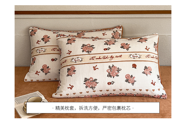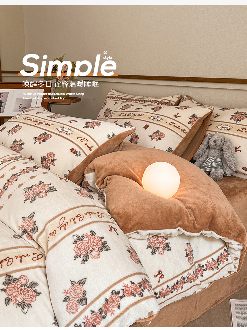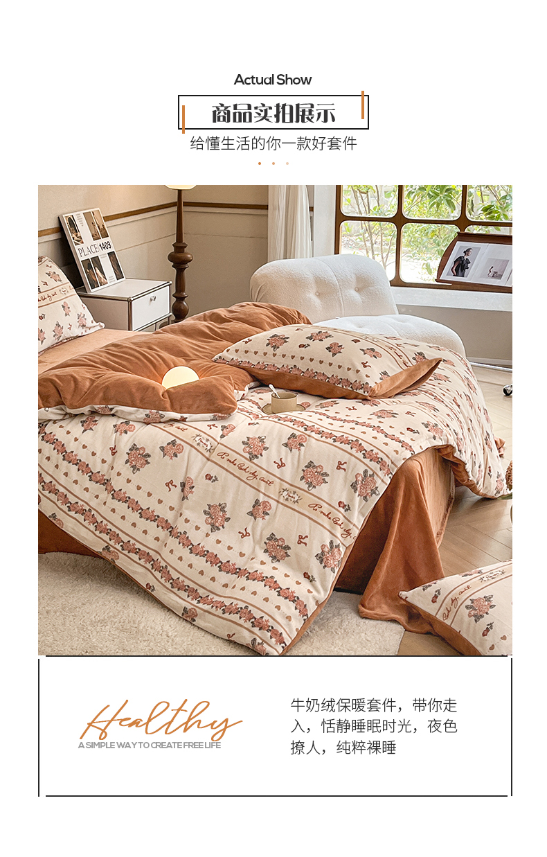 桃子家居 2023新款ins法式复古赫本碎花山茶花卉加厚牛奶绒系列四件套 绒-伊莉莎