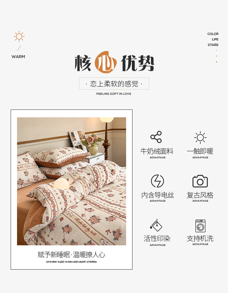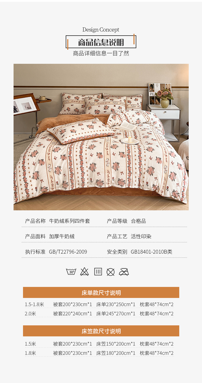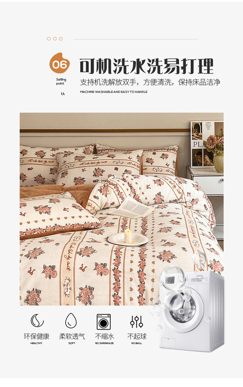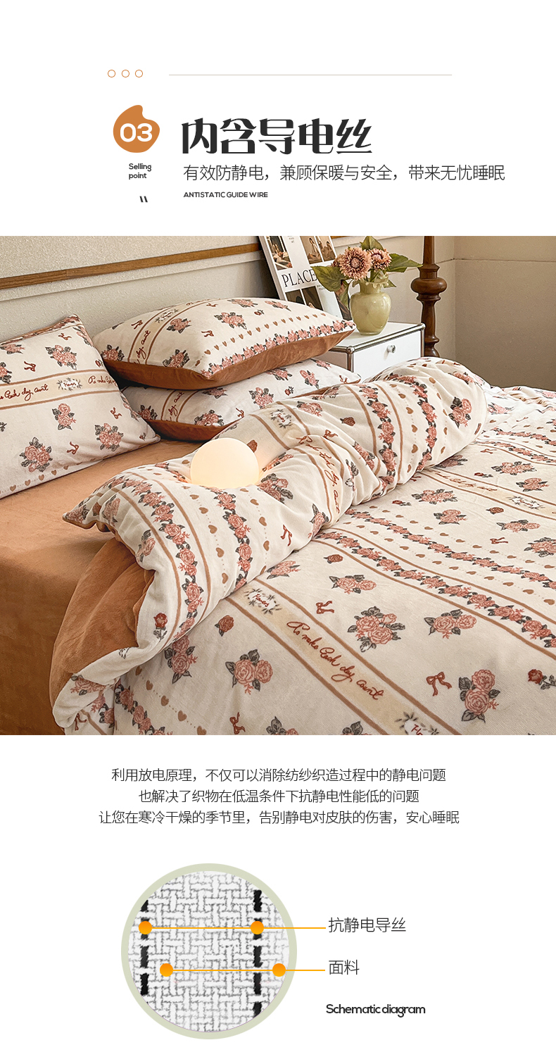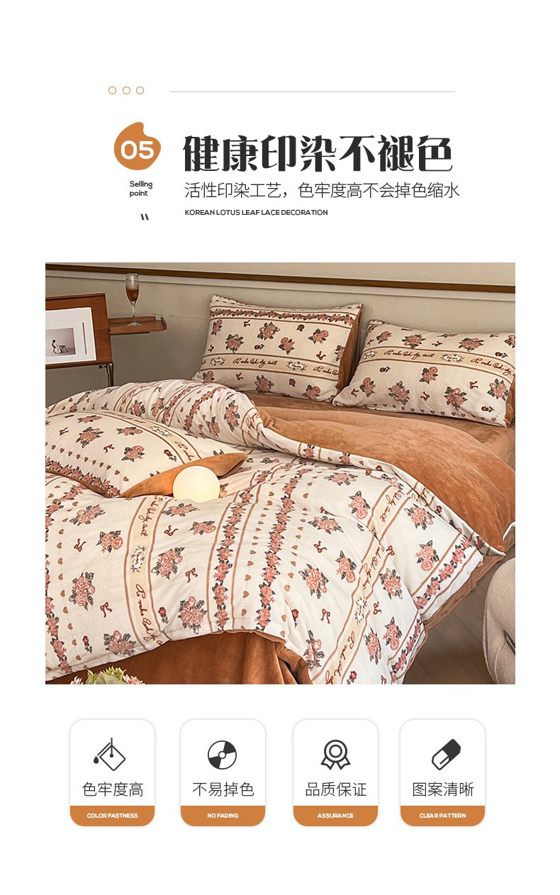桃子家居 2023新款ins法式复古赫本碎花山茶花卉加厚牛奶绒系列四件套 绒-伊莉莎