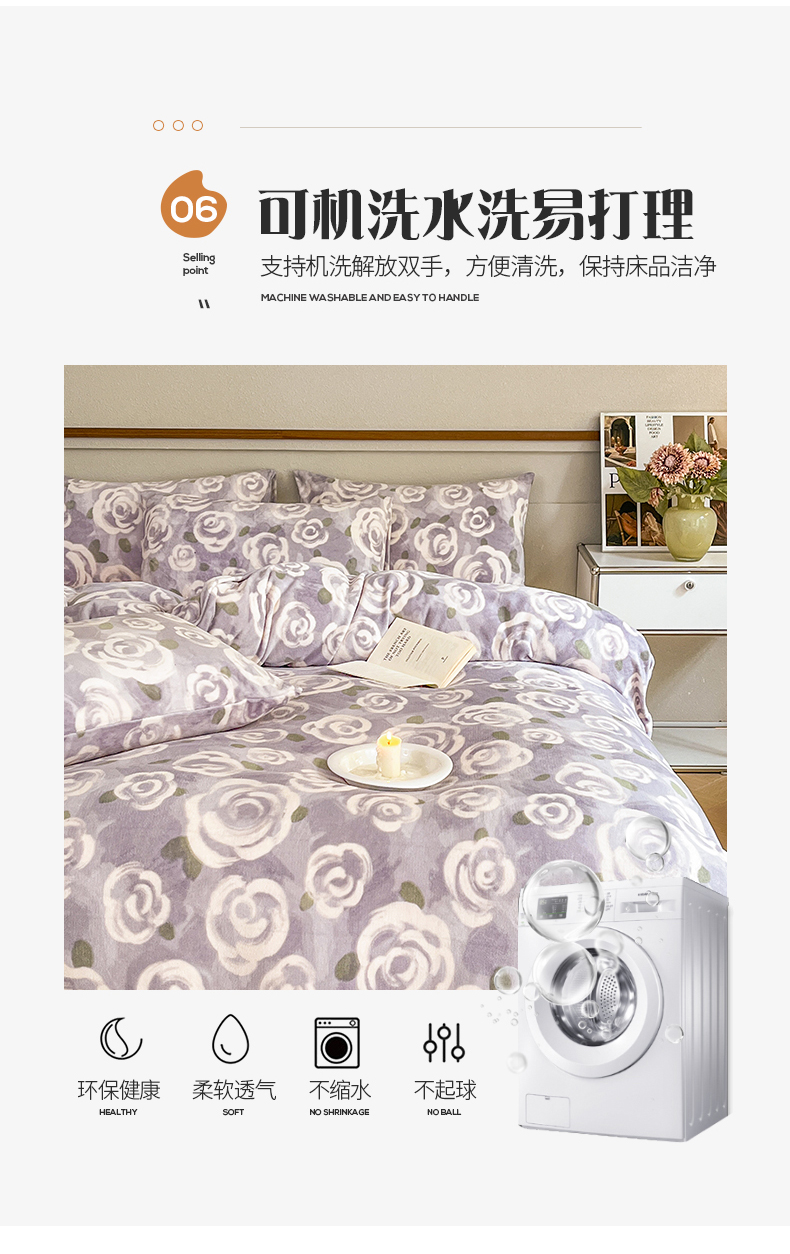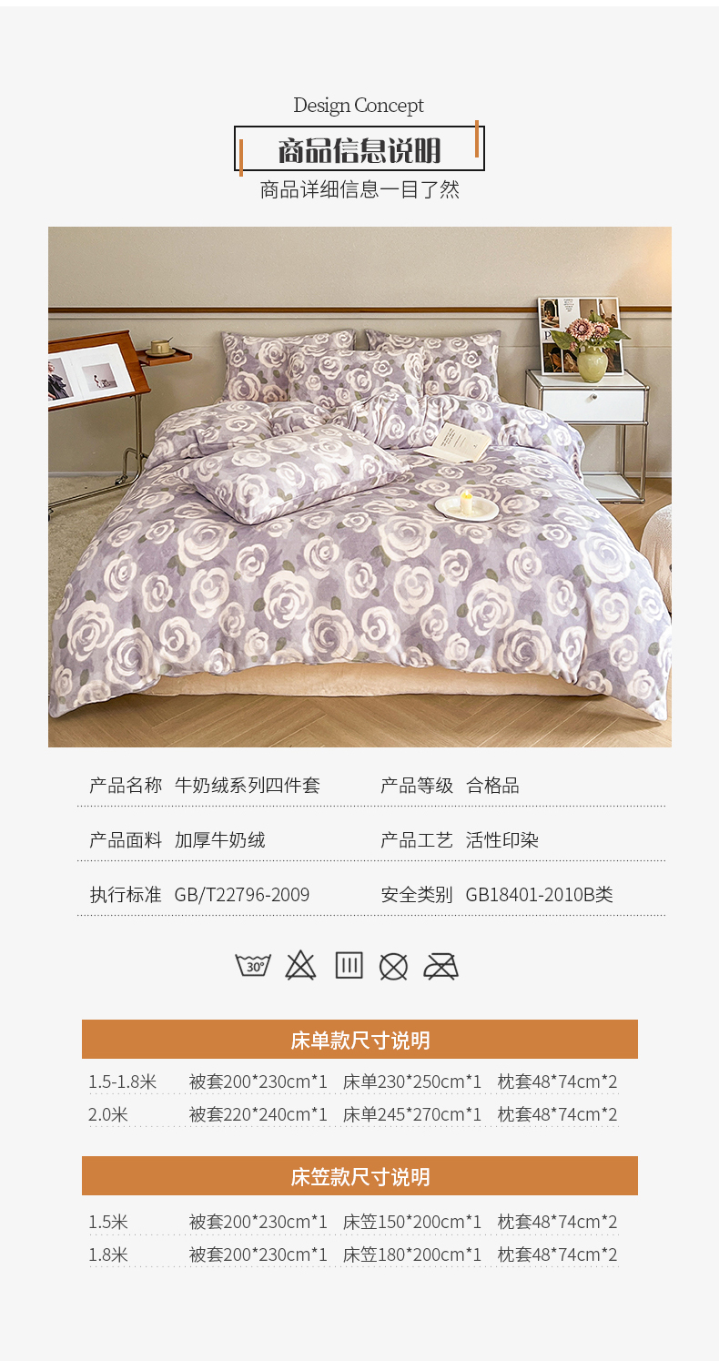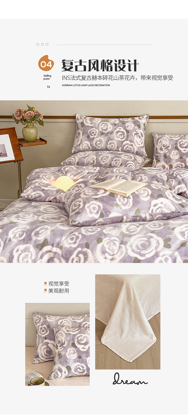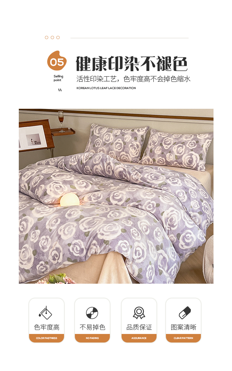 商品名称:桃子家居 2023新款ins法式复古赫本碎花山茶花卉加厚牛奶绒系列四件套 绒-紫色茉香