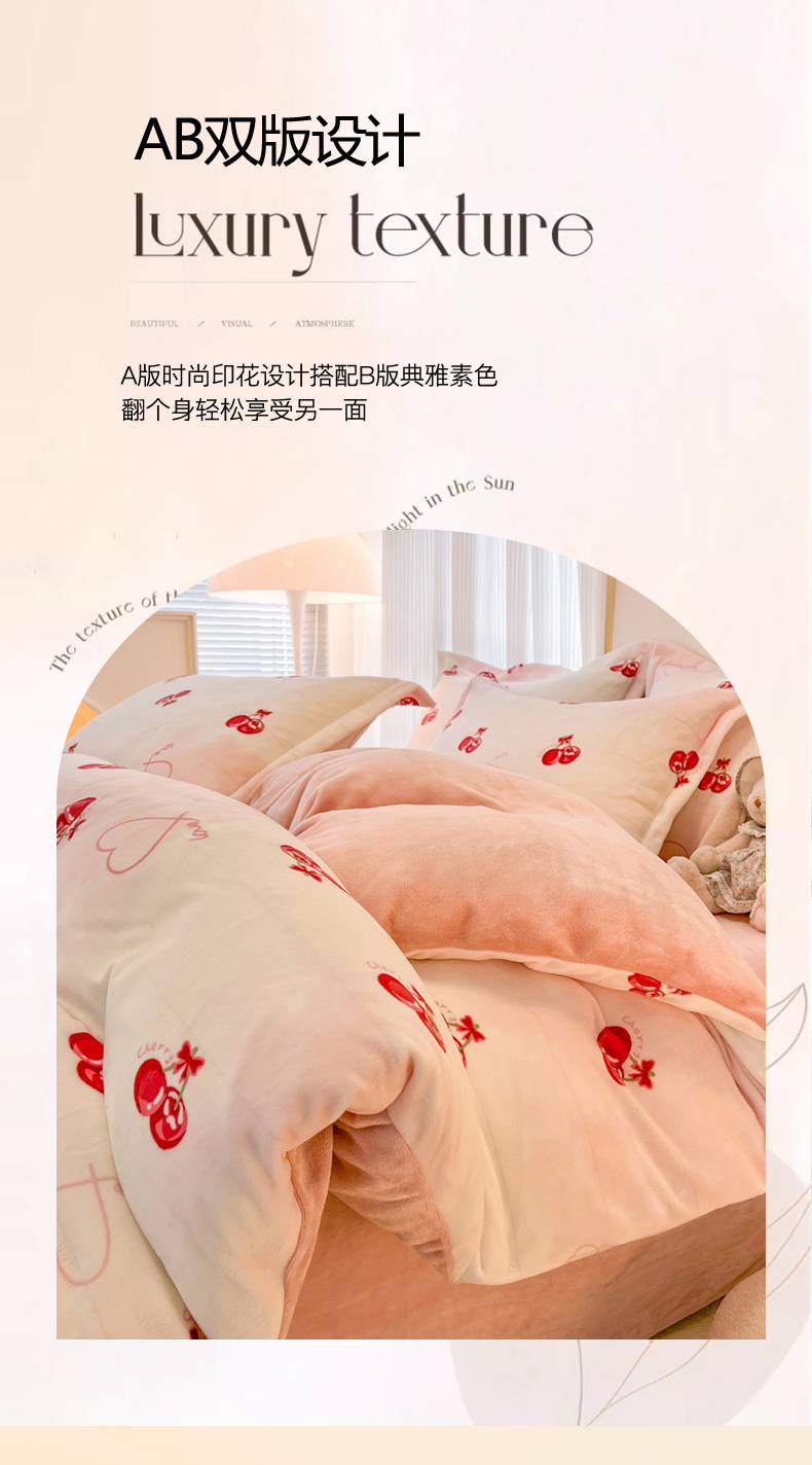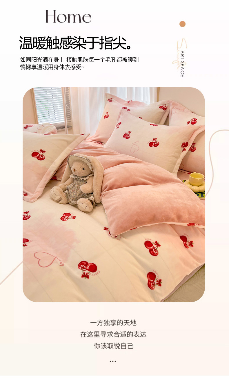 • 91家纺网 家纺一手货源 找家纺 寐居家纺 2023新款小清新印花牛奶绒单被套 甜心樱桃