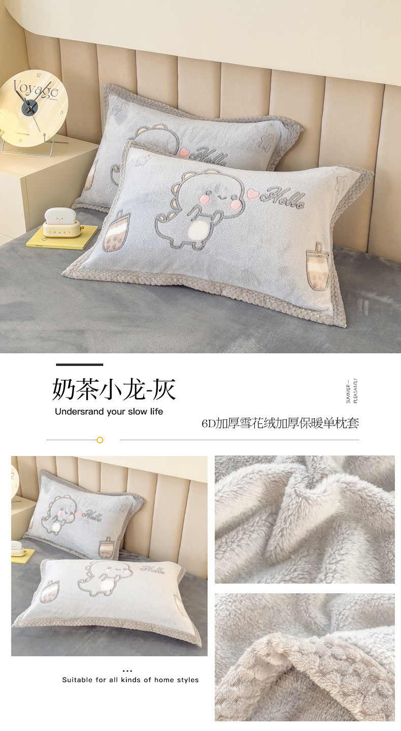 商品名称:2023新款立体6D雪花绒加厚保暖系列单枕套 48x74cm一对 奶茶小龙-灰