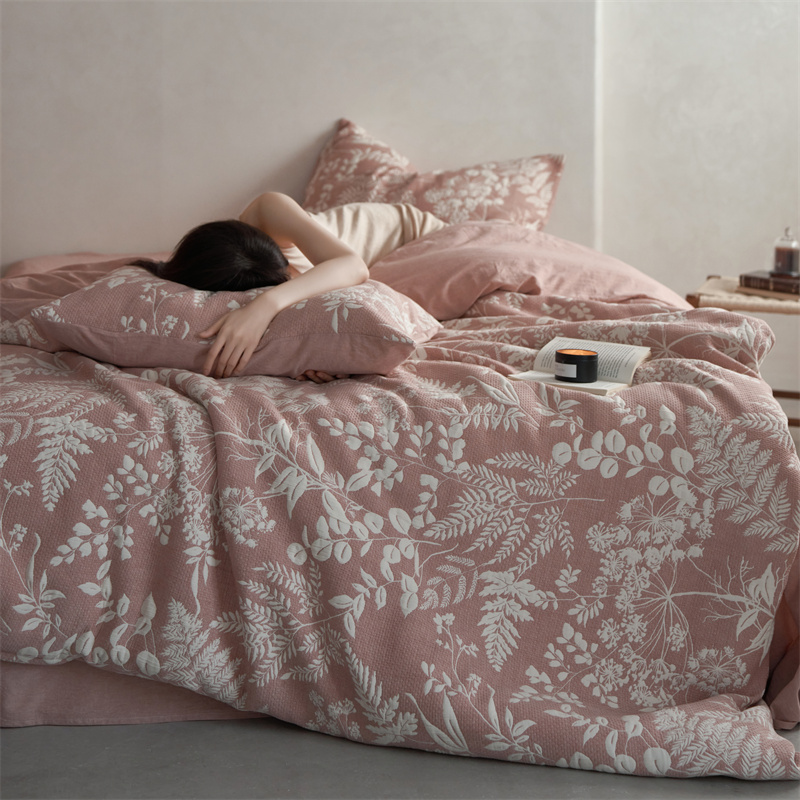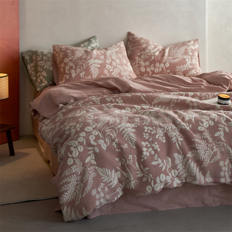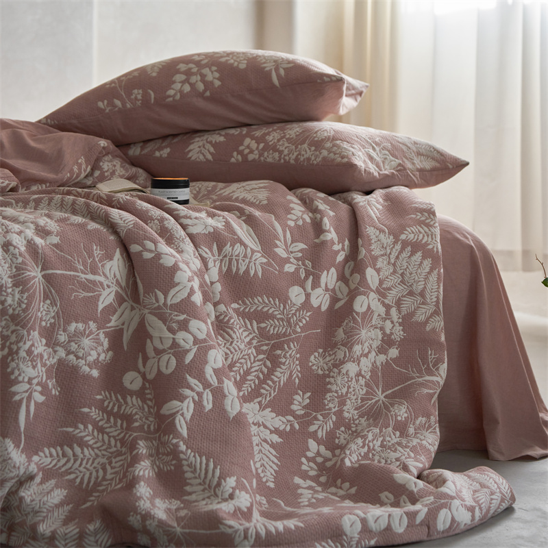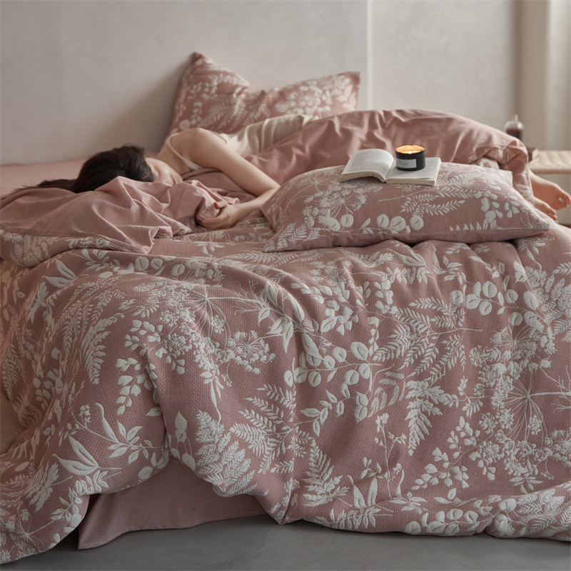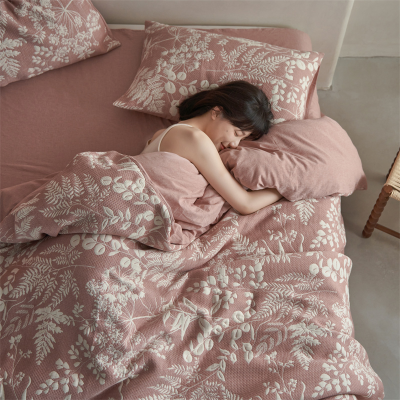 安莱生活 2023新款A类空气层双层纱大提花枝繁叶茂空气层系列四件套 枝繁叶茂-暗红