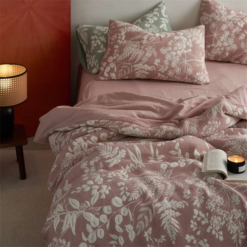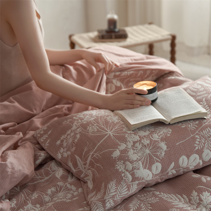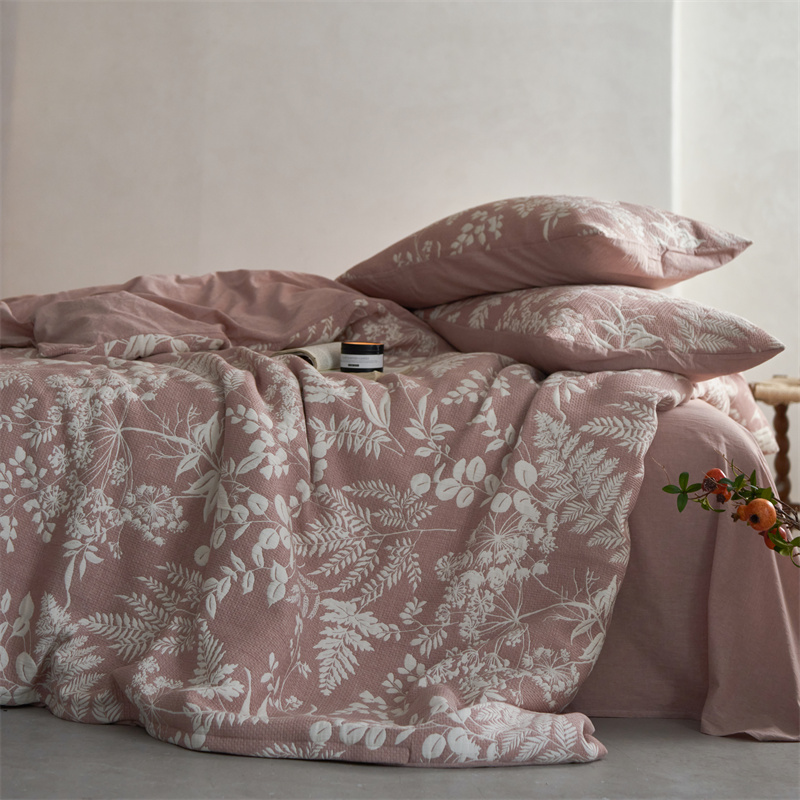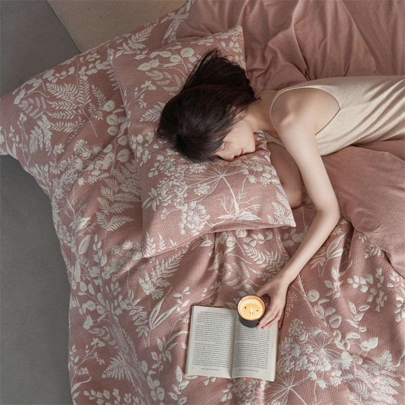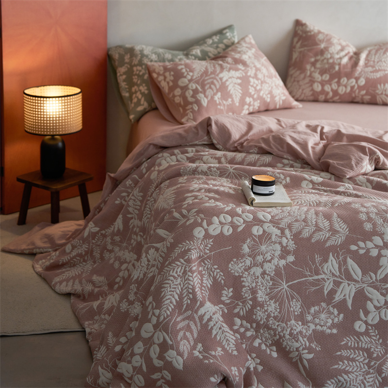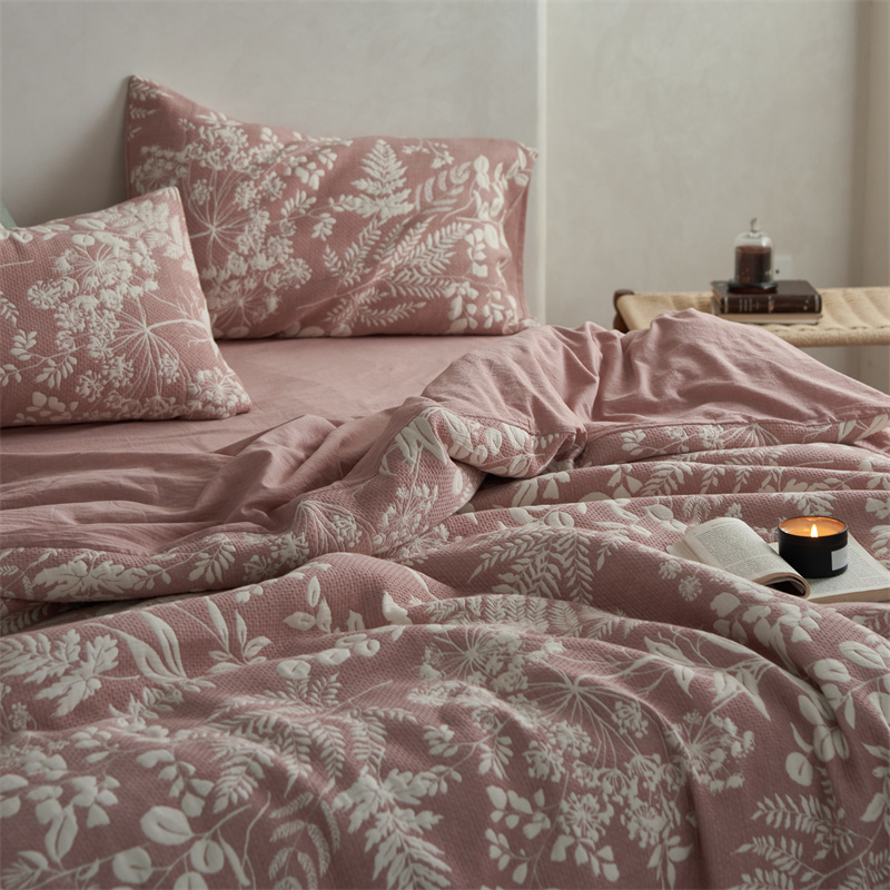安莱生活 2023新款A类空气层双层纱大提花枝繁叶茂空气层系列四件套 枝繁叶茂-暗红