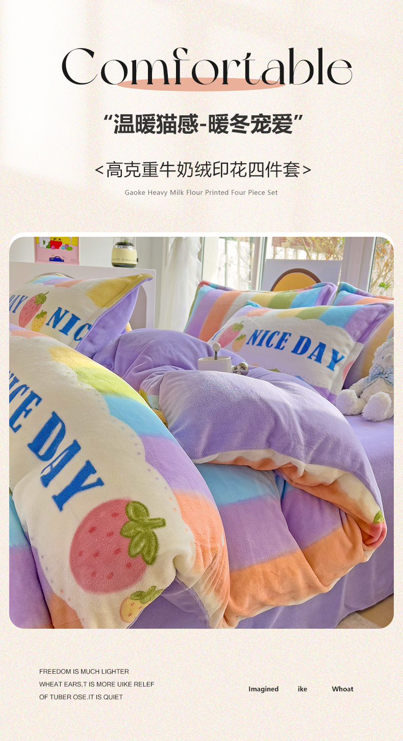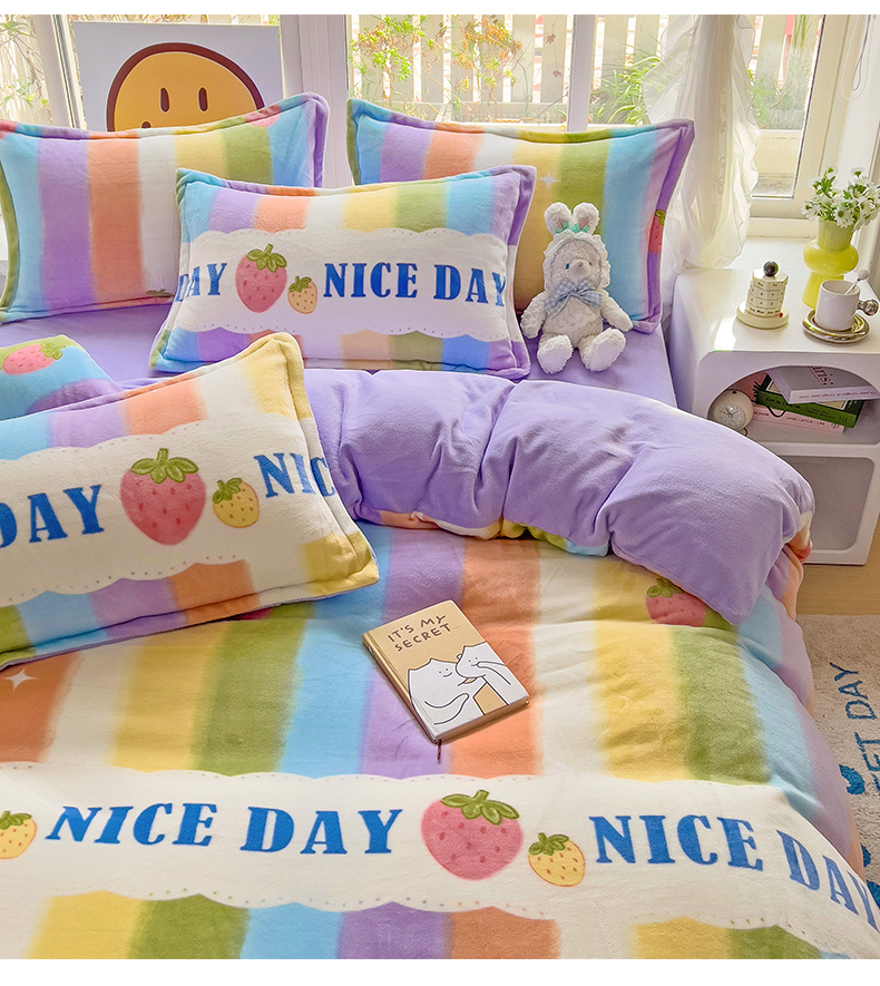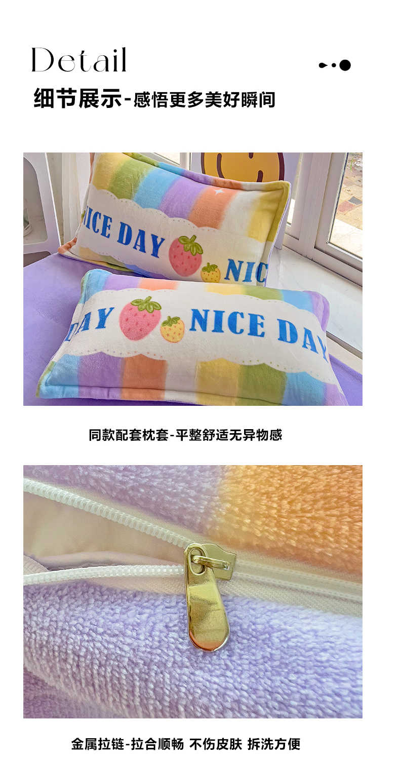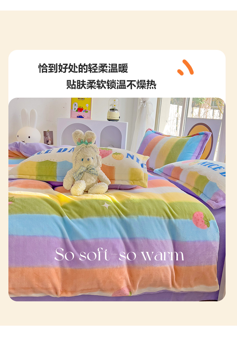 当前位置: 91家纺网 > 商品网购 > 床品套件 > 四件套 > 牛奶绒四件套 > 包小包 2023直播爆款220g高克重印花小清新牛奶绒四件套 彩虹甜心