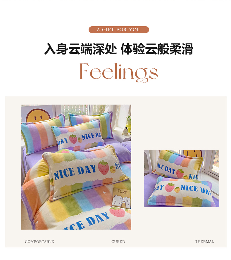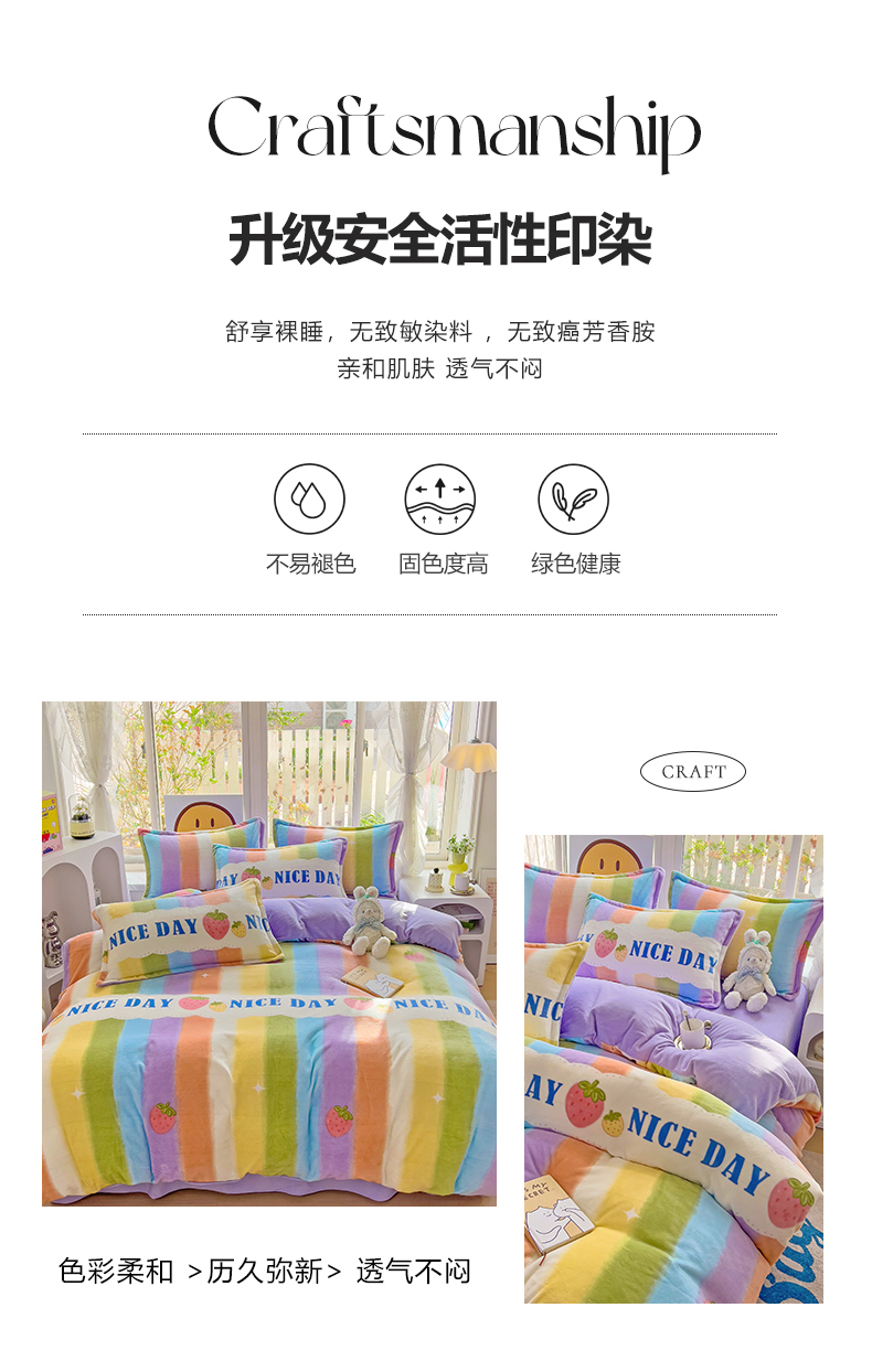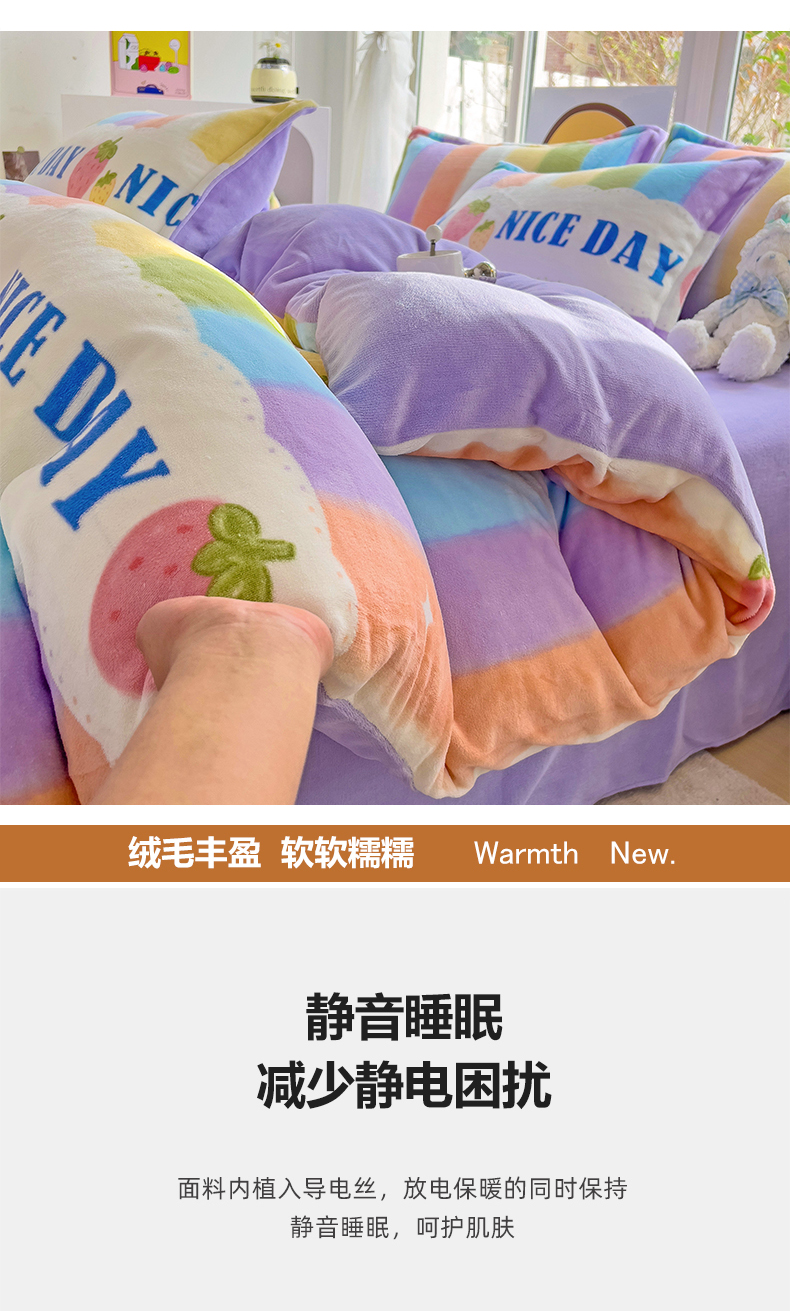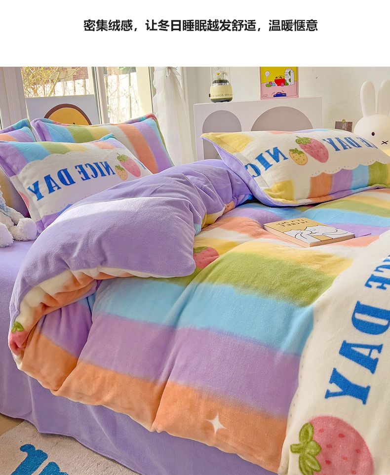 当前位置: 91家纺网 > 商品网购 > 床品套件 > 四件套 > 牛奶绒四件套 > 包小包 2023直播爆款220g高克重印花小清新牛奶绒四件套 彩虹甜心