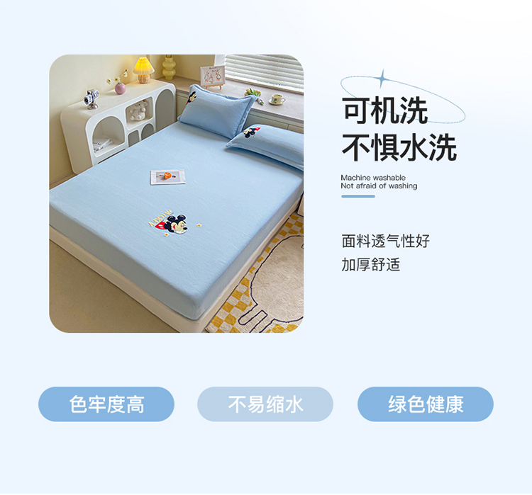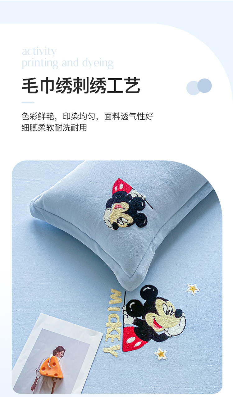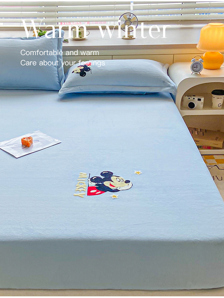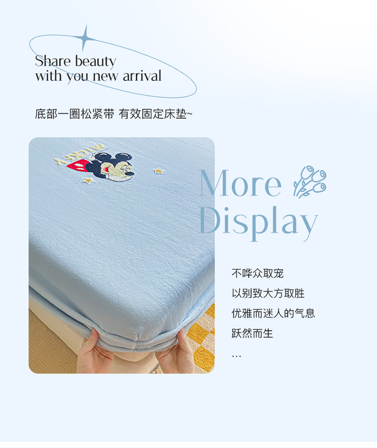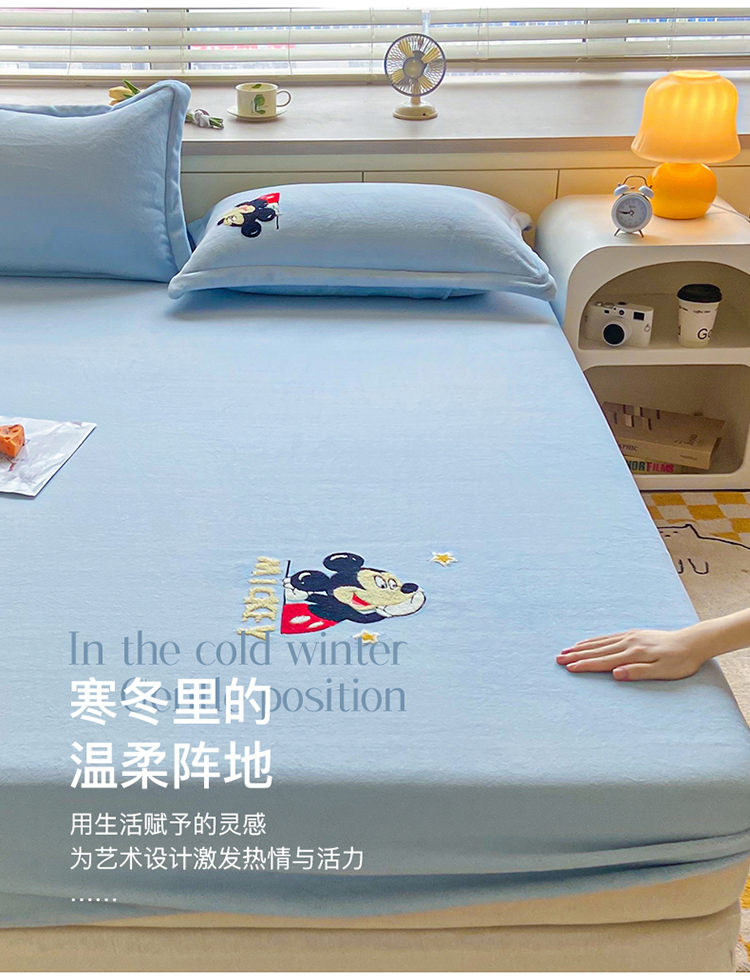 • 91家纺网 家纺一手货源 找家纺 丽美人家纺 2023新款迪士尼牛奶绒床笠 快乐米奇