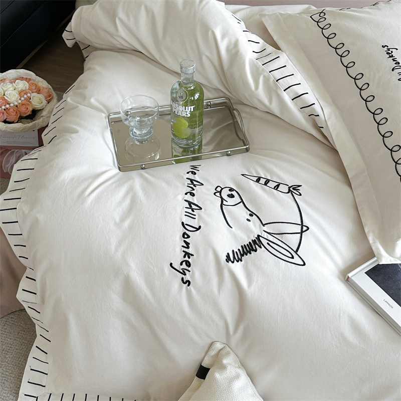 (总)柚子YOUTH 2025新款全棉A类母婴级卡通绣花四件套,吹泡泡,汉堡小猫,马上有钱,女孩的礼物,小狗面包,月亮船