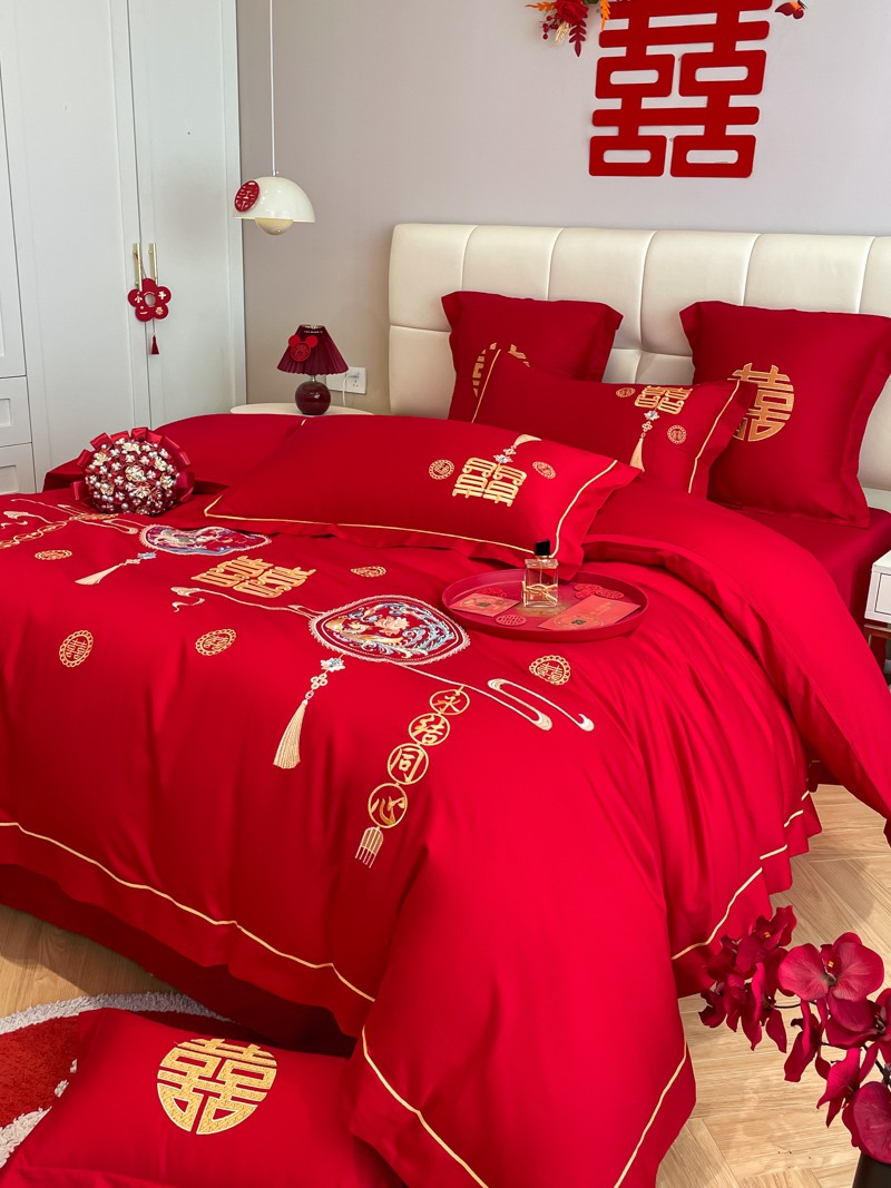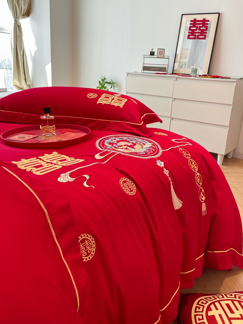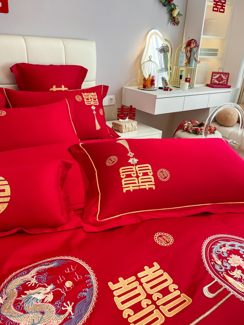 当前位置: 91家纺网 > 商品网购 > 床品套件 > 四件套 > 婚庆四件套 > 欧乐蒂 2025新款亲肤刺绣婚庆四件套 龙凤情缘