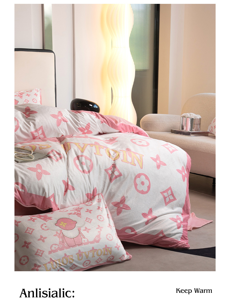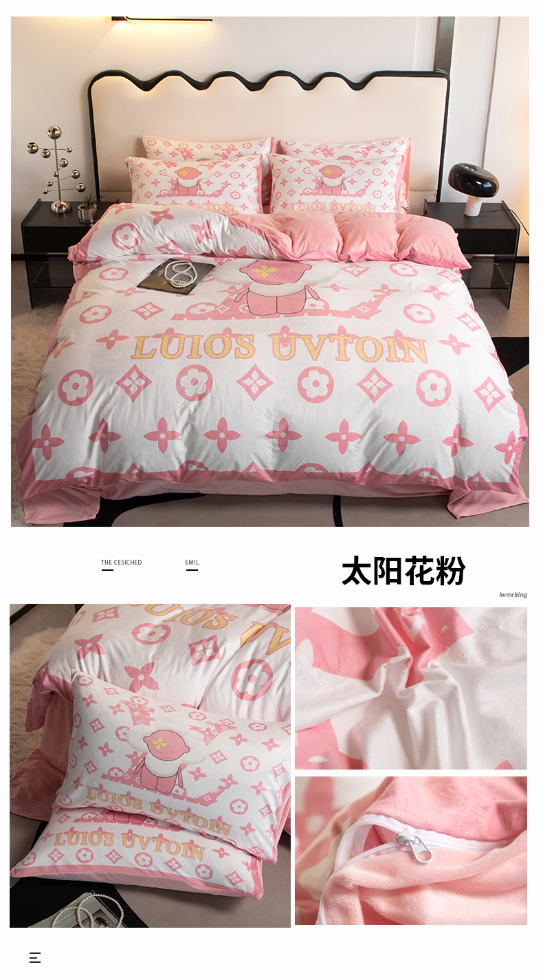 商品名称:摩卡 2024新款秋冬新品网红款婴儿绒毛四件套 太阳花粉
