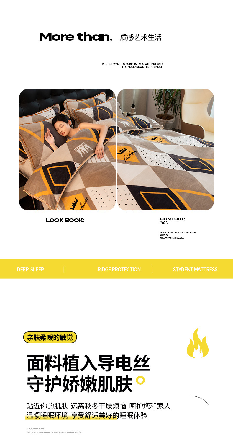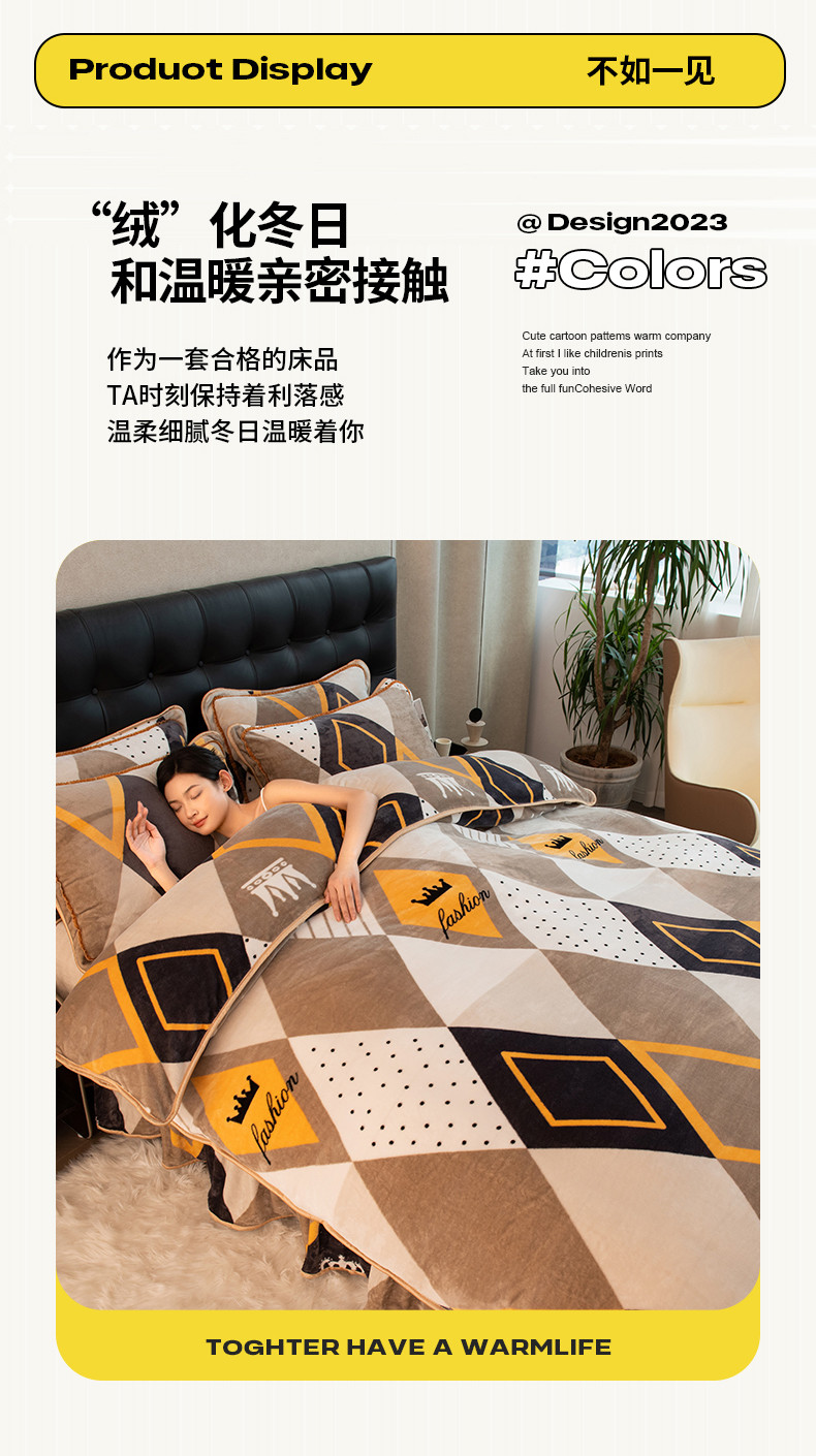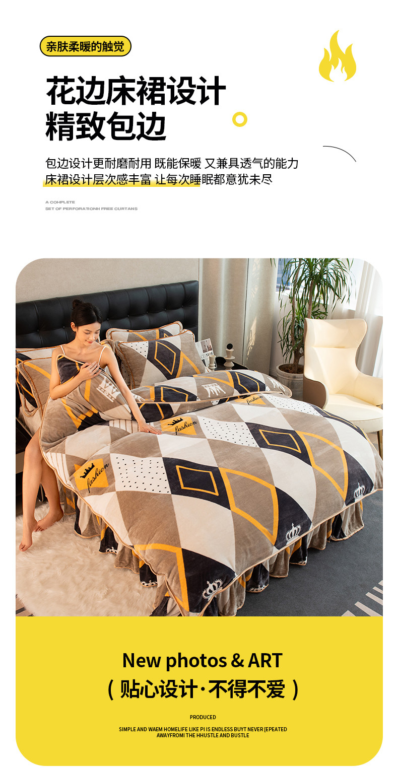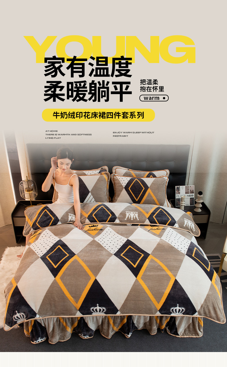 商品名称:2024印花8.5斤牛奶绒金貂水晶法莱珊瑚绒四件套床裙款 简约时尚-灰
