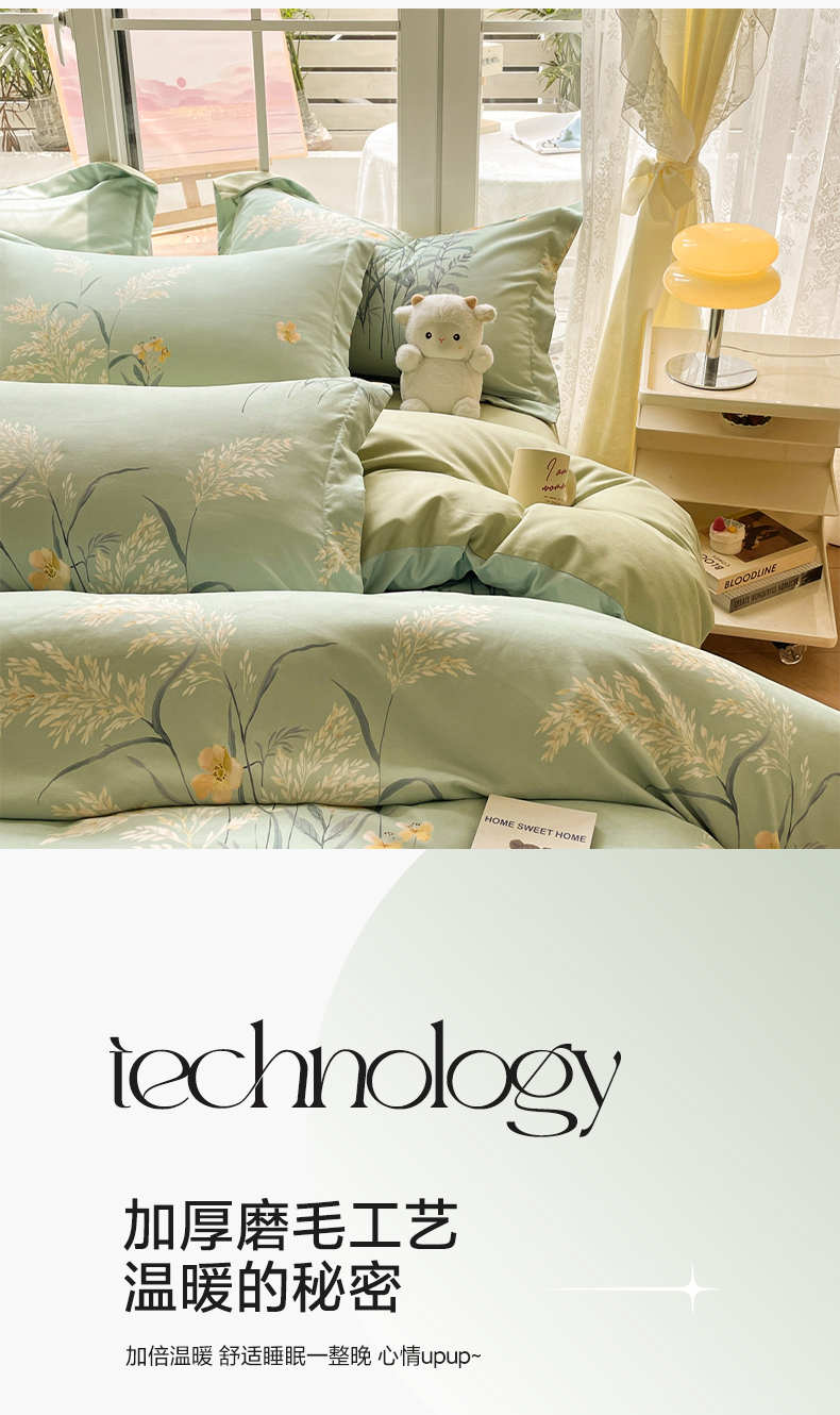 古吉梦 2023新款A类有氧元气棉加厚磨毛四件套 秋香