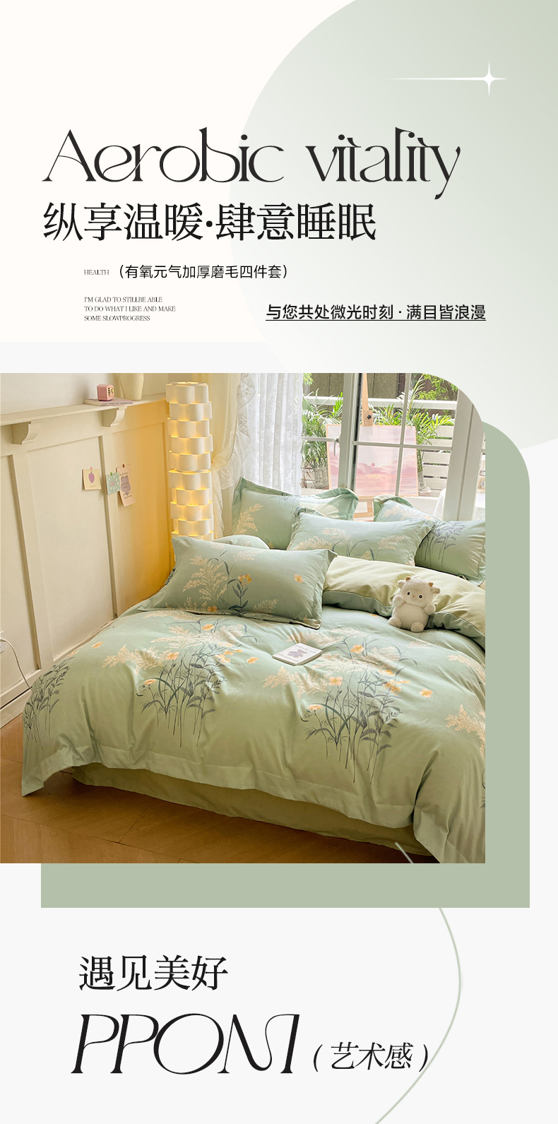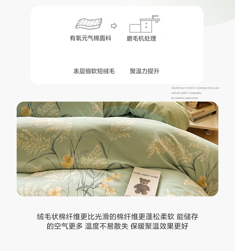 商品名称:古吉梦 2023新款A类有氧元气棉加厚磨毛四件套 秋香