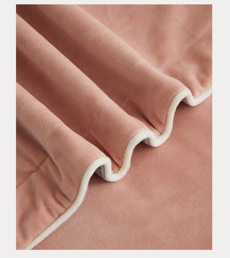 丝涟2023新款轻奢风高克重230g婴儿绒德肤绒亲肤舒适双拼色埋线款滚绳四件套 粉玉+浅灰