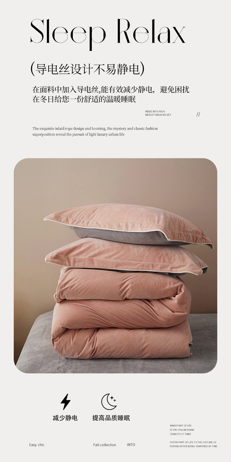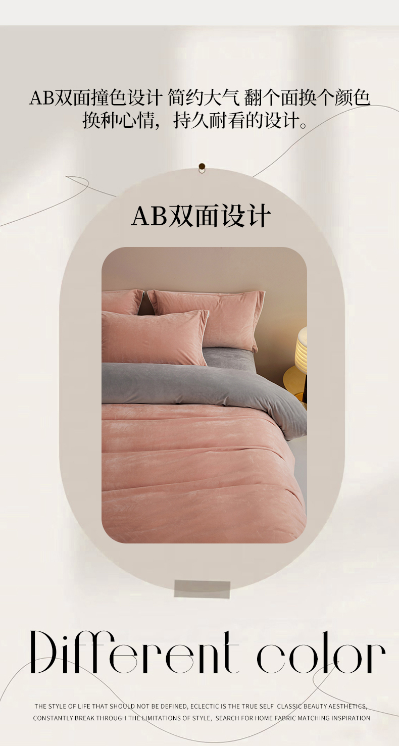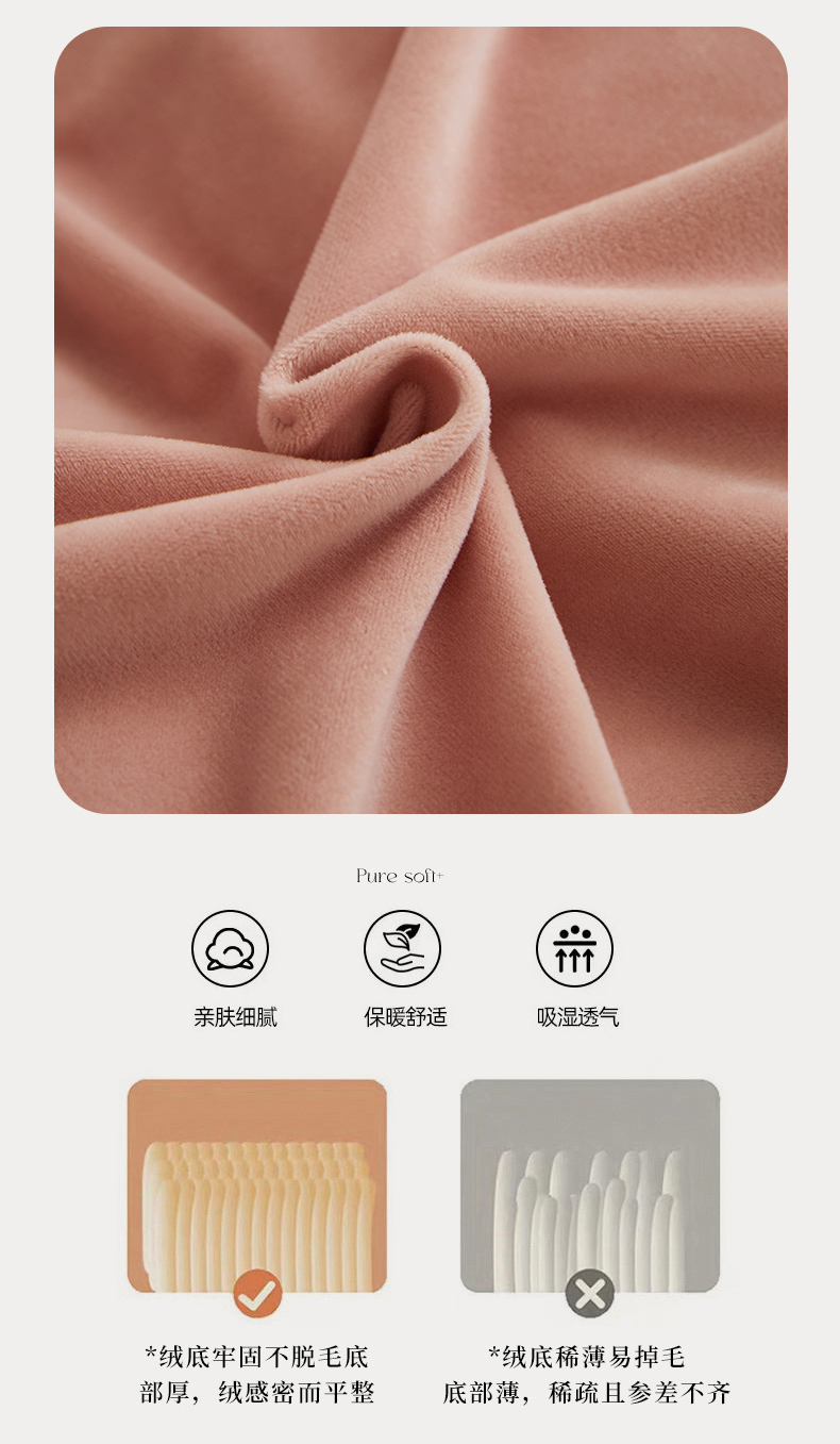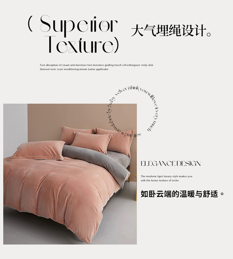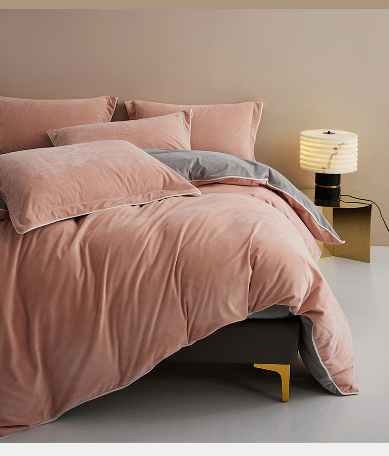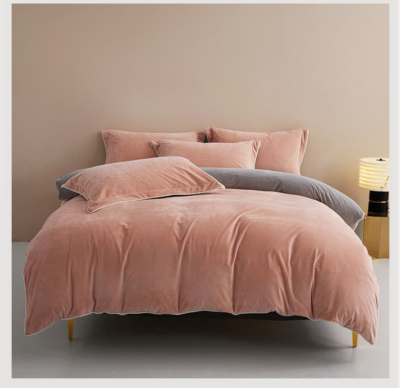 商品名称:丝涟2023新款轻奢风高克重230g婴儿绒德肤绒亲肤舒适双拼色埋线款滚绳四件套 粉玉+浅灰