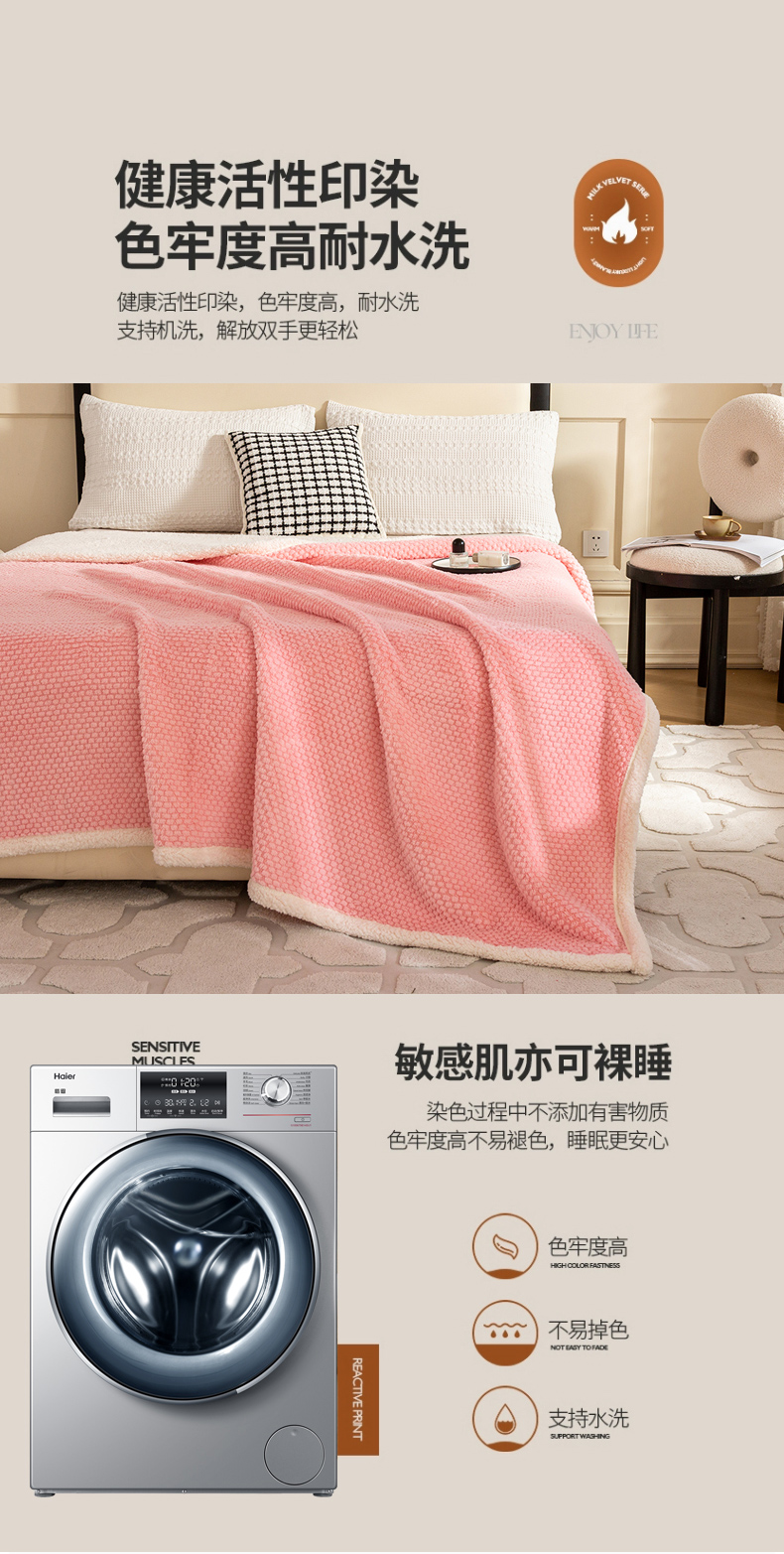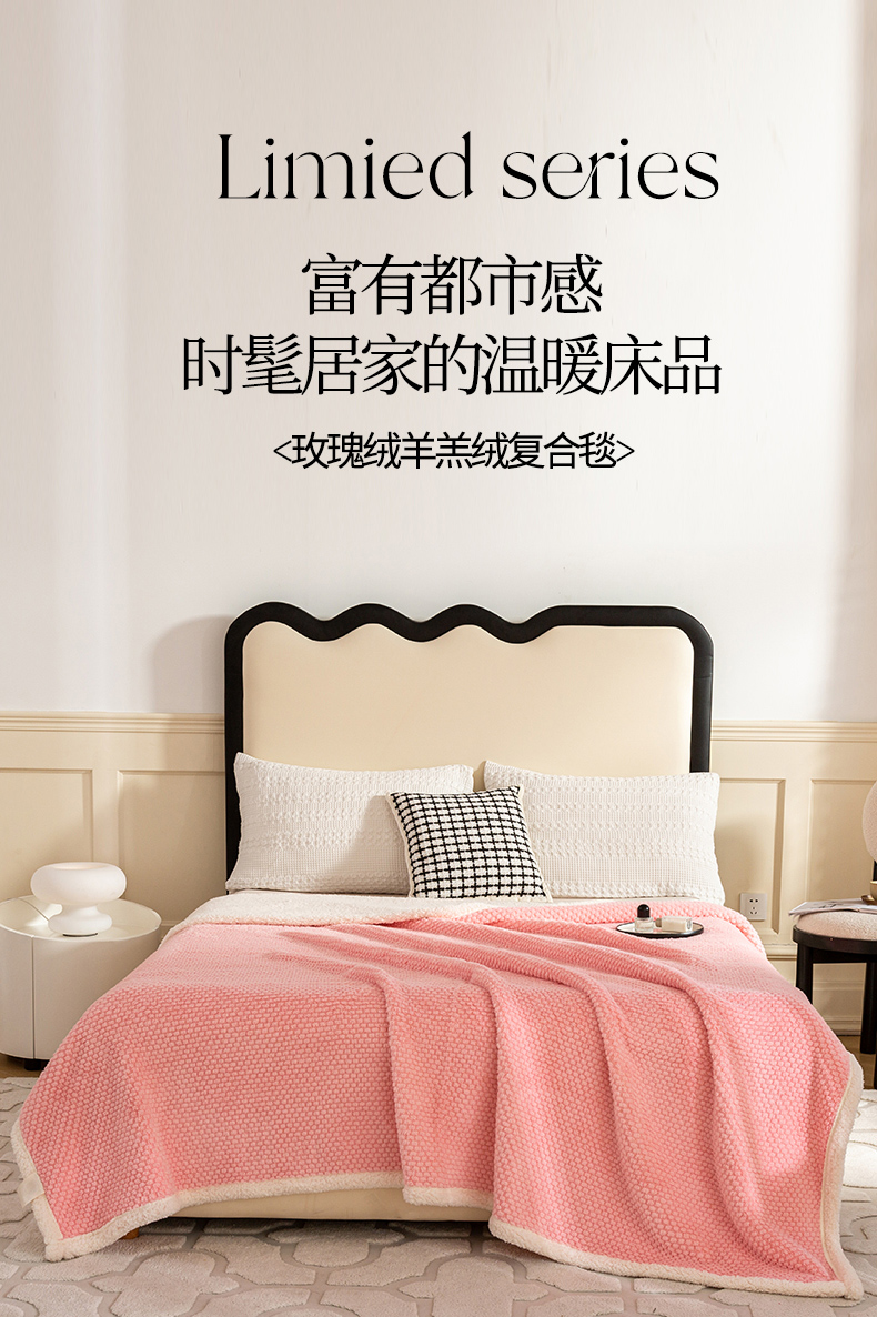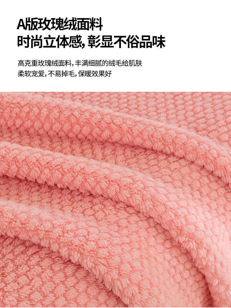 商品名称:丝涟家居 2023新款舒适保暖玫瑰绒毛毯 粉