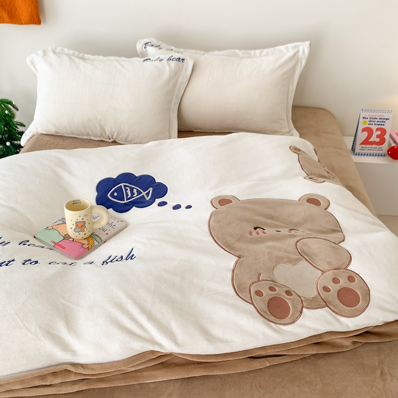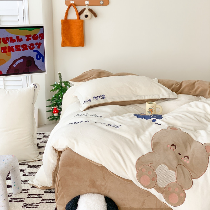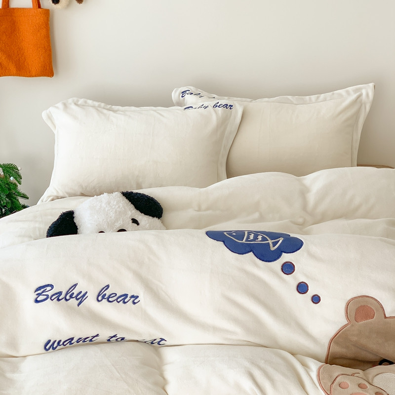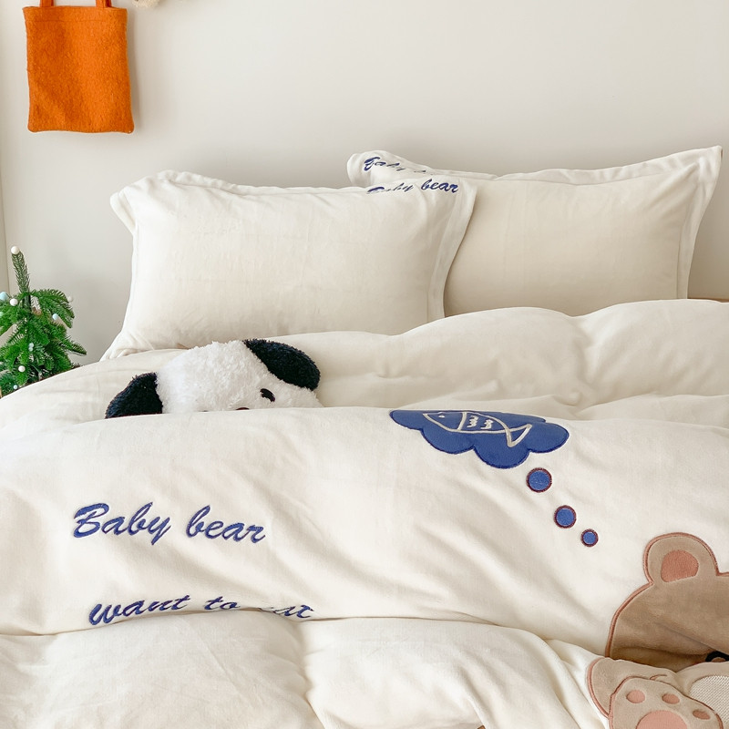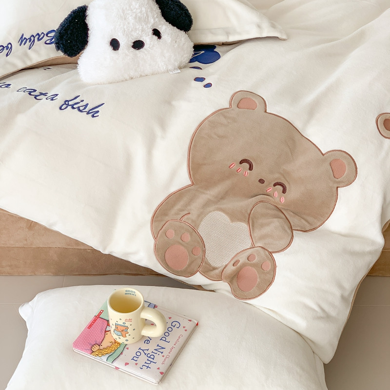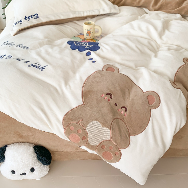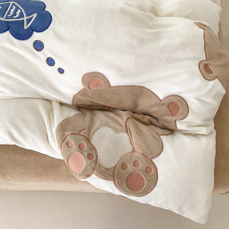 星期八 2023新款牛奶绒贴布绣四件套 小奶熊