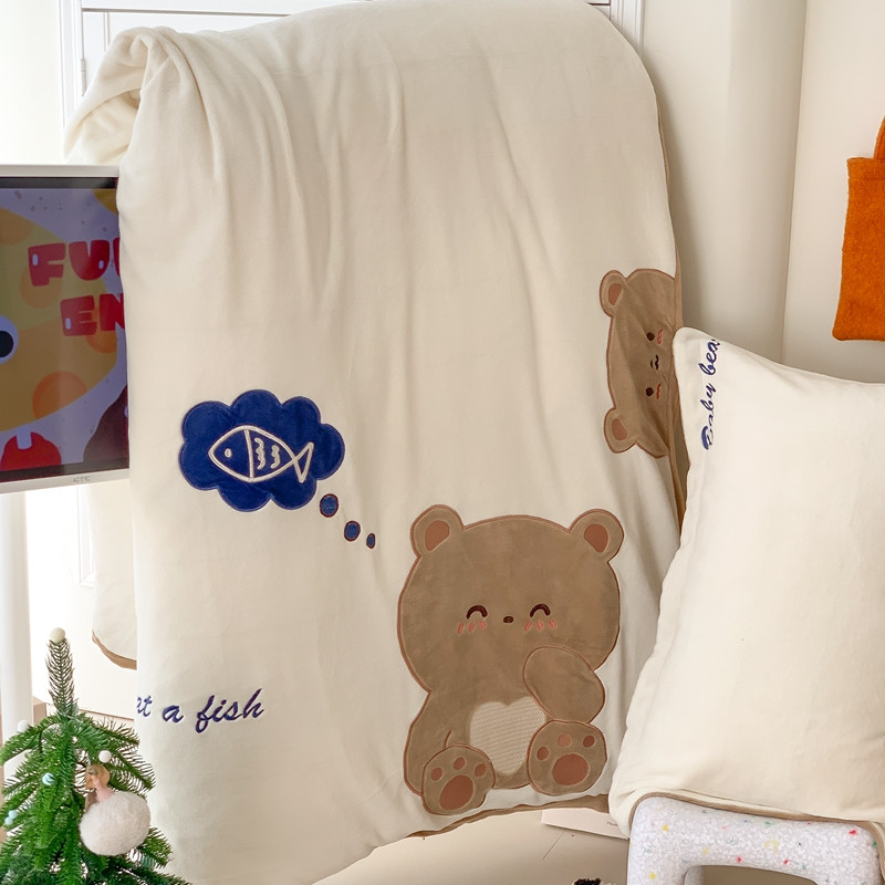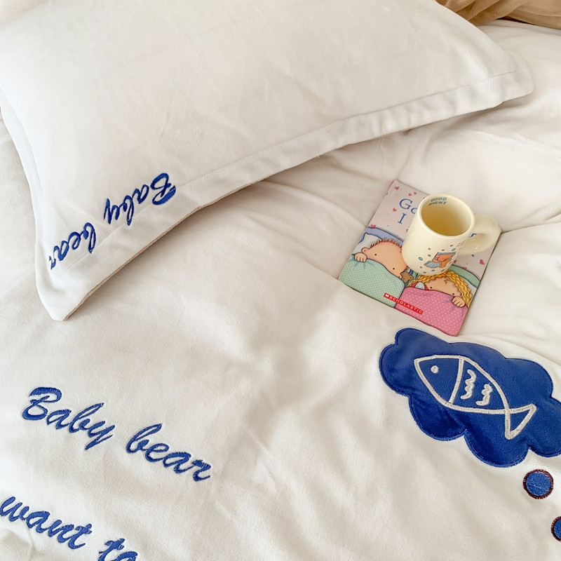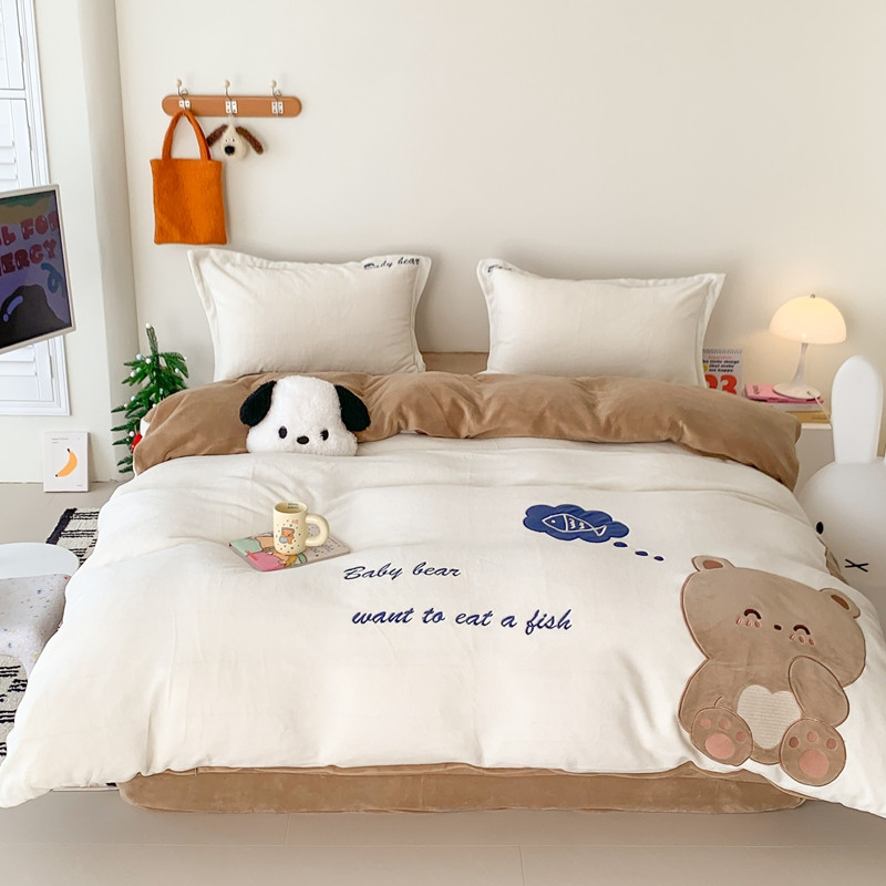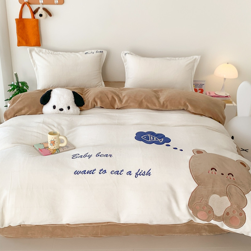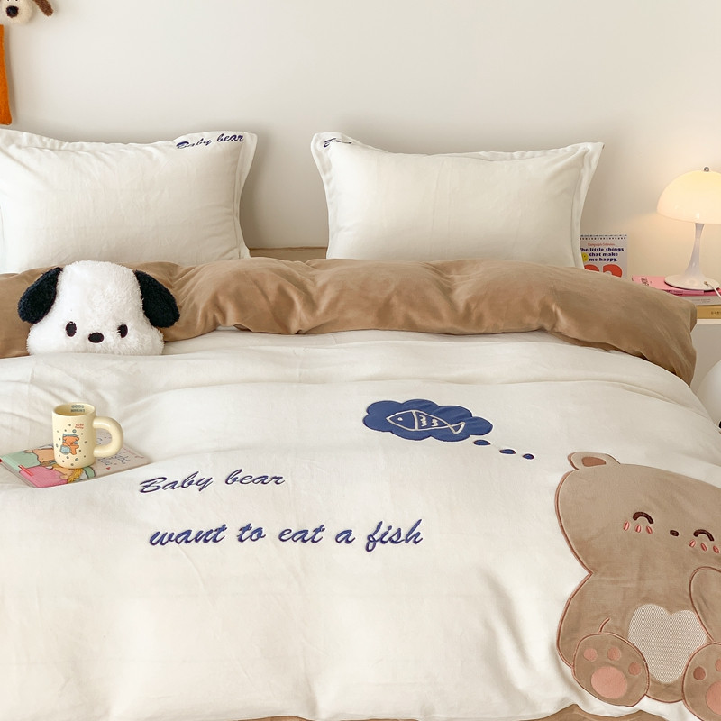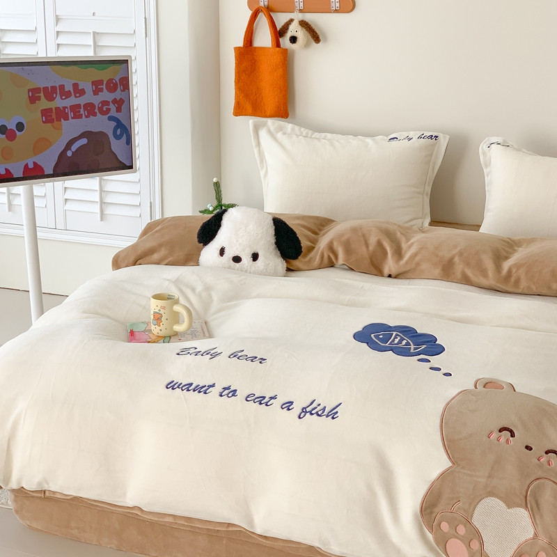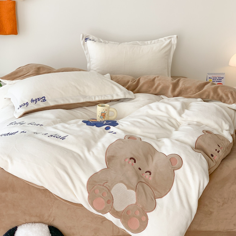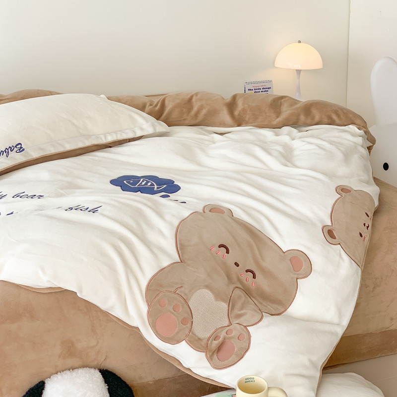 星期八 2023新款牛奶绒贴布绣四件套 小奶熊