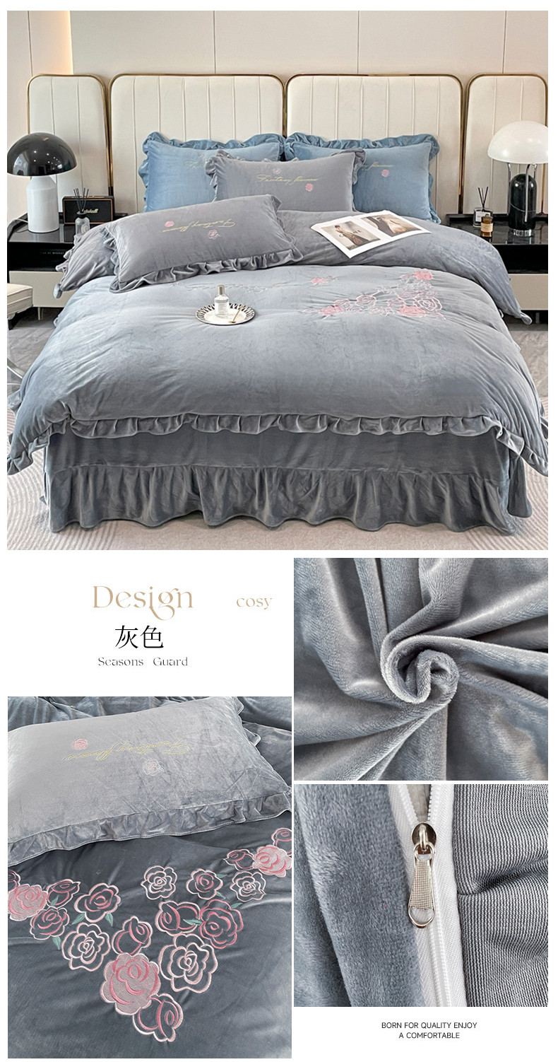金米诺 2024新款婴儿绒韩版床单绣花四件套 灰色