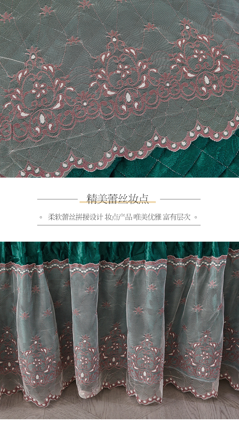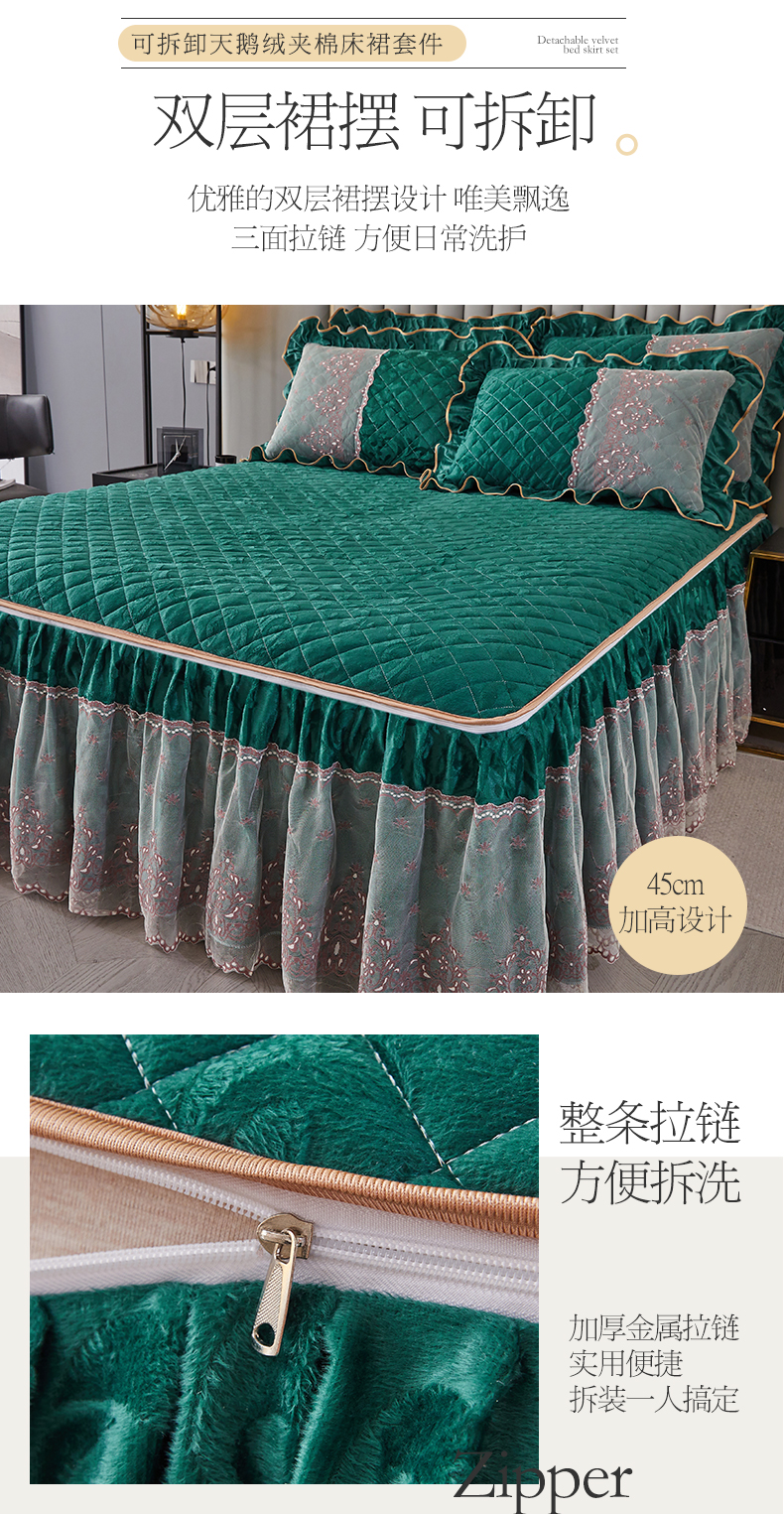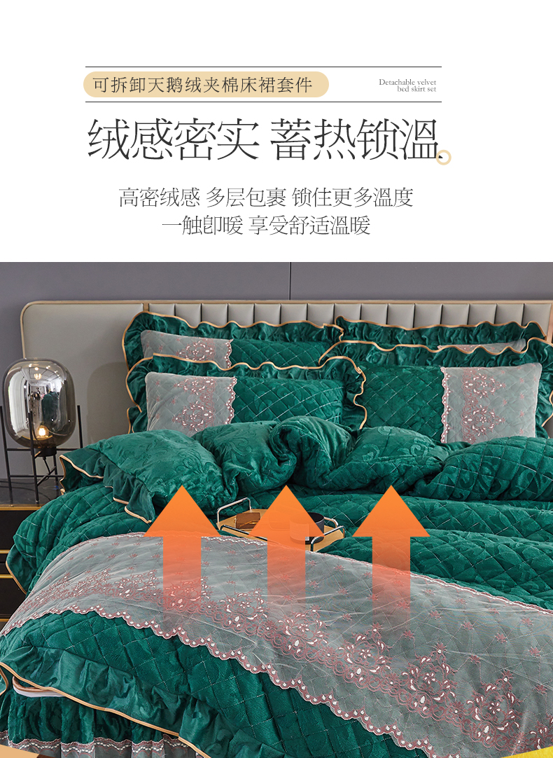 网红馆 2025新款可拆卸天鹅绒夹棉床裙四件套-城市魅影 城市魅影 翠绿