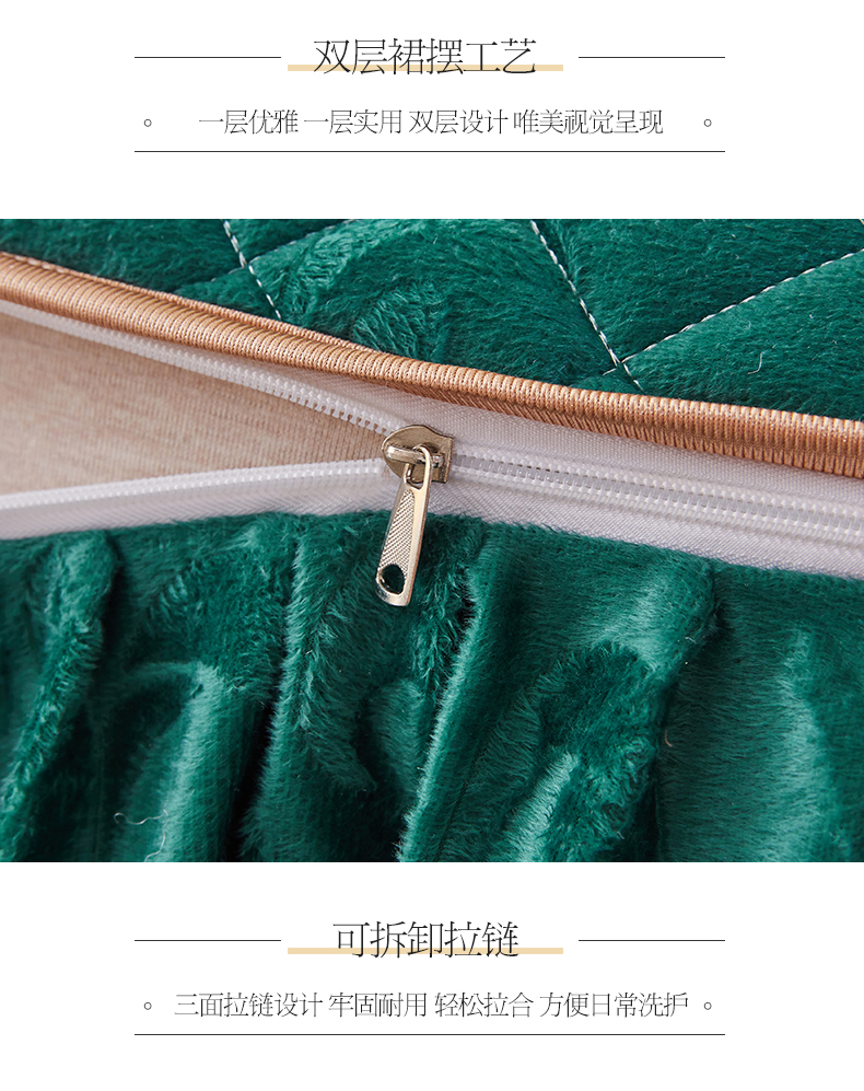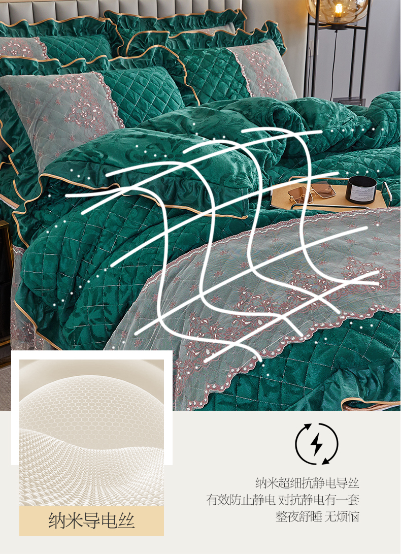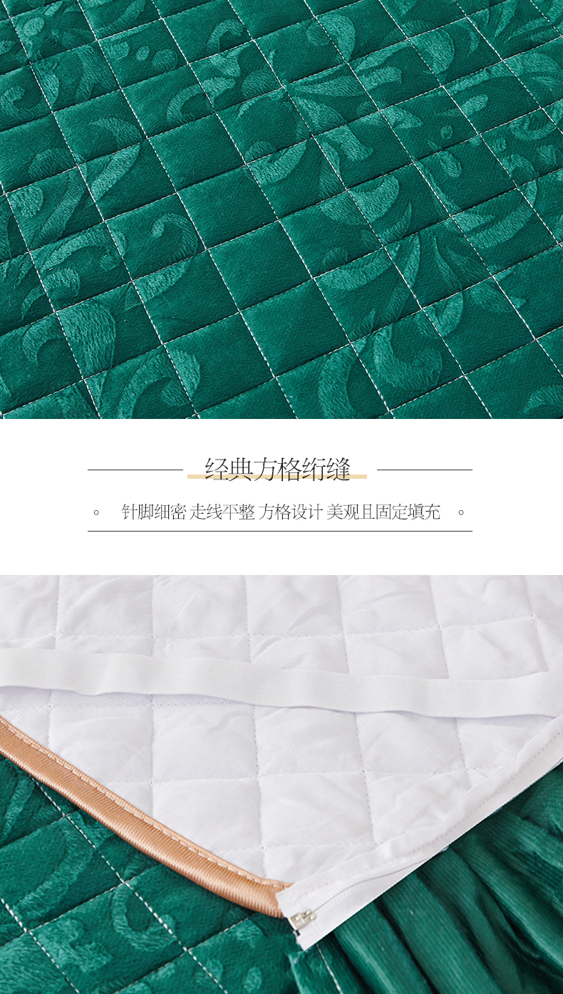 • 91家纺网 家纺一手货源 找家纺 网红馆 2025新款可拆卸天鹅绒夹棉床裙四件套-城市魅影 城市魅影 翠绿