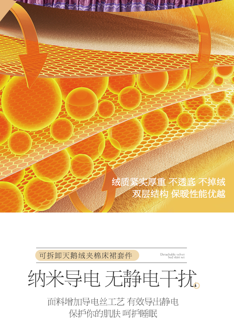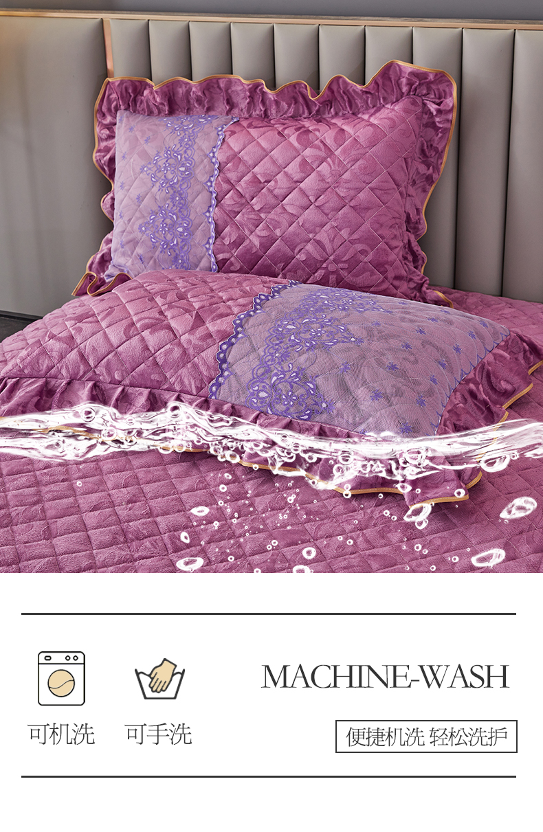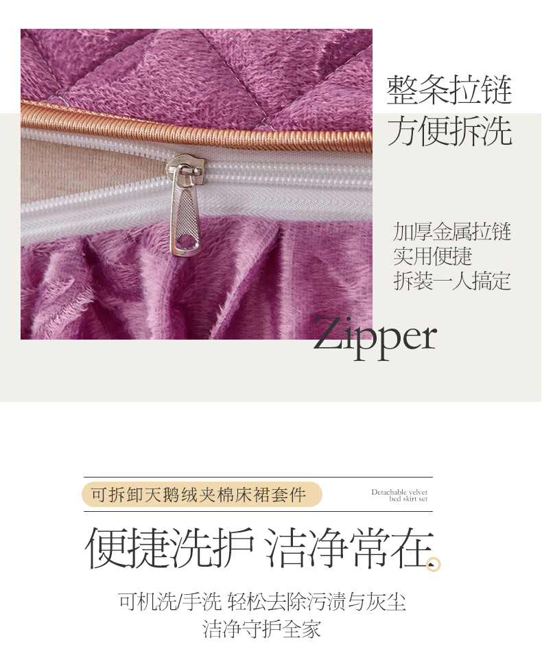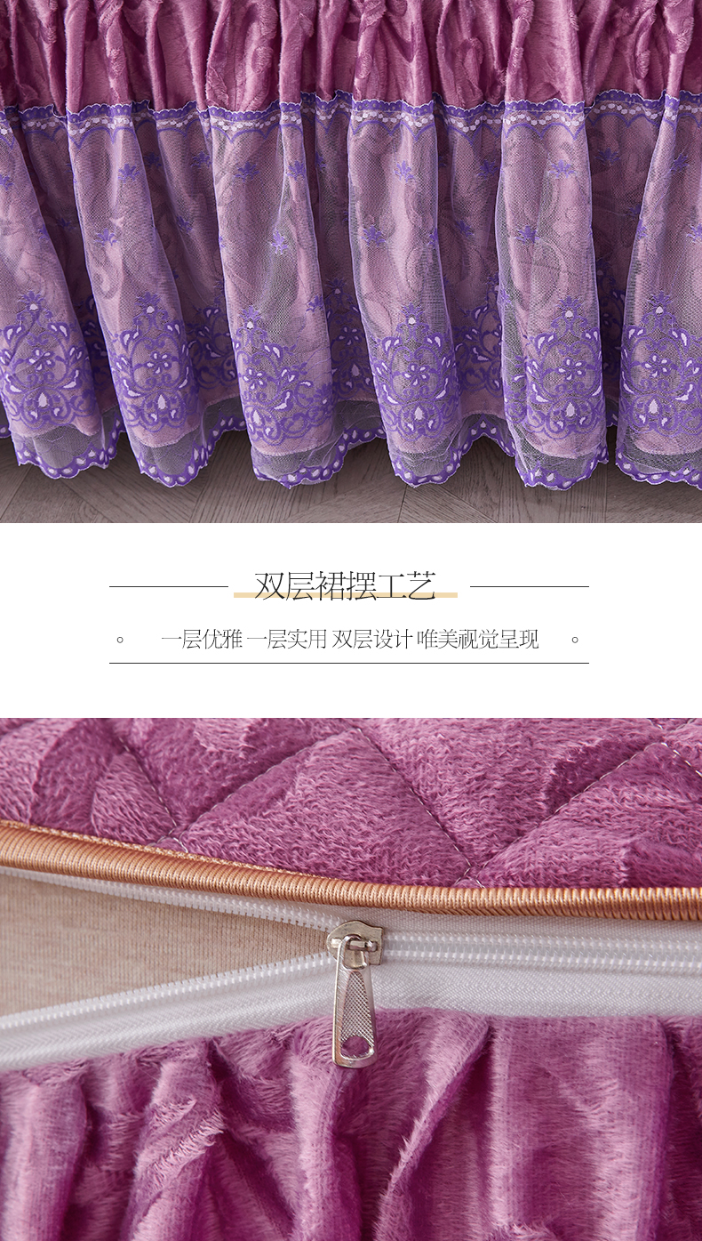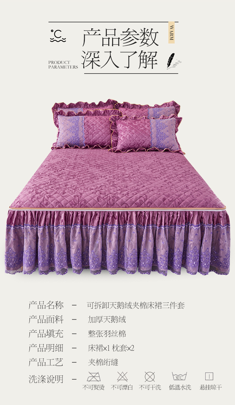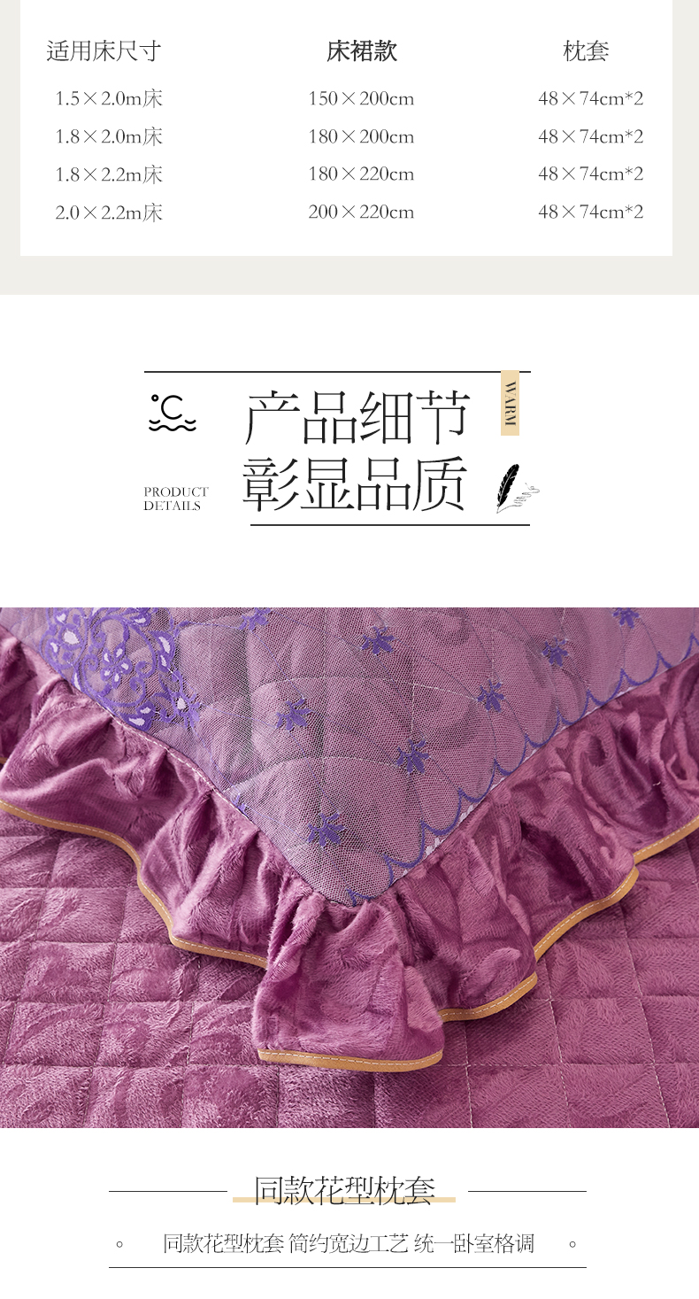 商品名称:网红馆 2025新款可拆卸天鹅绒夹棉床裙三件套-城市魅影 城市魅影 优雅紫