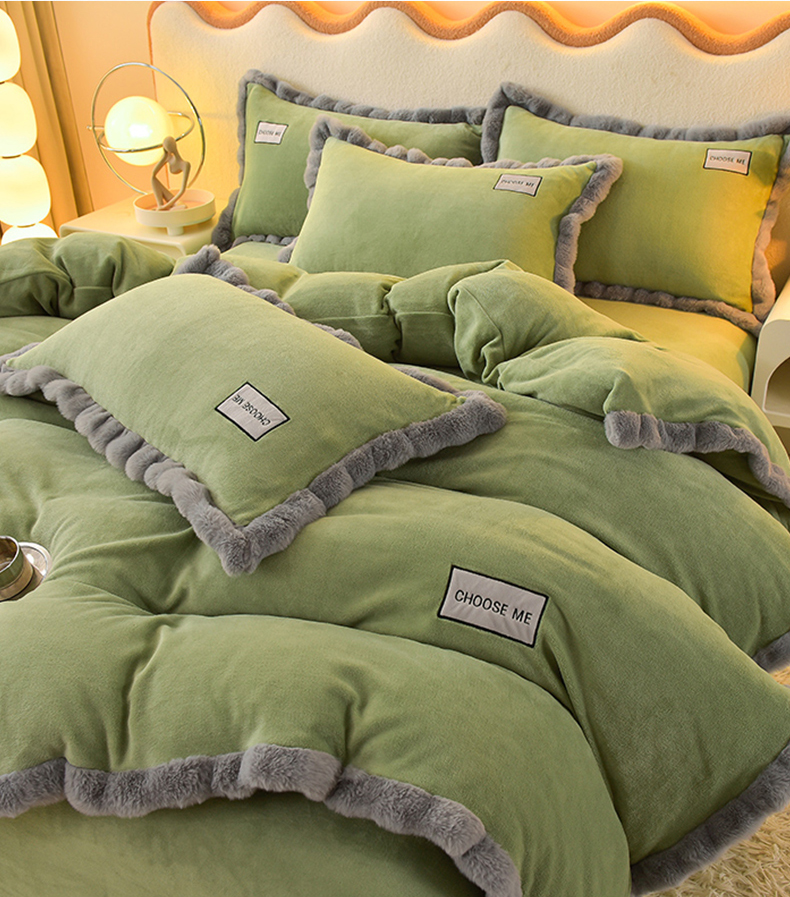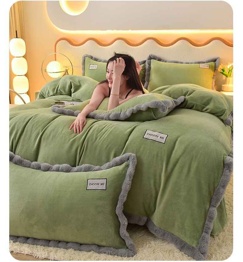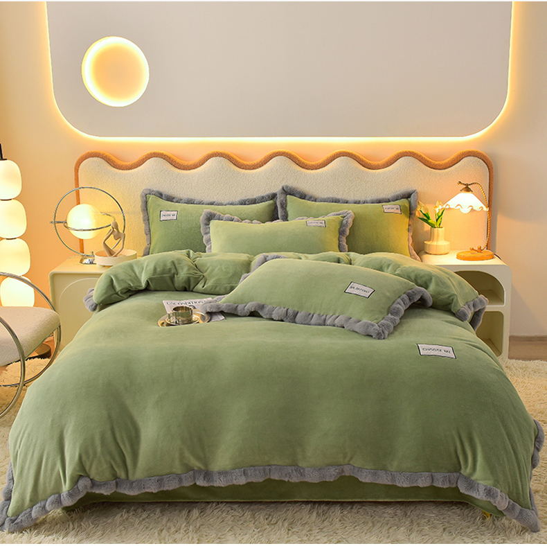 米奈家居 2025新款A类高克重牛奶绒四件套-卡洛琳 叶绿