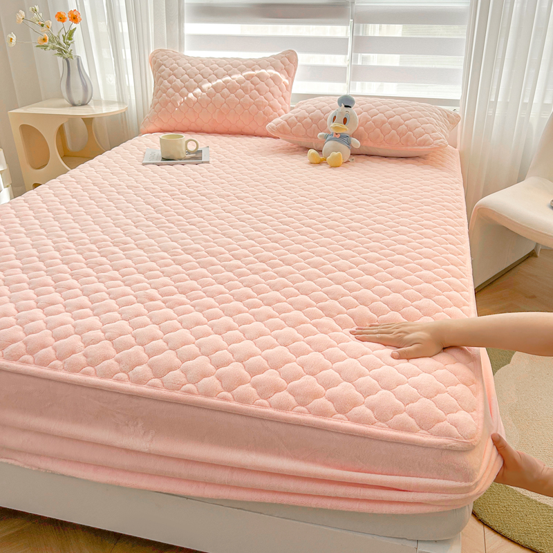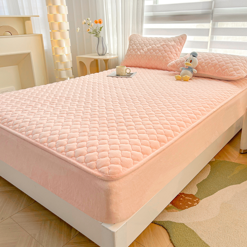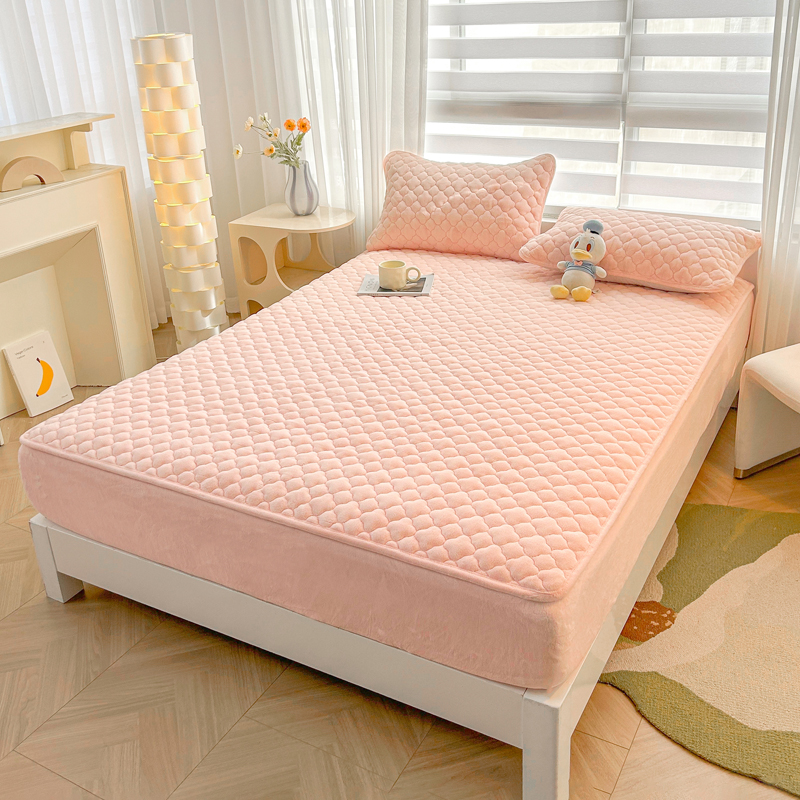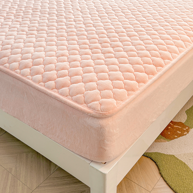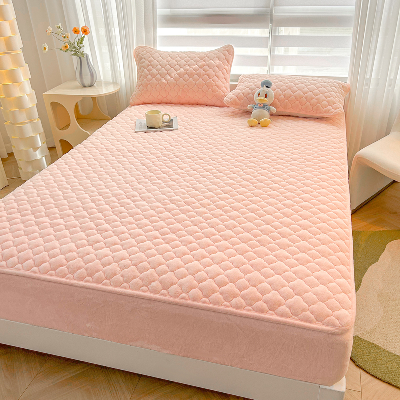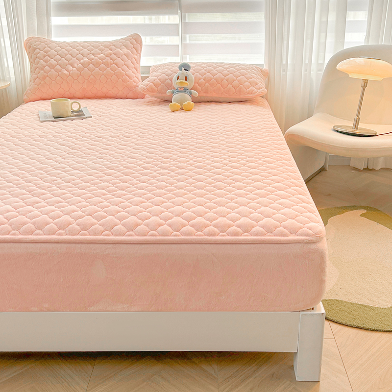 商品名称:梵朴 2023新款牛奶绒夹棉床笠 纯色-藕粉色
