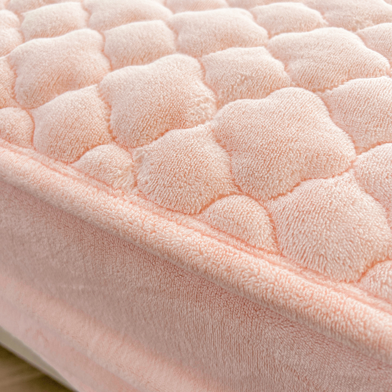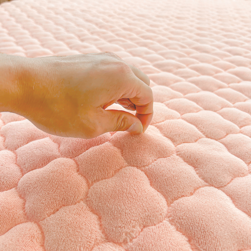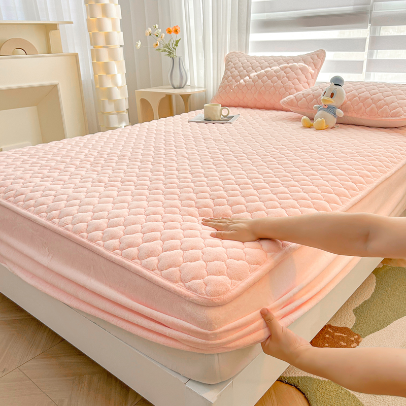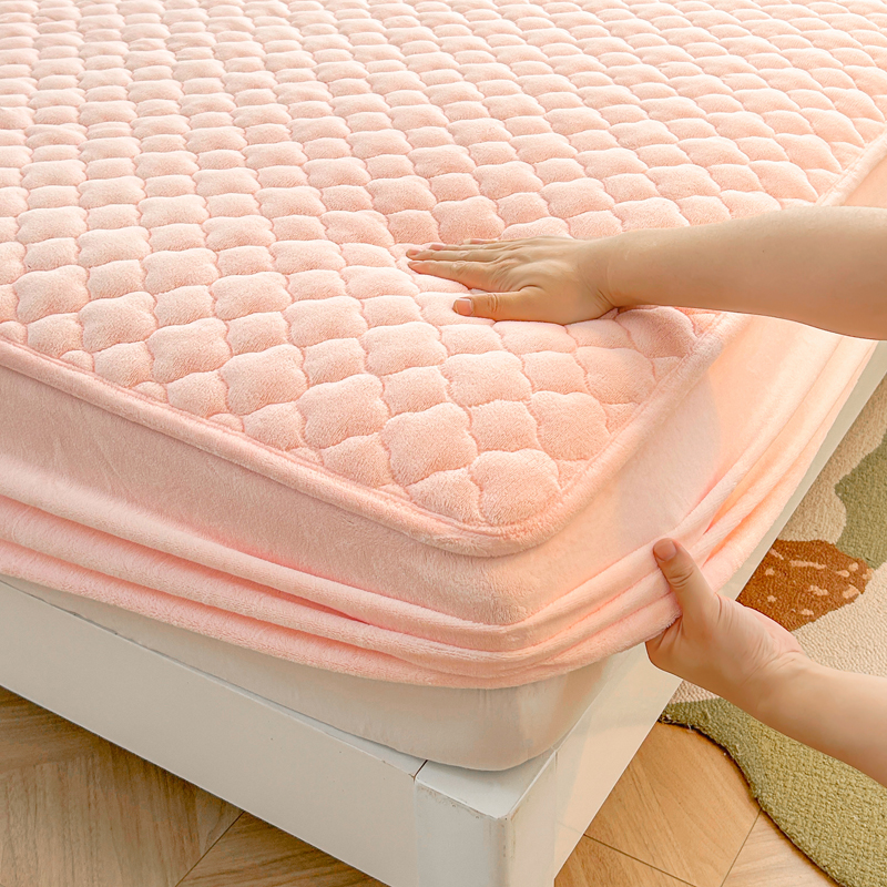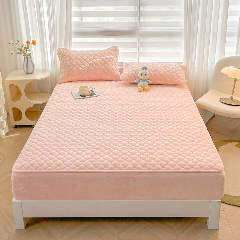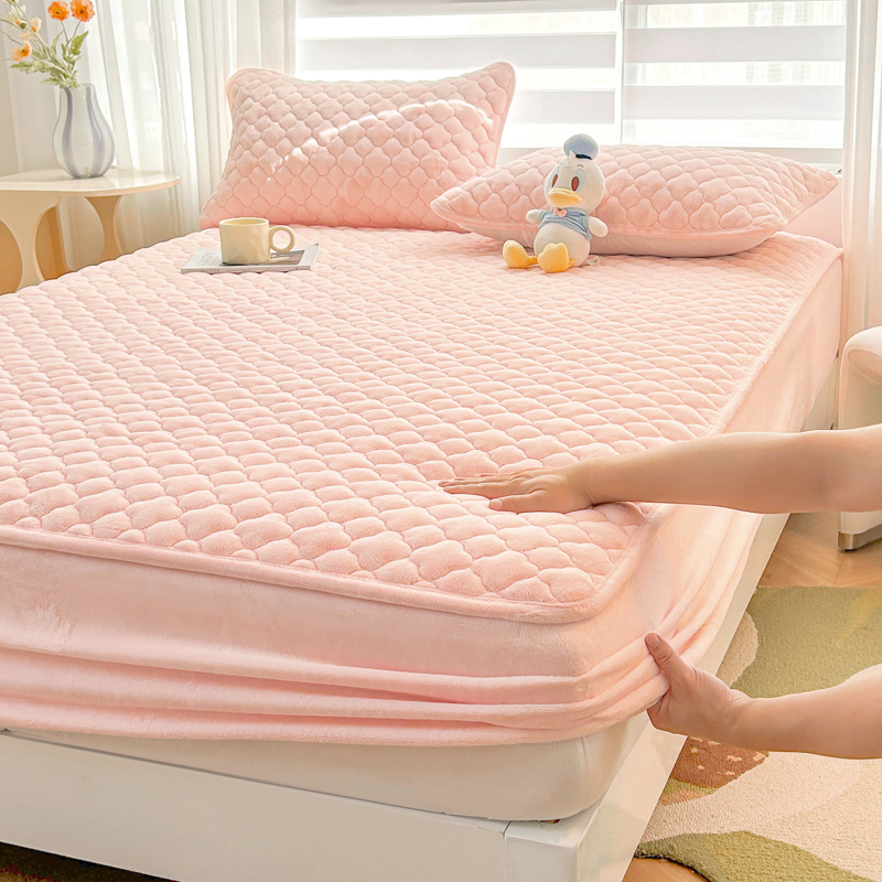 商品名称:梵朴 2023新款牛奶绒夹棉床笠 纯色-藕粉色