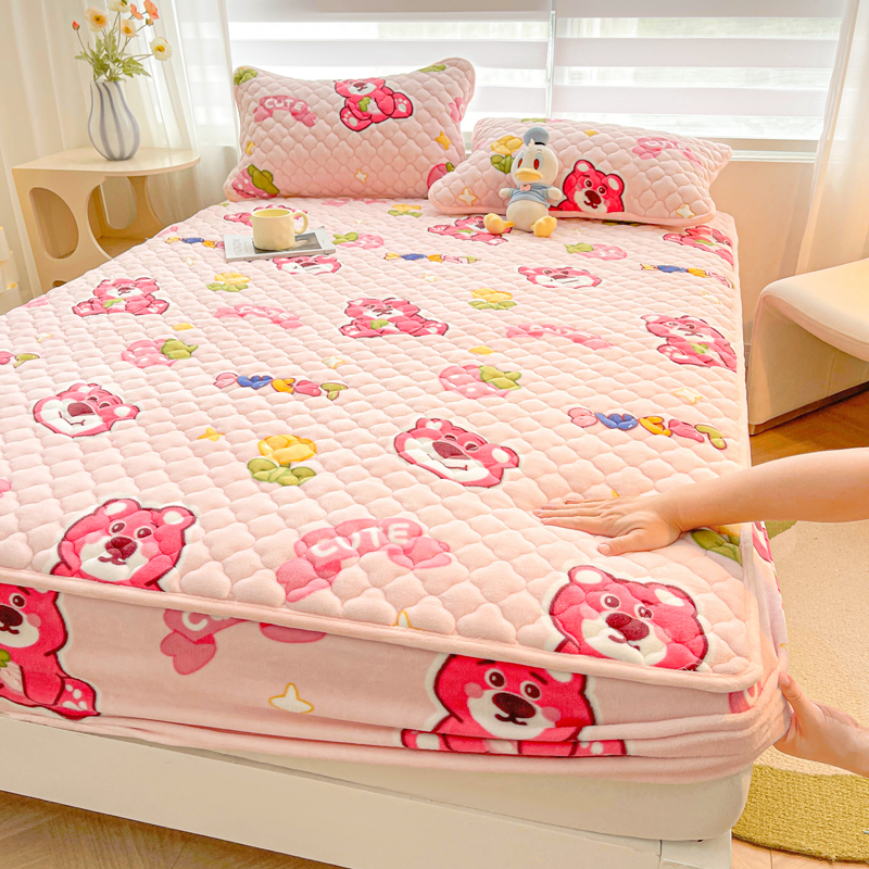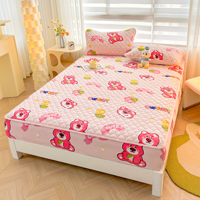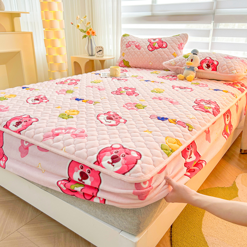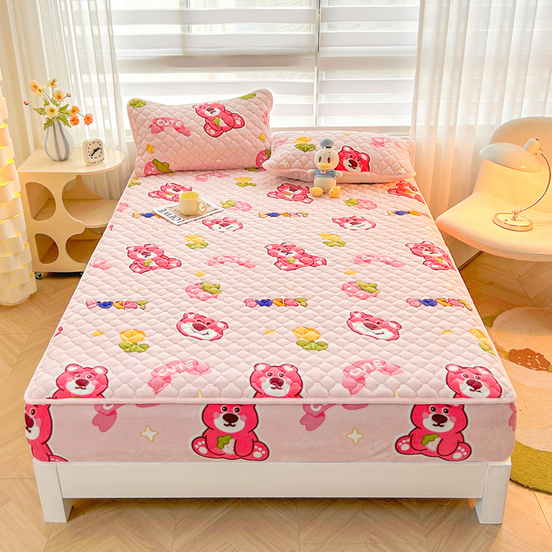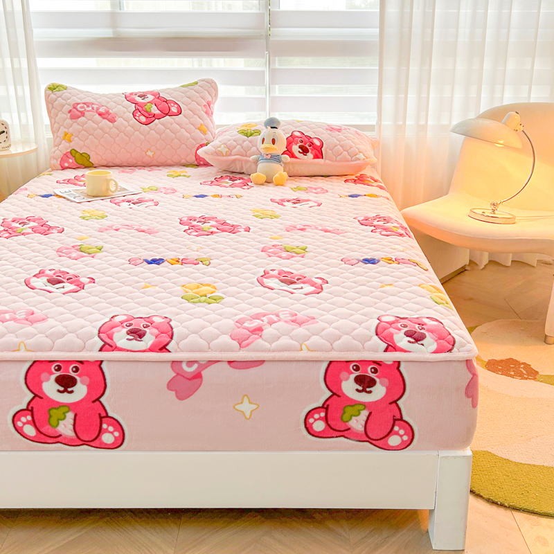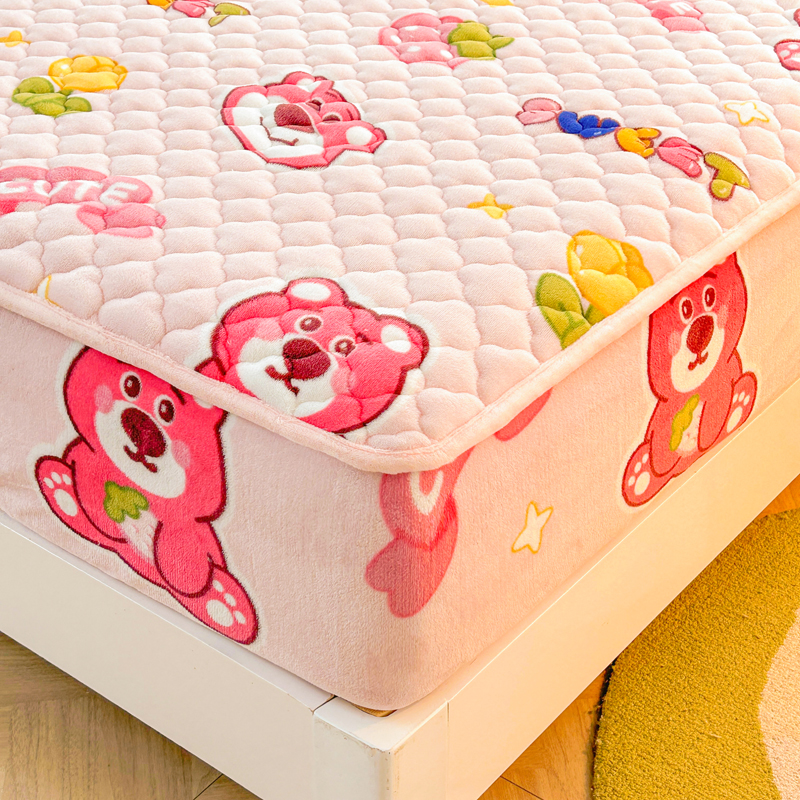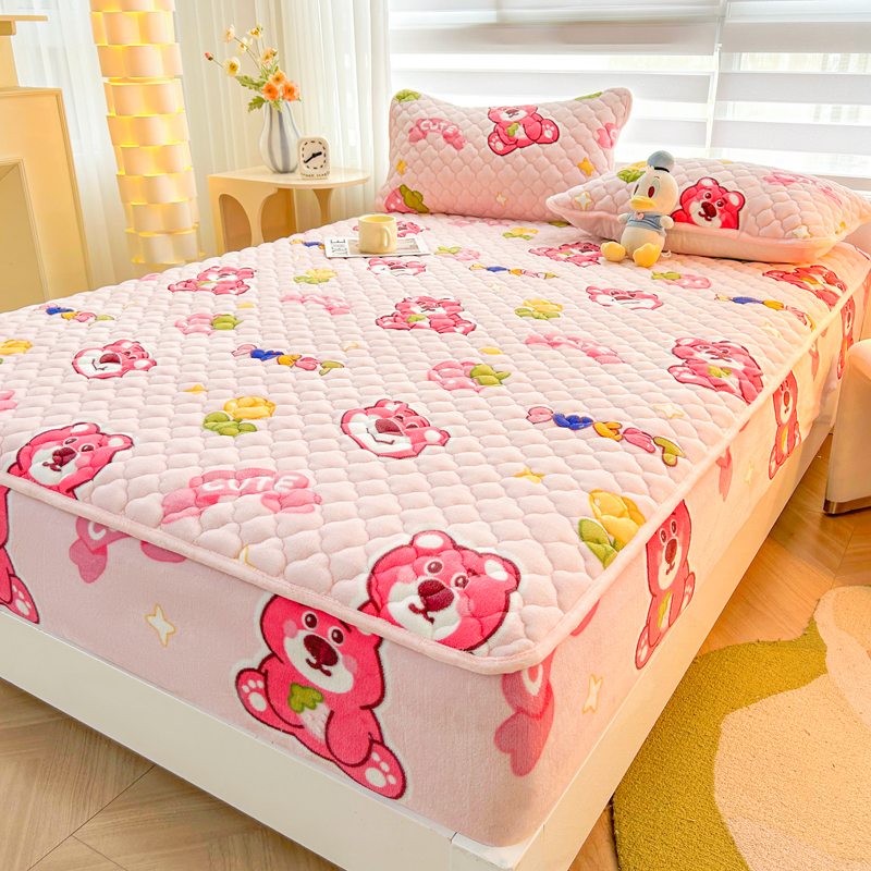 商品名称:梵朴 2023新款牛奶绒夹棉床笠 甜蜜熊仔