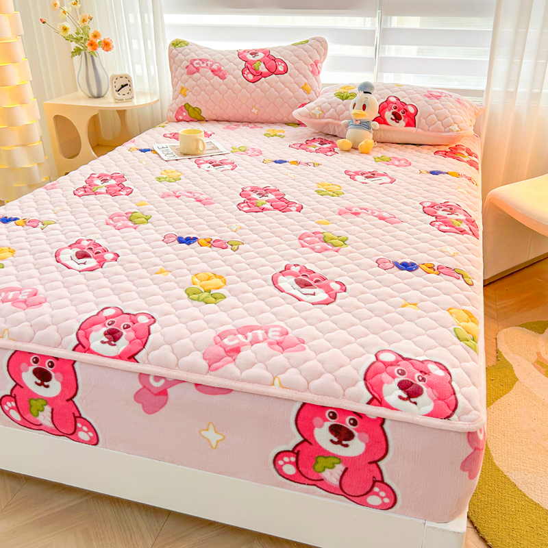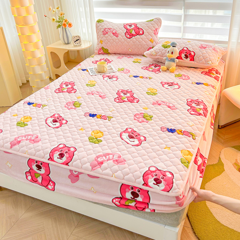 梵朴 2023新款牛奶绒夹棉床笠 甜蜜熊仔