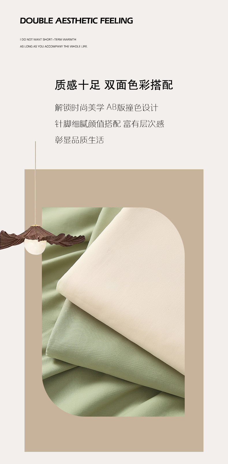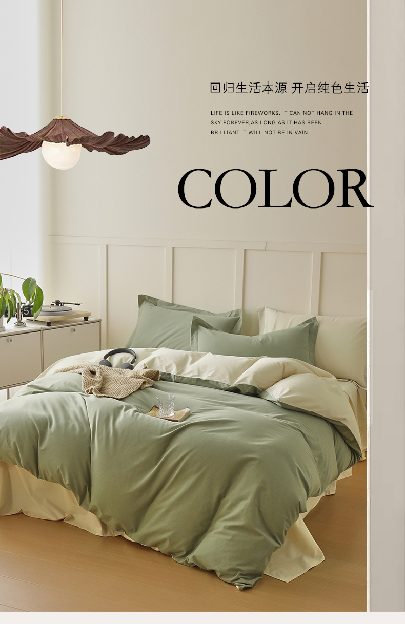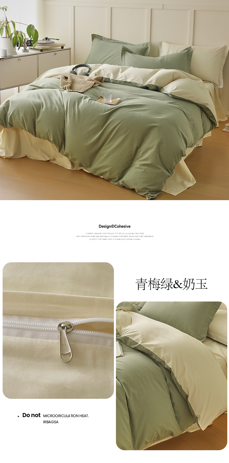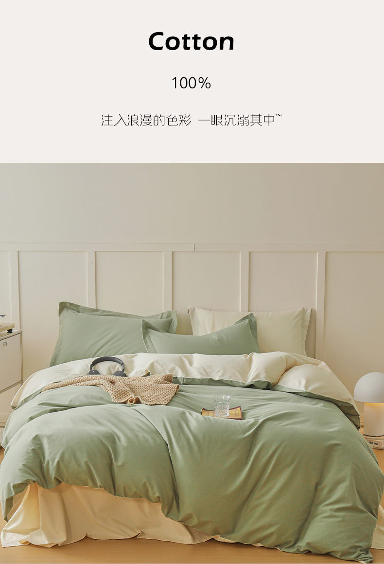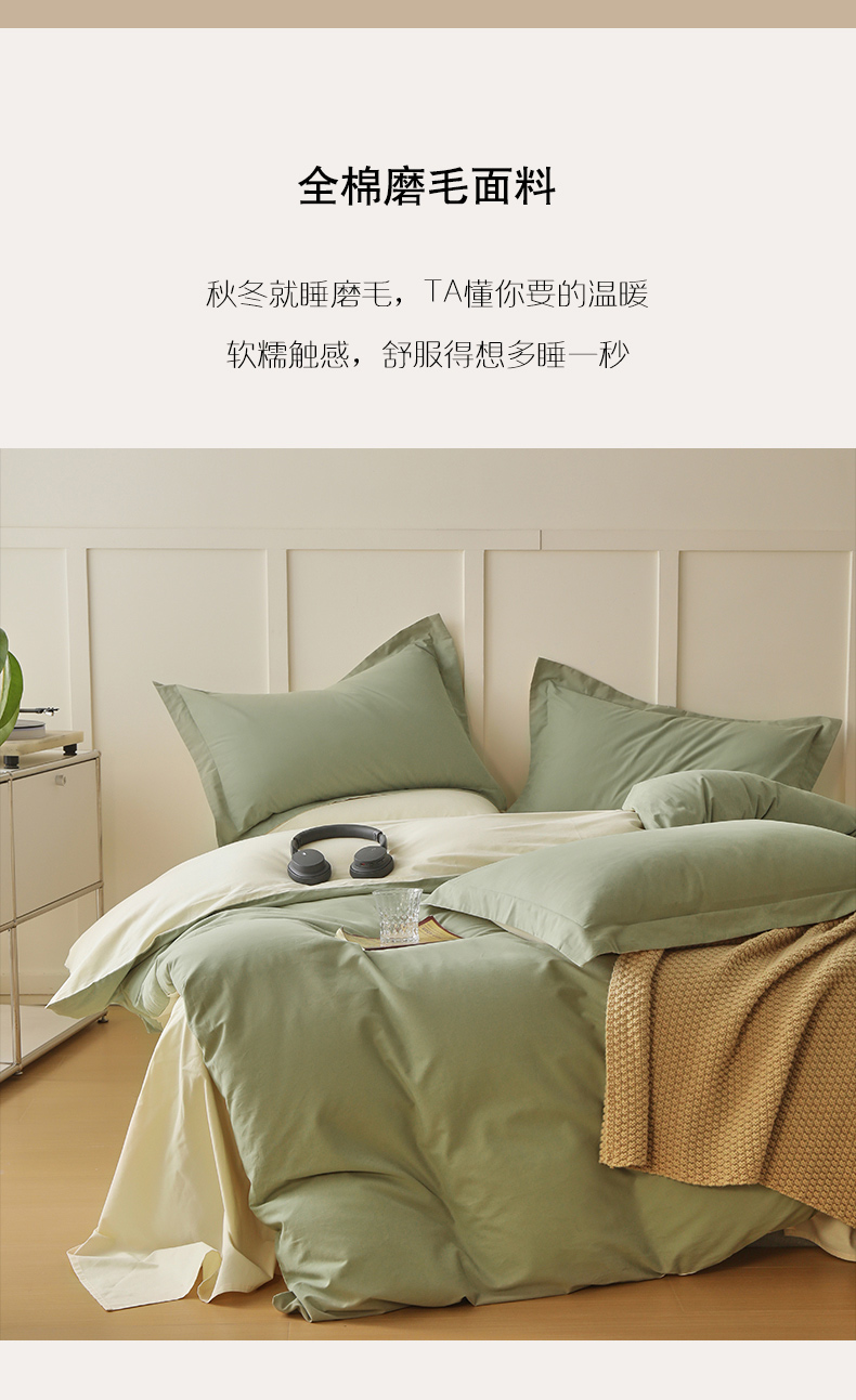 2023A类纯色纯棉磨毛单被套 青梅绿+奶玉