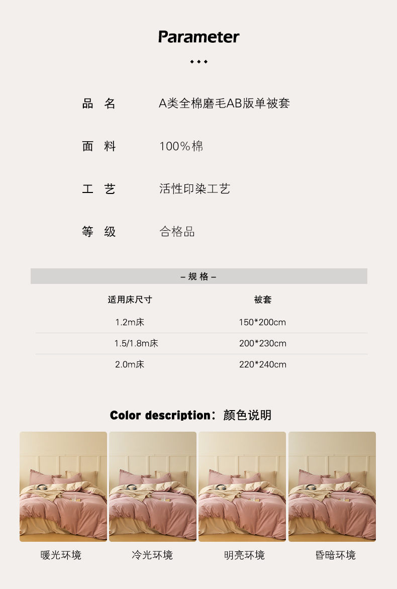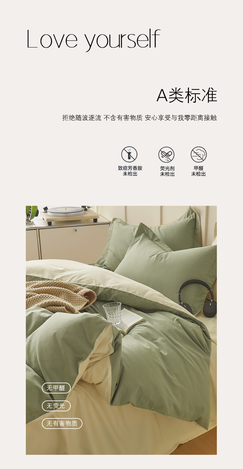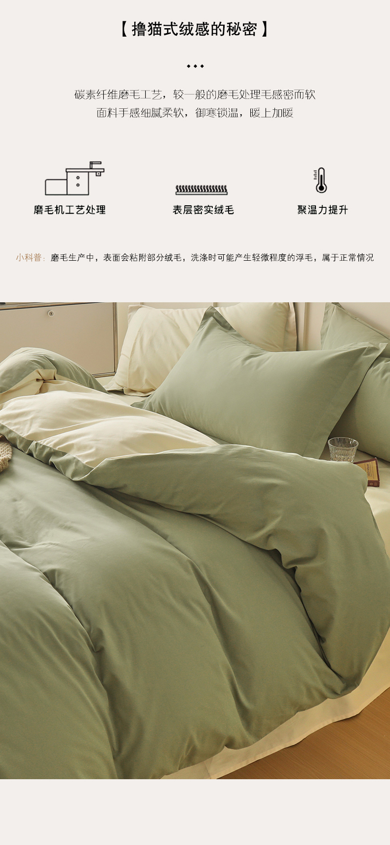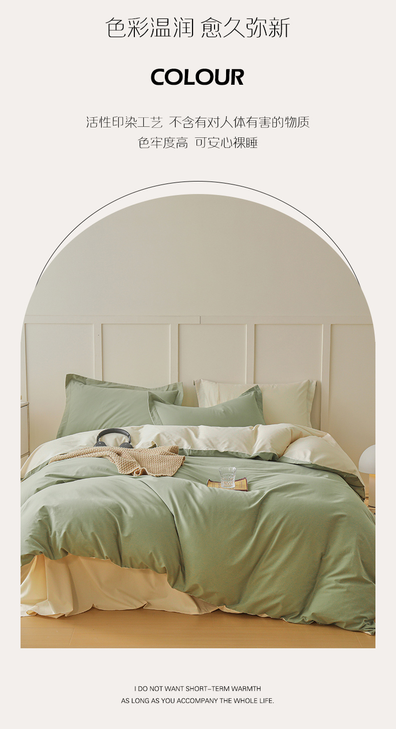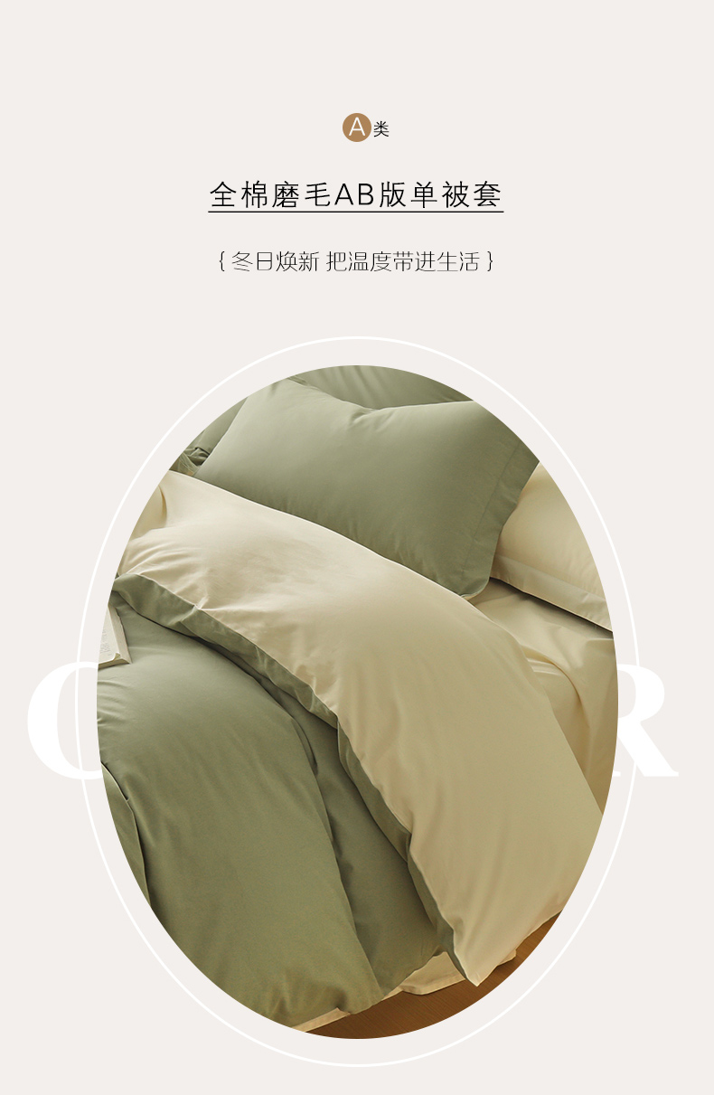 商品名称:2023A类纯色纯棉磨毛单被套 青梅绿+奶玉
